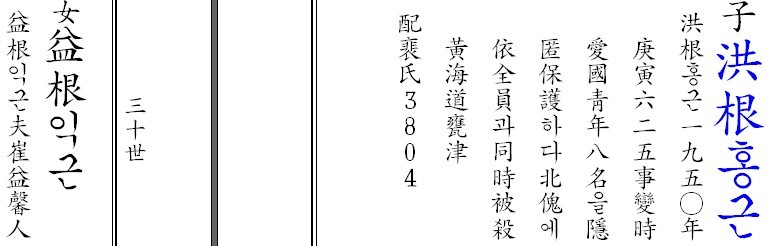 안홍근(安洪根)할아버지의 生年과 墓의 기록은없고 1950년 10월 15일경에 북한군에의해 피살되심만을 기록되었네요.....
