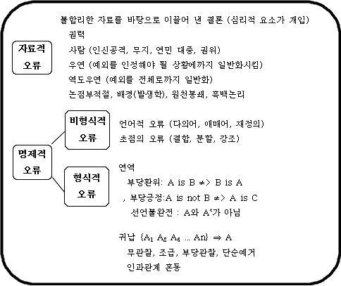 예) 사람은 학생 또는 여자 또는 어린이다. ← 선언불완전의 오류.