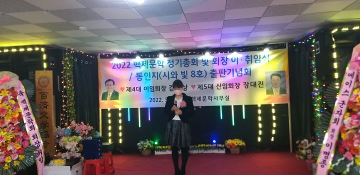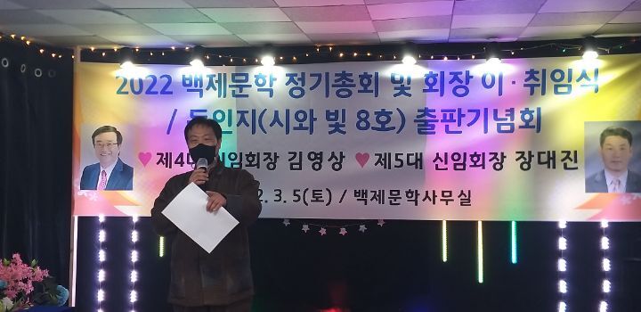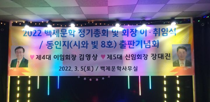 2022년 3월 5일 백제문학 정기총회 및 회장 이취임식 3 작성자김창호 광릉숲 의정부|작성시간22.03.05|조회수24 목록 댓글 0 글자크기 작게가 글자크기 크게가 다음검색 현재 게시글 추가 기능 열기 북마크 공유하기 신고 센터로 신고 댓글 댓글 0 댓글쓰기 답글쓰기 댓글 리스트