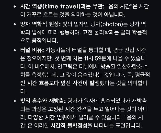 -물리학계의 논쟁: 일부에서는 이 현상을 단순한 파동의 간섭 효과로 보며, '음의 시간'이라는 표현이 과장되었다고 지적합니다.