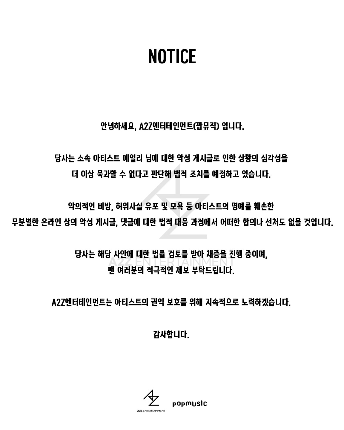 아티스트 악성 게시물 관련 공지 작성자Ailee_Offcl|작성시간25.05.07|조회수295 목록 댓글 0 글자크기 작게가 글자크기 크게가 다음검색 현재 게시글 추가 기능 열기 북마크 신고 센터로 신고 댓글 댓글 0 댓글쓰기 답글쓰기 댓글 리스트