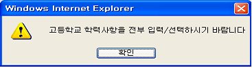 지원서 작성시 "고등학교 학력사항을 전부 입력/선택하시기 바랍니다."
