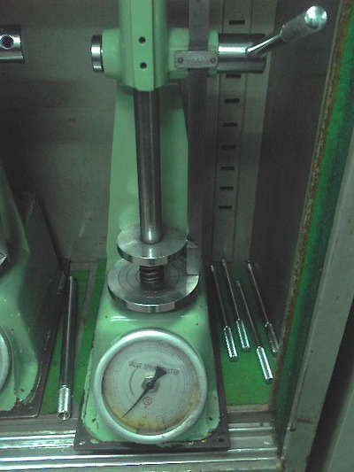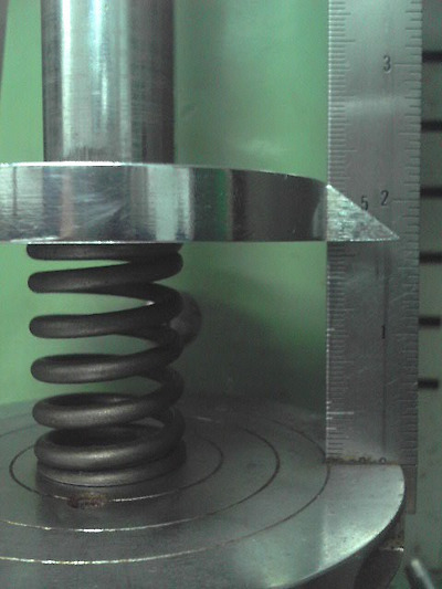 ② 손잡이를 들고 밸브 스프링을 측정면의 중앙에 살며서 올려놓는다.