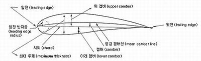 에어포일(airfoil)이란, 날개의 단면 형상을 뜻하며 항공기의 날개(wing), 보조익(aileron), 승강타(elevator), 방향타(rudder)와 같은 어떤 단면(section)을 학술적으로 정의하는데 사용한다. 에어포일은 공기보다 무거운 항공기를 비행시키기 위해서 공기 역학적인 효과, 즉 양력은 크고 항력은 작은 에어포일이 요구된다. 양력을 크게 하기 위해서 에어포일은 상면을 둥글게 해주고 뒤를 뾰족하게 하여 유선형으로 한다. 에어포일에 관한 용어의 정의는 그림과 같다.