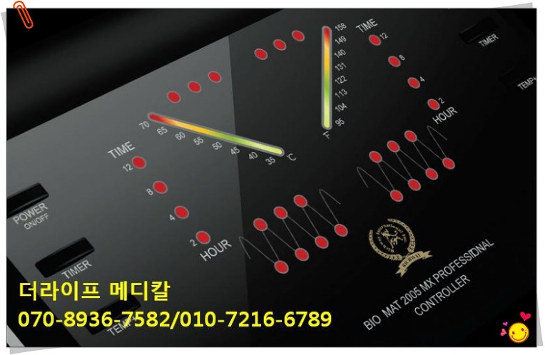 하기 자료는 바이오매트를 최고 온도 70도에 설정을 한 상태에서 측정한 결과를 알려드립니다. 바이오매트는 최저 35도에서 최고 70도까지 설정이 가능하며 70도의 상태에서 시도를 하게 됩니다. 간혹 고객께서 바이오매트가 70도까지 온도가 유지될까하는 의구심을 가지는 분들이 있어 이번 기회에 디지탈 온도계를 이용하여 측정한 결과를 알려드리오니 참조 바랍니다.