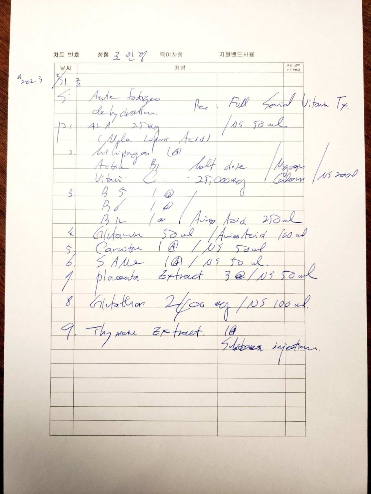 처방 차트에는 IV Hydration 또는 풀세트 칵테일