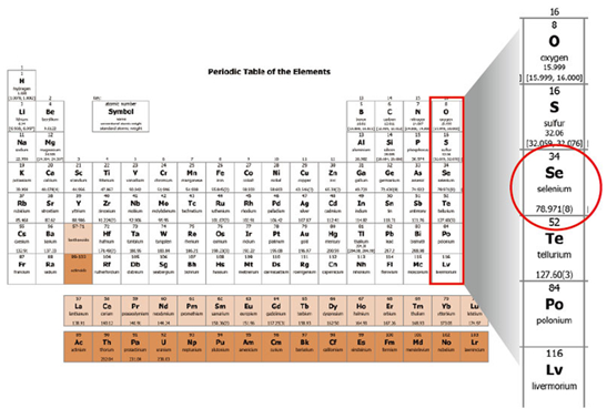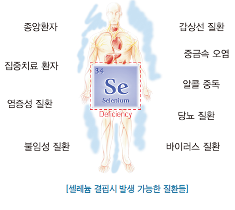 원소주기율표 16족에 해당하는 비금속성 원소, 셀레늄은 면역체계를 회복시키고 세포를 재생하여, 정상적인 생명현상을 유지하고 활성산소와 중금속으로부터 인체를 보호하는 역할을 하기 때문에 노화, 암 및 각종 대사성 질환의 예방 및 치료를 위해 셀레늄 보충은 필수적이다.