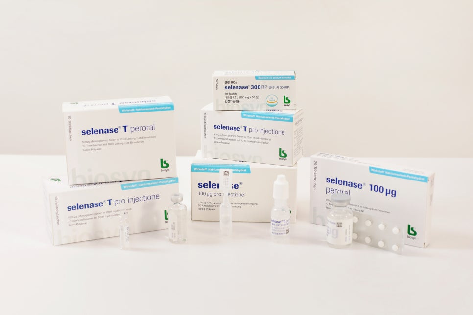 셀레나제는 셀레늄 결핍 질환을 예방 및 치료하는 의약품으로 비오신은 암환자뿐 아니라 패혈증, 자가면역질환, 내분비계질환의 예방 및 치료의 목적으로 고용량 사용 가능한 안정성과 유효성이 입증된 세계 최초이자 유일한 셀레늄 의약품으로 주사제, 액제, 타블렛의 형태로 전 세계 27개국에 공급되고 있다.