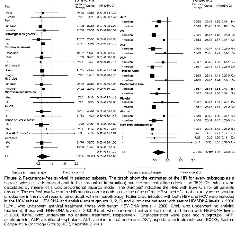 간암은 수술적으로 절제가 가능했던(Curative Tx) 경우도 재발이 많고 (근치적 절제술 후 5년 재발률: 위암 2%, 간암 70%)? 다른 암처럼 검증된 항암 보조요법(Adjuvant therapy)이 없었습니다.기존의 치료가 그닥 효과가 없었던거죠