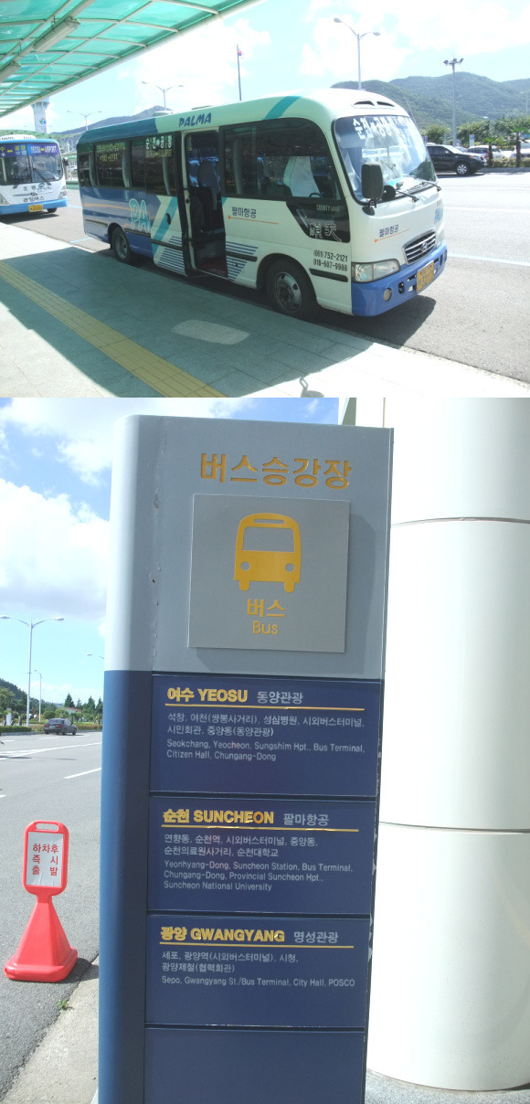 당시 도착시간이 오후 1시 넘었던지라 여수공항 가는 공항버스 시간표는 안적혀 있고 항공기 출발시간에 맞추어 출발하는거라서 언제 올지 몰라서 할 수 없이 시내버스 타러 정류장으로 가서 기다리는데 여수공항 홈페이지에 나온 노선버스 번호 확인하고 타기 전에 물어보니까 안간다고 대답하네요.
