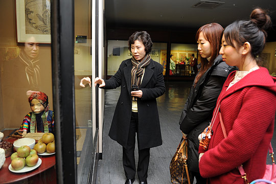 그곳에서 그녀들은 요즘 한국인도 흔히 볼 수 없는 금줄과 돌잔칫상, 전통 혼례와 장례 등을 천천히 둘러보았다.