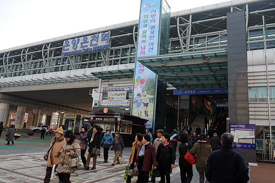 기차는 한 시간 정도 달려 온양온천역에 도착했다. 온양의 온천은 한국에서 가장 오랜 역사를 간직한 온천으로 약 1,400년의 역사를 갖고 있다. 특히 조선시대에는 태조·세종·세조 등 여러 왕이 이곳에서 휴양과 집무를 했다고 전한다.