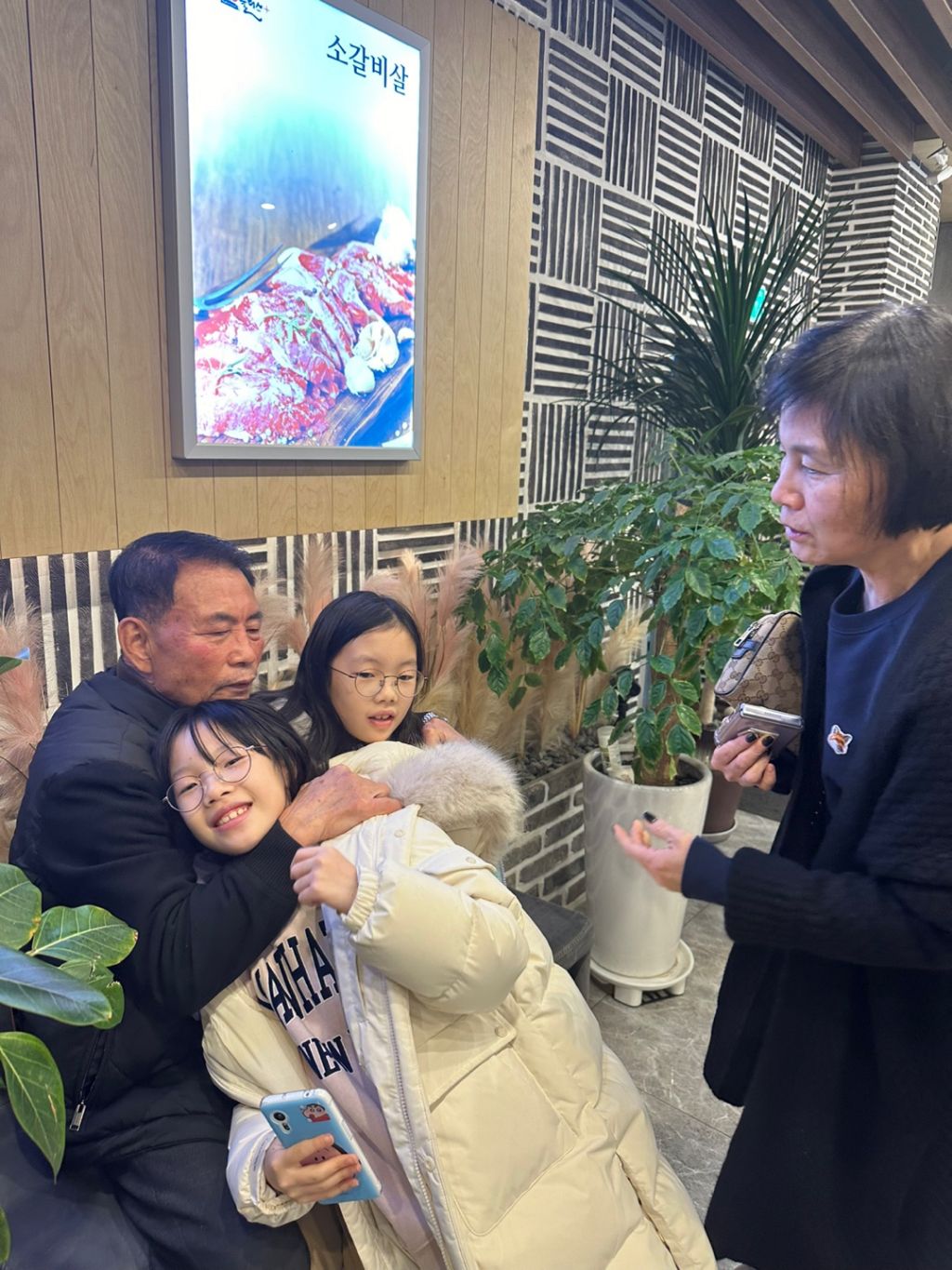 (우리나라 대통령하신 김영삼 할아버지께서 8년 前에 하늘 가셨는데 엊그제는 할머니도 하늘 가셔서 할머니 작별인사 하시러 사람들이 엄청 많이 오셔서 손님들 심부름하러 가셨단다.)