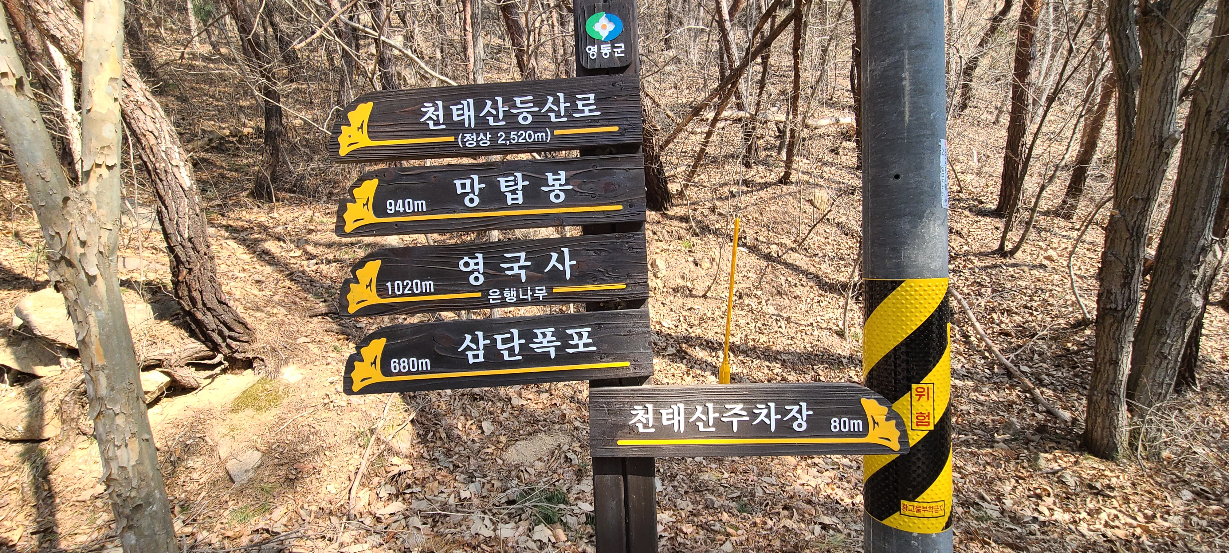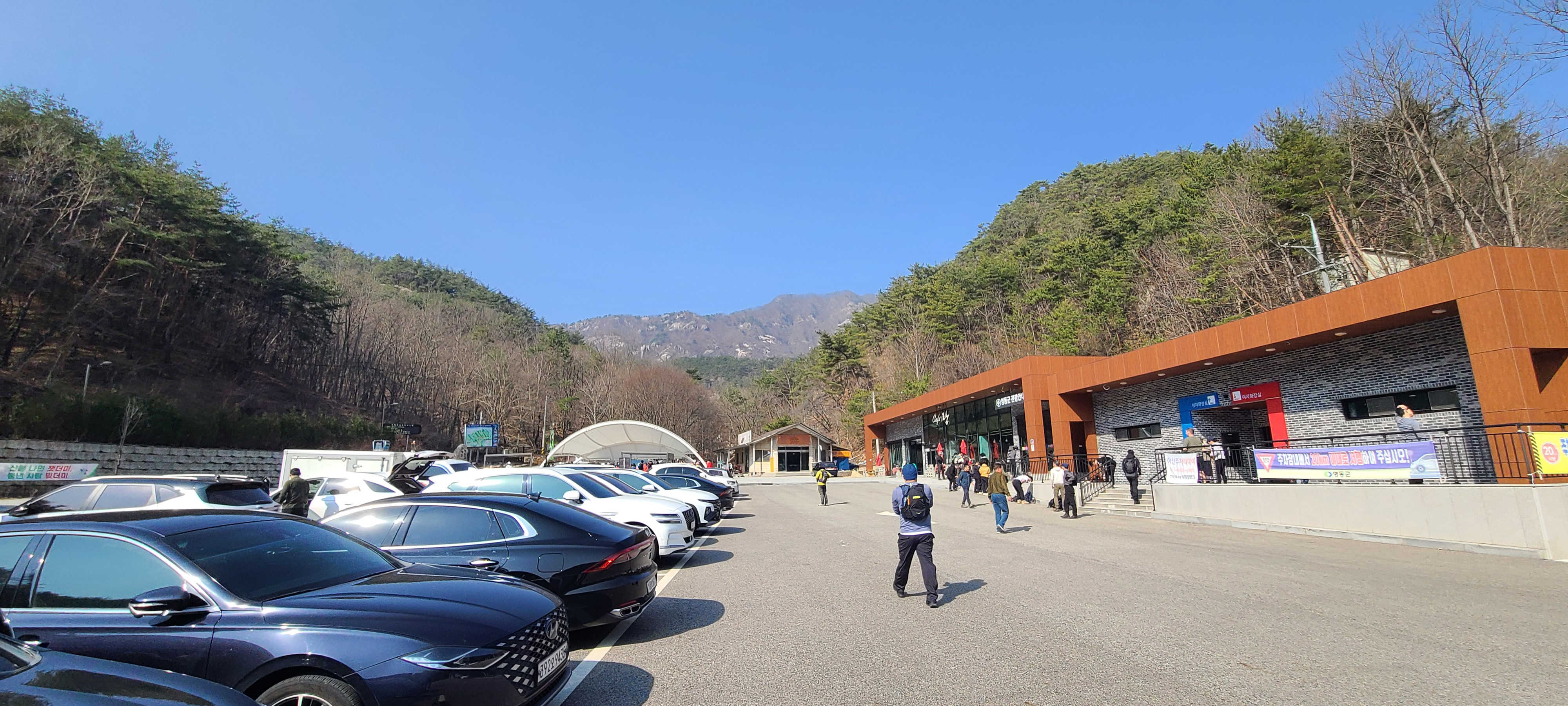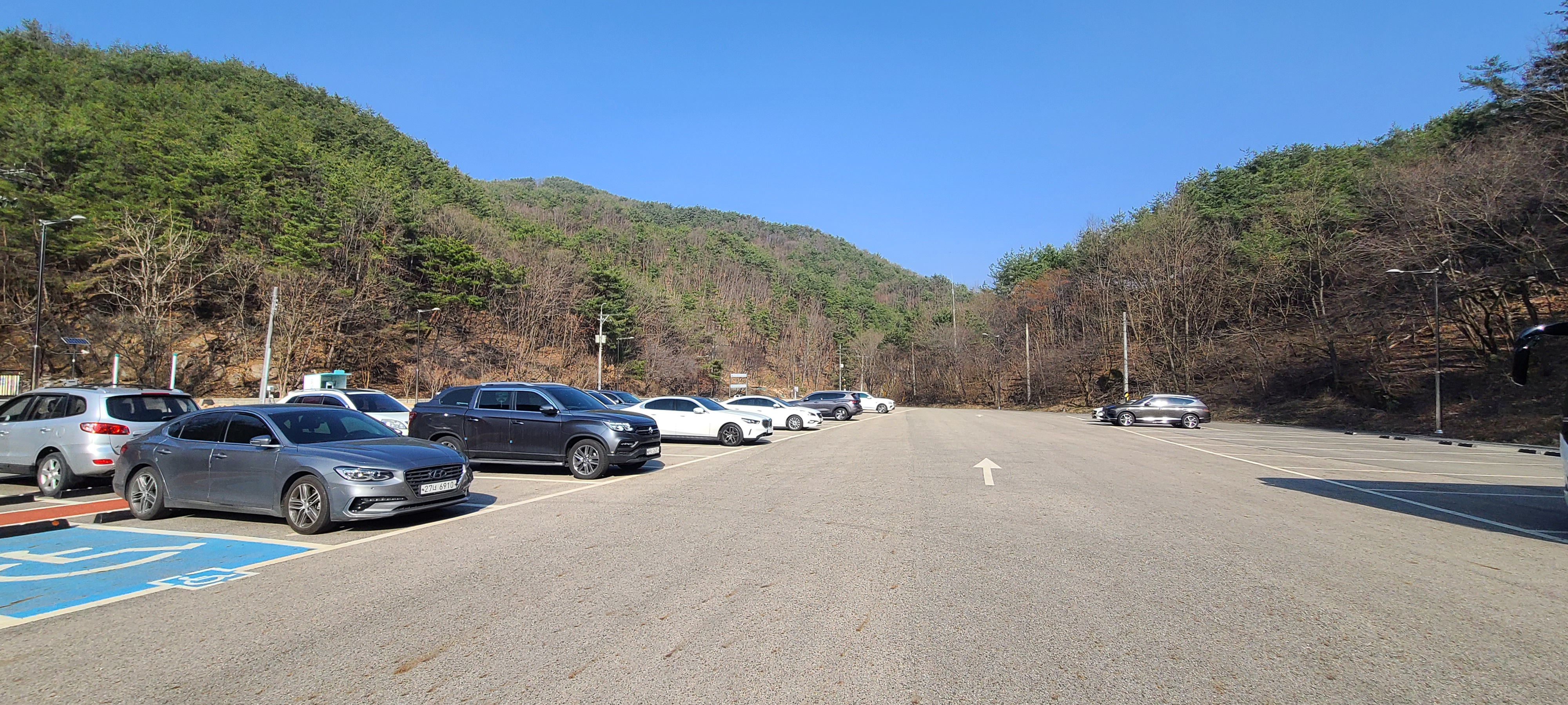 영동 천태산을 오르려고 대형 주차장에 차를 세운다. 눈이 사라진 봄날, 생각보다 날씨는 좋다. 이렇게 차량이 많은 것 보니 무슨 지정 100대 산에 해당되는 모양이다. 이렇게 지정된 산은 젊은 산꾼들이 많다.