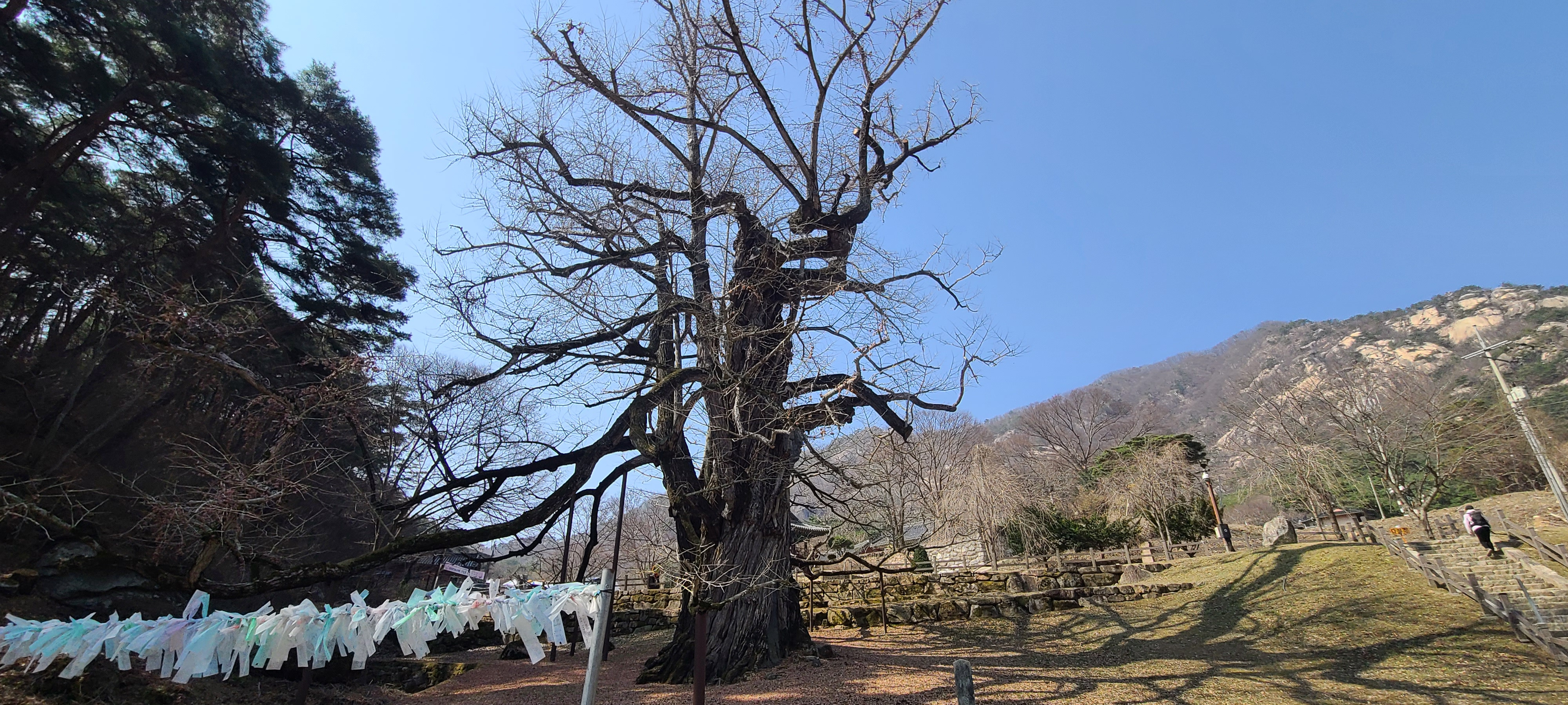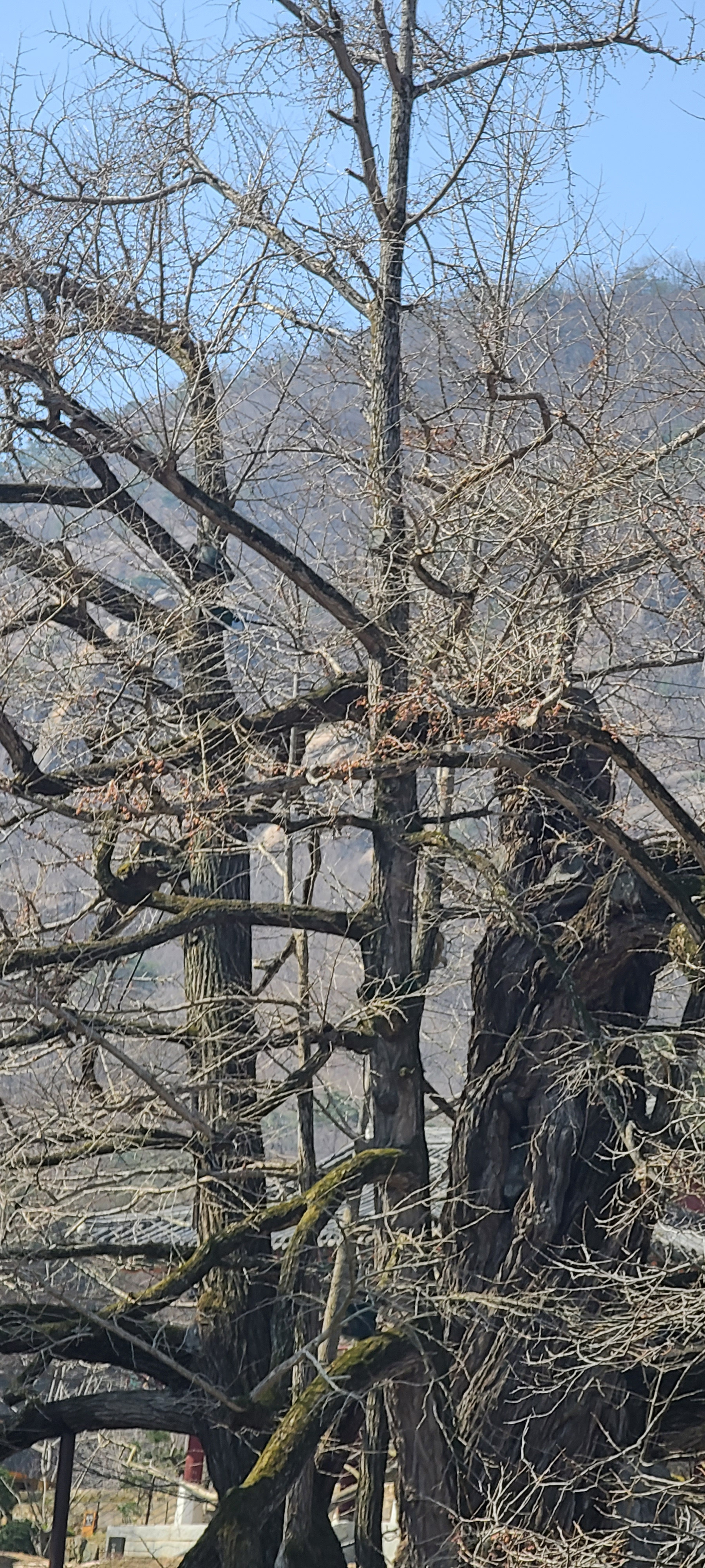 이제 그 유명한 은행나무가 보이고 천태산 전경도 드러난다. 그렇게 높아보이지 않는다.