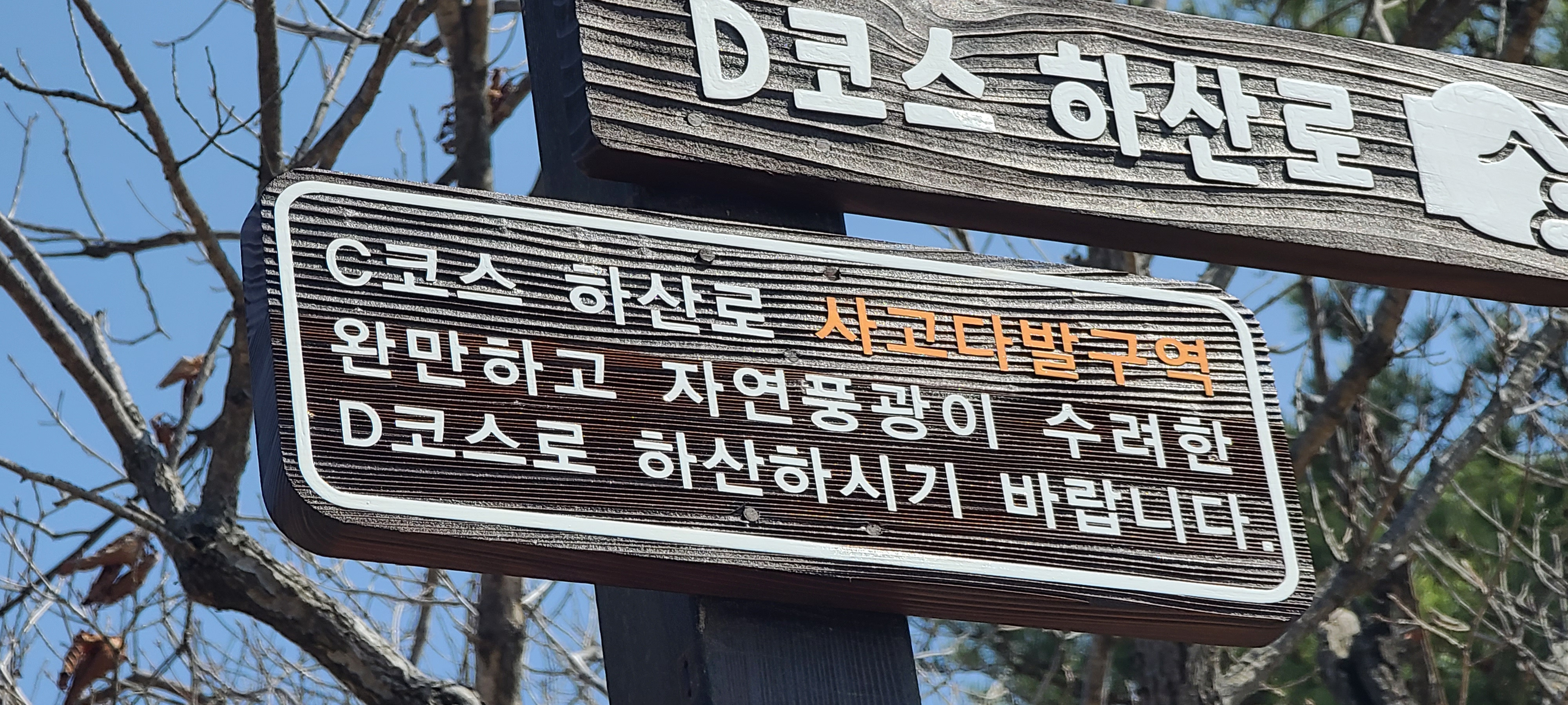 원래는 C코스로 하산하려다가 이 안내문을 보고 D코스로 하산하기로 하였다. 역시 거짓말이 아니었다. 조망이 좋았다.