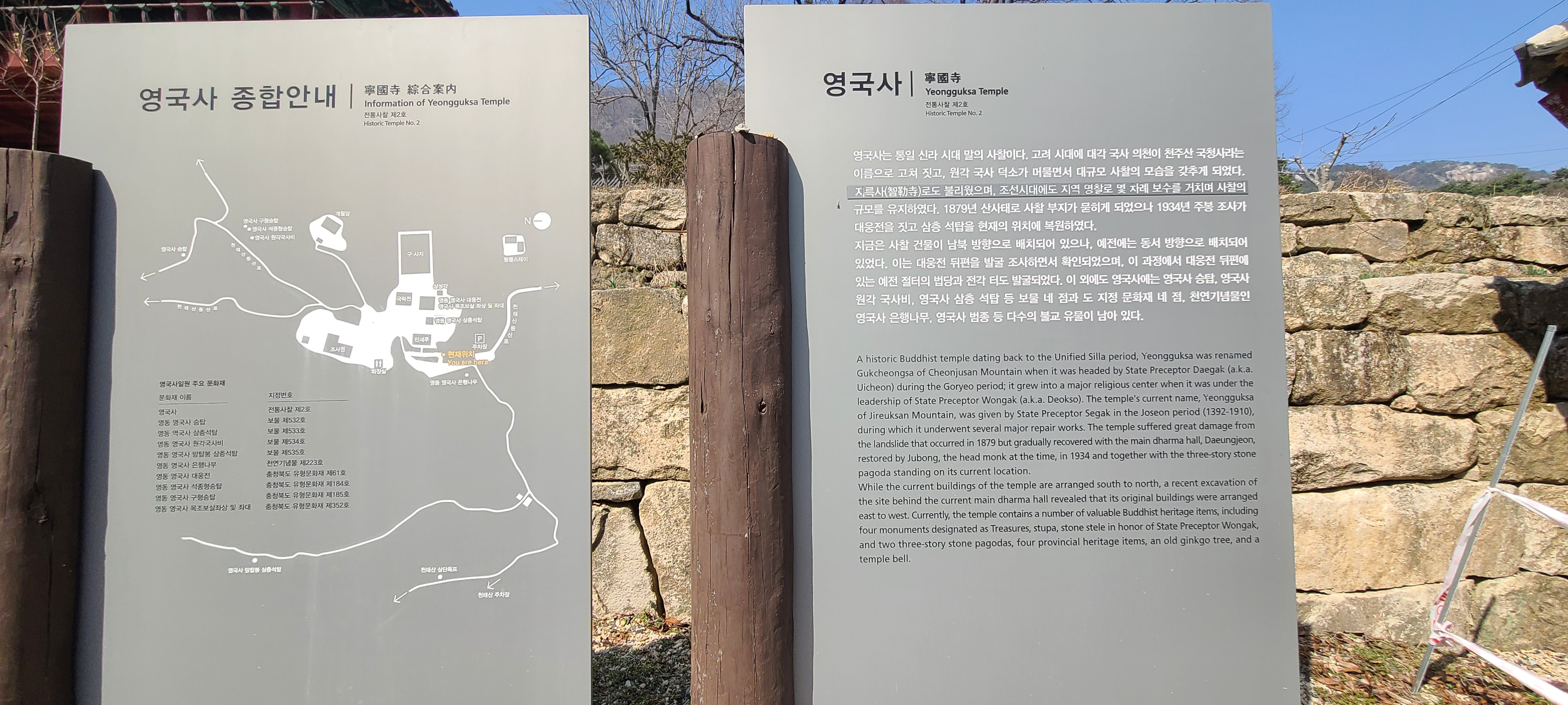 나머지 보물 3점은 등산 후 보기로 하고 A코스 들머리로 간다. 영국사에도 주차장이 있군.