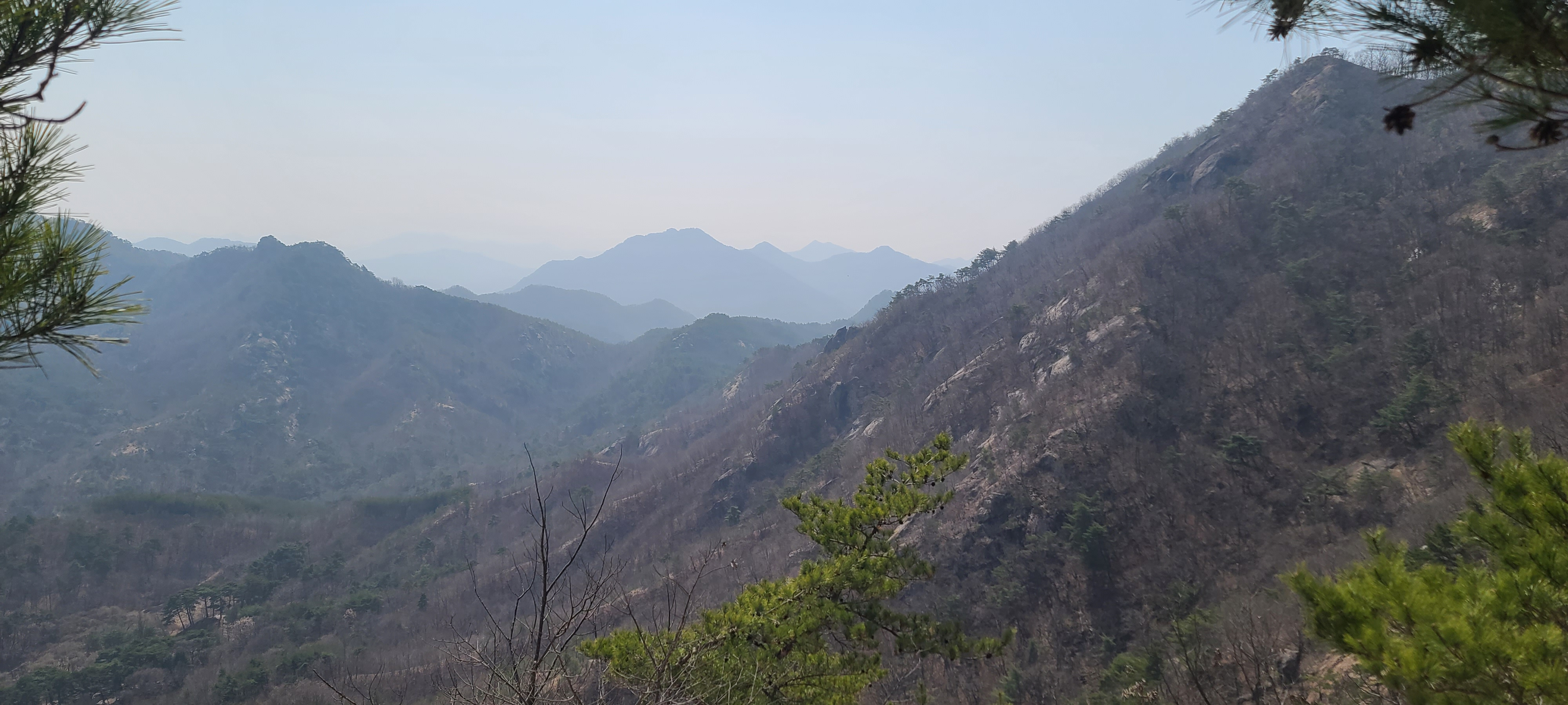 북으로 대성산이 얼핏 보인다. 저 산도 가야할 텐데...
