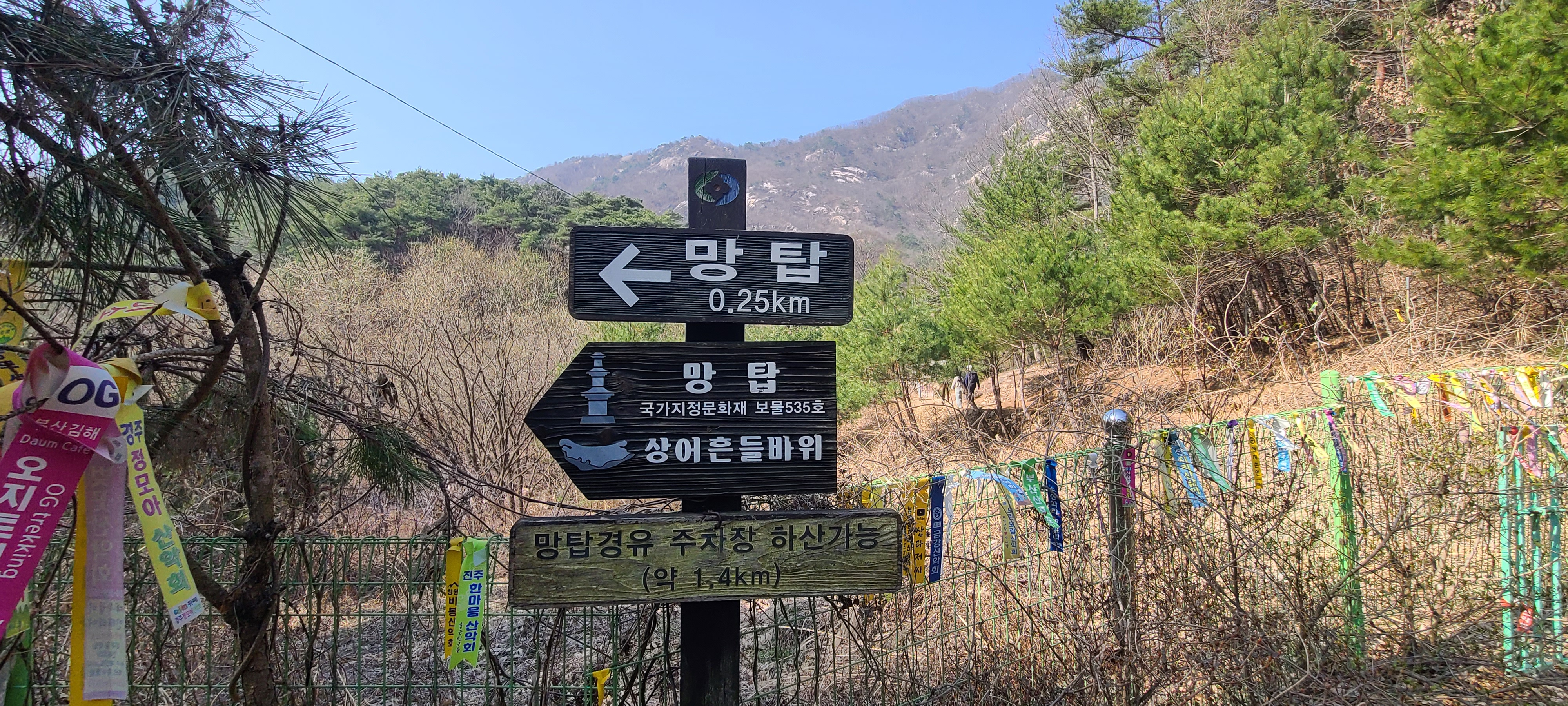 여기서 좌측 망탑으로 가도 되지만 우선 직진하여 정상 갔다온 후 망탑 구경하면 된다.