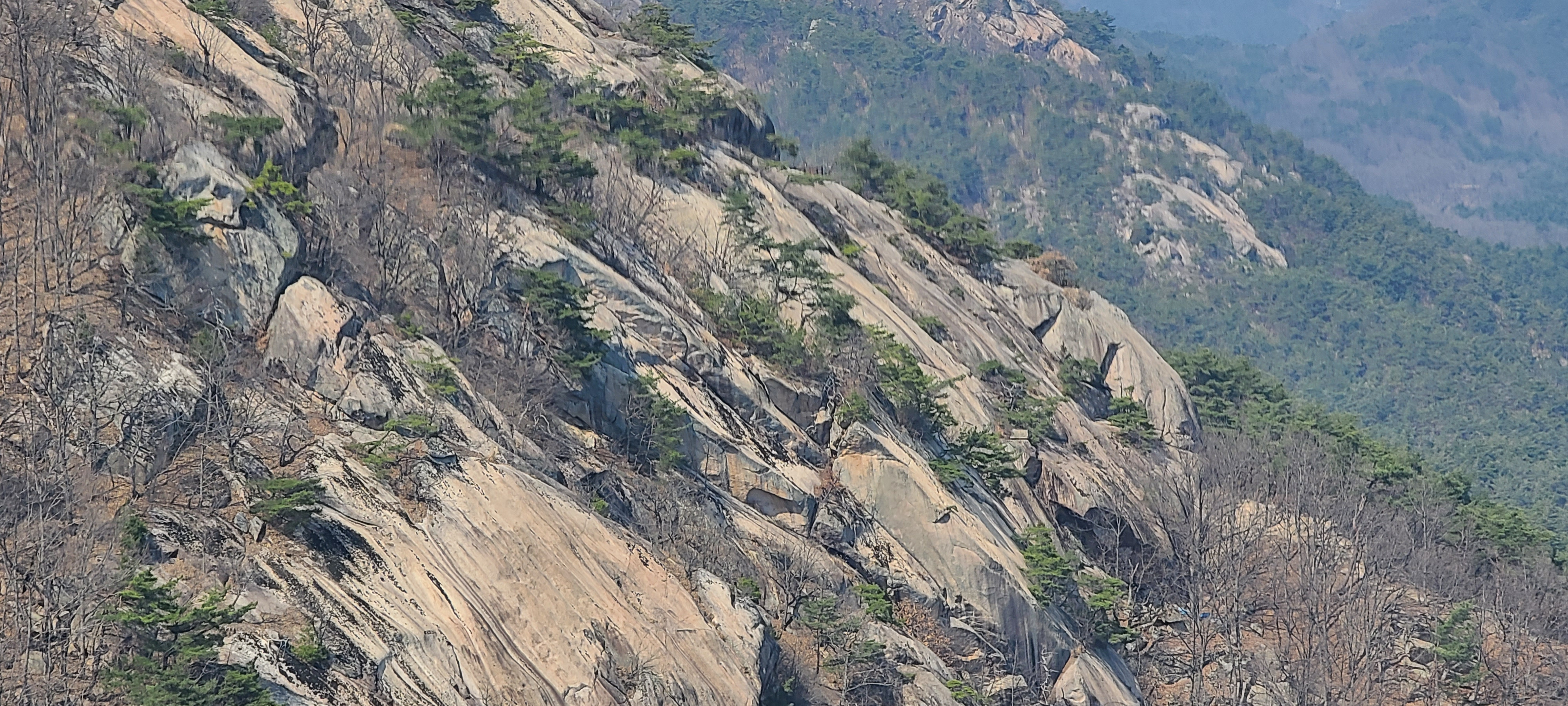 75미터 바위 산 중간 쯤 올라가서 위쪽으로 한 컷하고