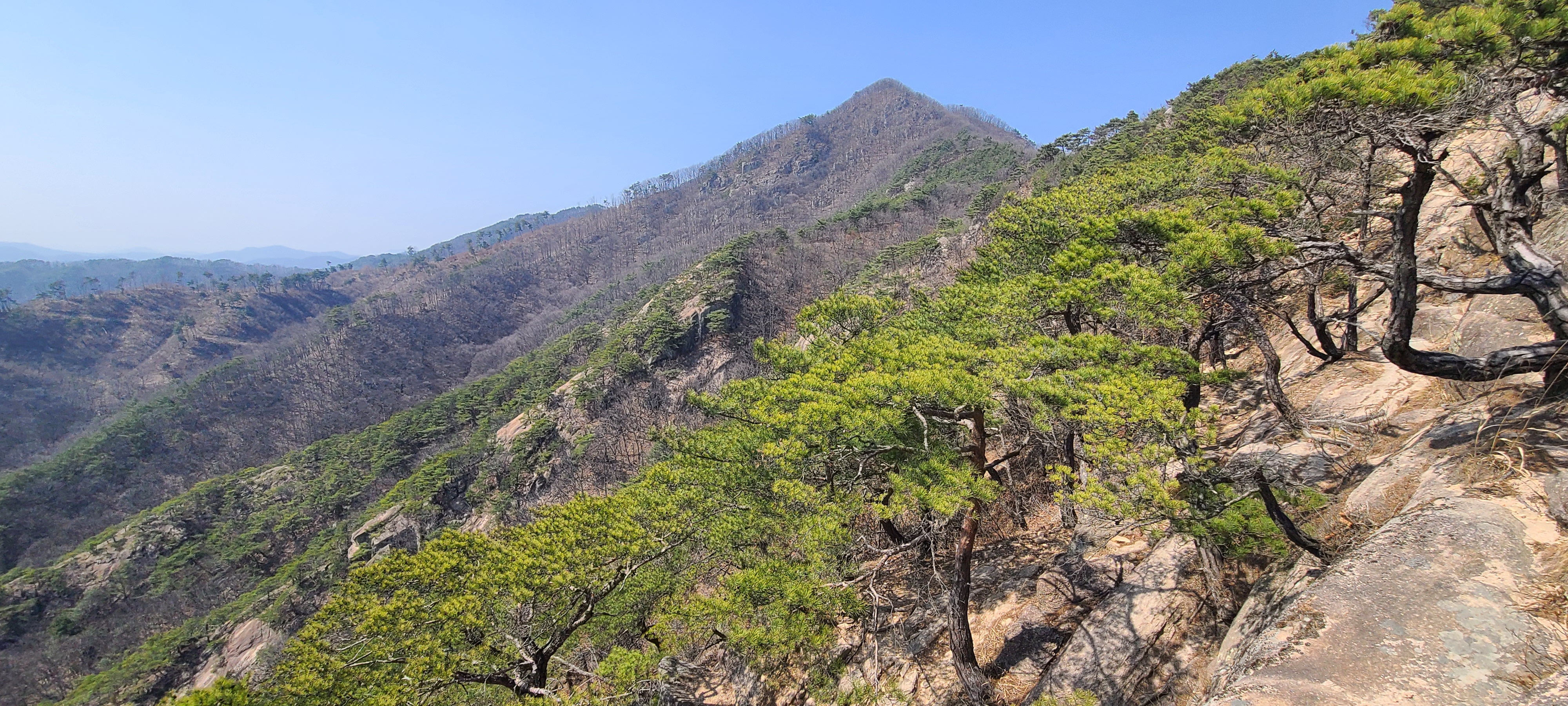 옥새봉에서 서쪽으로 이어지는 능선이고 우측 멀리가 갈기산인듯