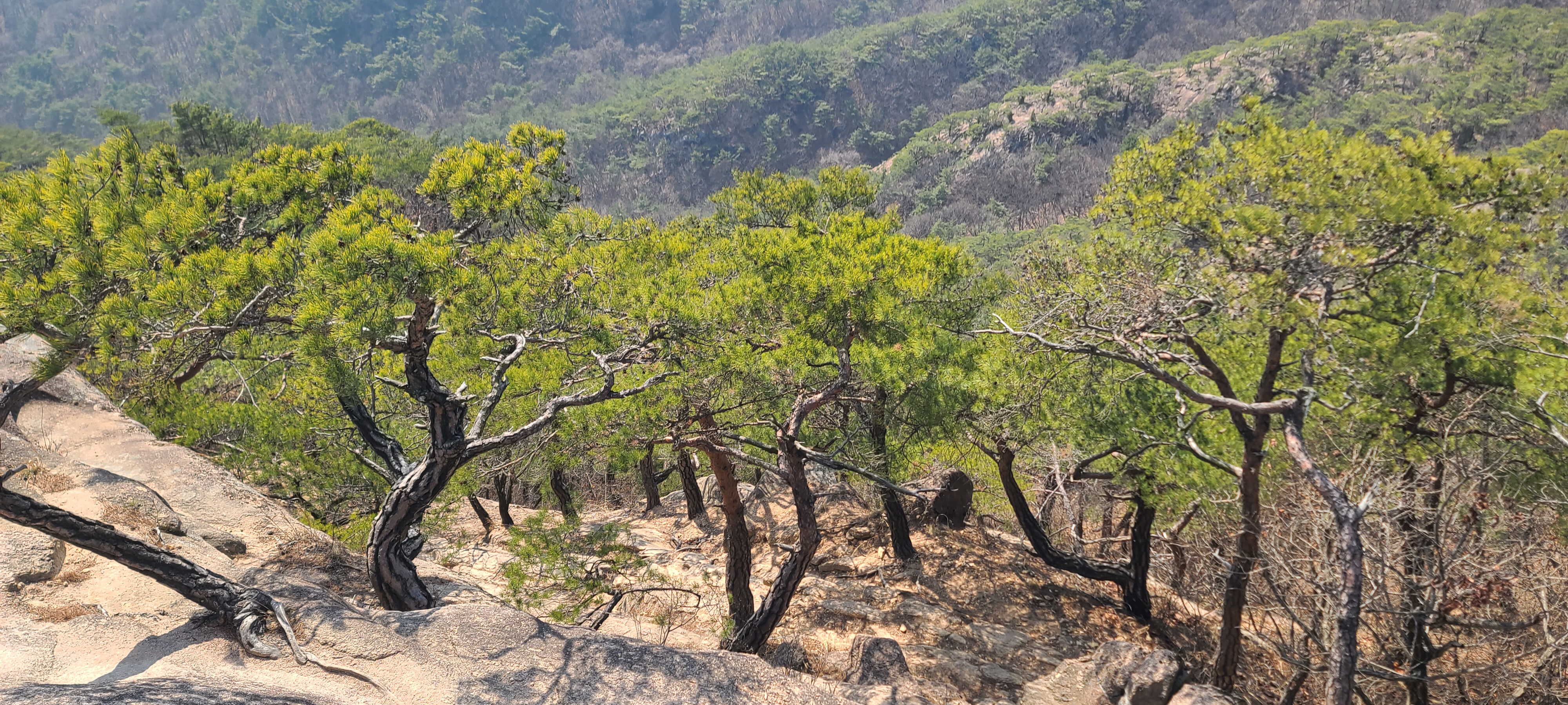 바위와 소나무가 잘 어우러져 피곤함도 없다. 우측으로 옥새봉이 보이고