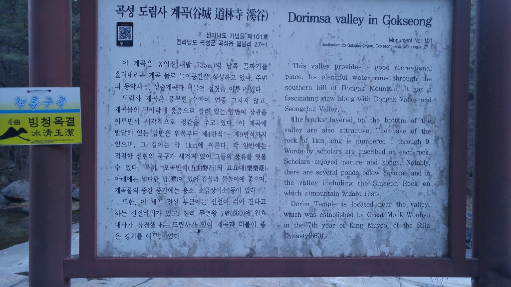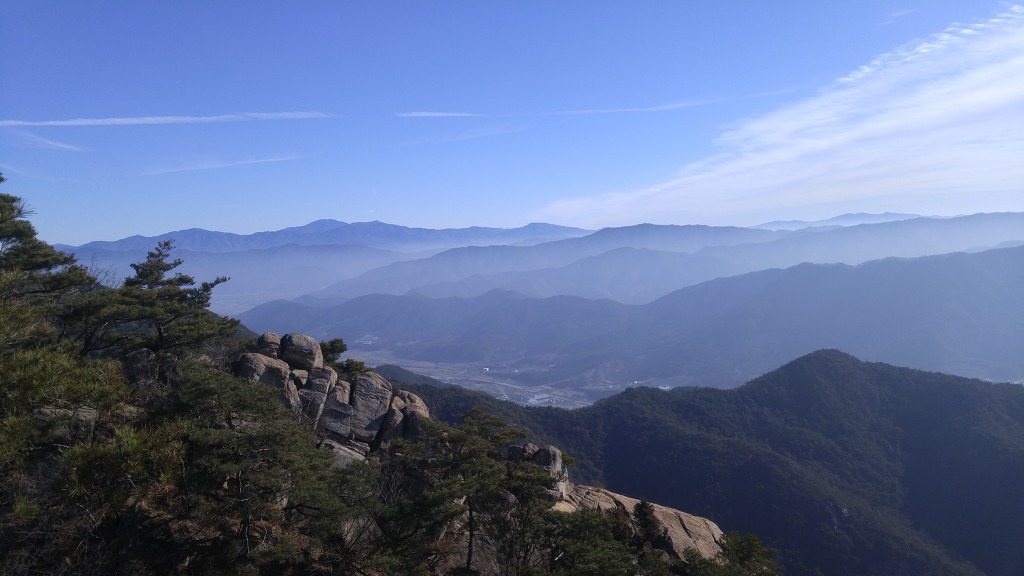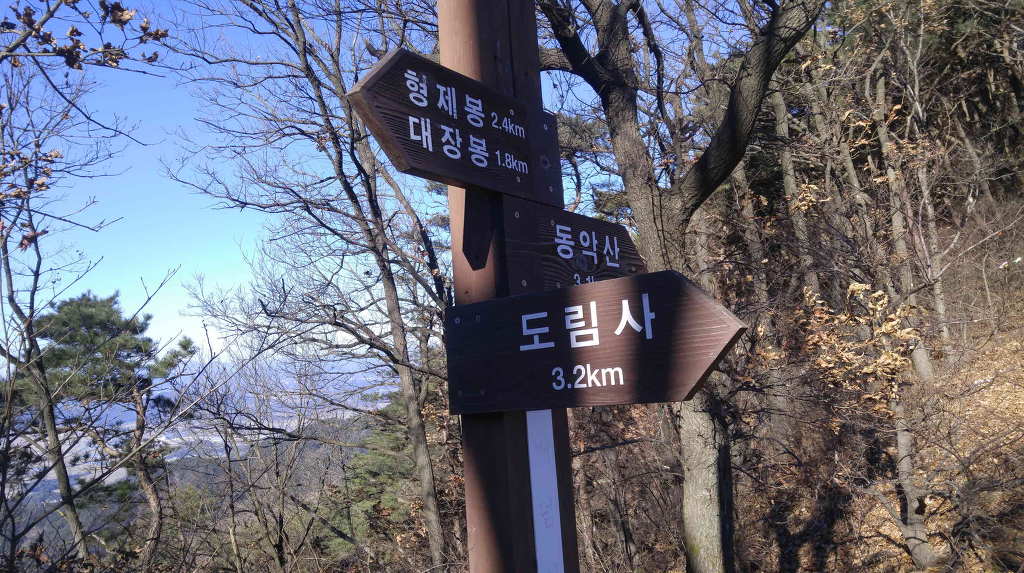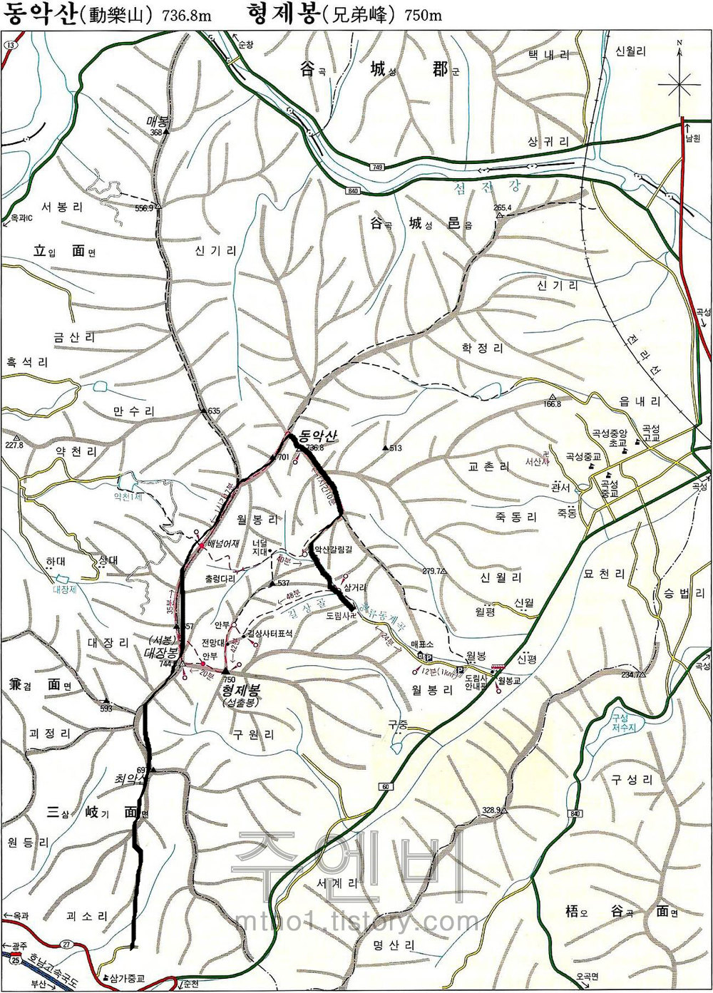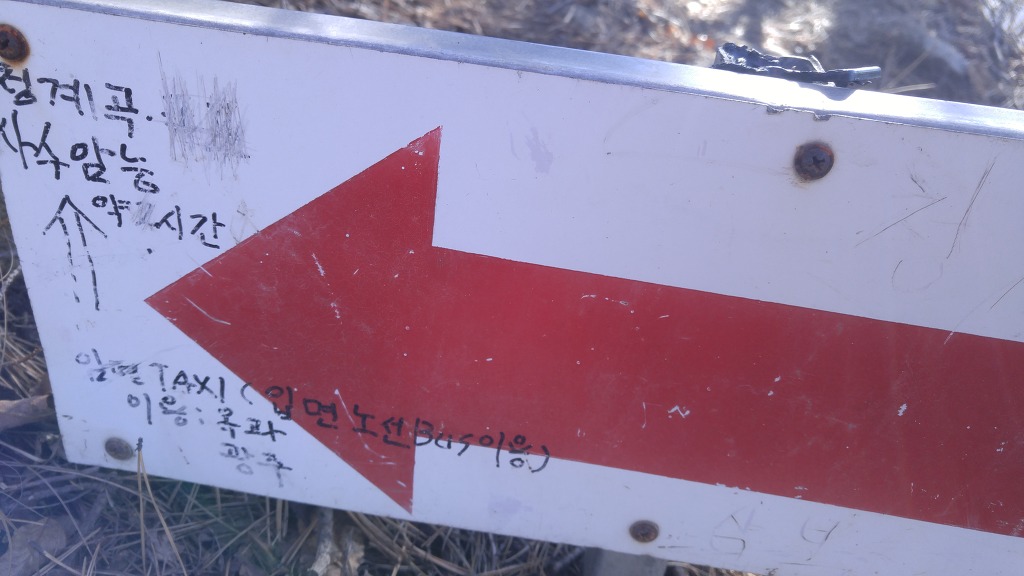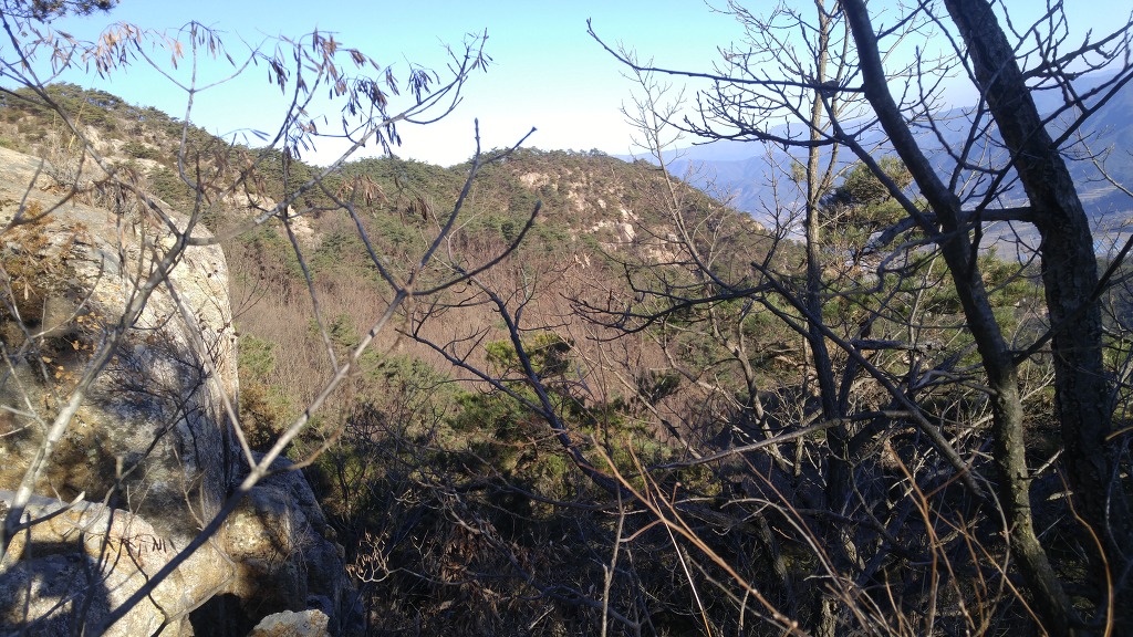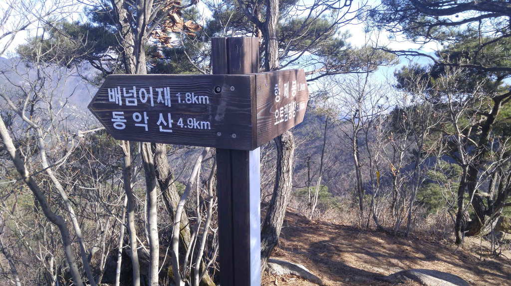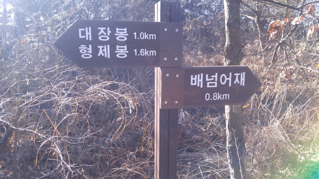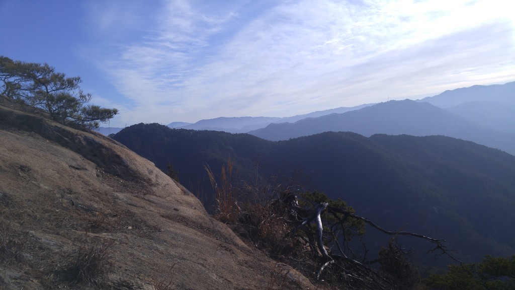 01. 산행기점 : 전남 곡성군 삼기면 괴소리 괴소마을회관 02. 산행종점 : 전남 곡성군 곡성읍 월봉리 도람사 03. 산행일자 : 2016년 12월 10일(토요일) 04. 산행날씨 : 맑고 시야 좋음 05. 산행지도 06. 산행코스 : 괴소마을회관--->괴소저수지--->벌목지--->암봉--->본능선의 좌측 봉우리--->되돌아나와 중봉방향--->중봉--->초악산--->형제봉 삼거리에서 대장봉 방향--->대장봉--->배넘이재--->동악산 청계방향 갈림길에서 우측 동악산 방향--->동악산--->신선바위--->도림사(12k, 7시간) 07. 원점회귀 : 도림사에서 택시불러 괴소마을회관(14000원) 08. 찾아가기 : 호남고속도로 곡성IC--->좌측 삼기면 방향 200미터 우측 삼기중학교(폐교)--->괴소마을(부산에서 휴식포함 3시간) 08. 산행일기 : 간밤에 11월 말 제대한 우리집 돼지새끼(돈아)가 아빠따라 등산을 나서려 하니 동행하기로 하였습니다. 몇번의 휴가 중엔 절대 산에 가지않겠다고 공언한 바가 있습니다. 산에 가려는 것은 벌써 복무 중 고생했던 일이 잊혀졌다는 의미도 있겠지요. 아무튼 곡성까지 가는 여정에는 아들놈이 음악DJ가 되어 원하는 곡이 있거든 신청하라는 것이었습니다. 아비의 마음을 아는지 송창식 노래를 많이 틀어주었습니다. 아들이 듣는 곡은 아이유와 김창환이 부른 '너의 의미'는 좋은 노래라고 기억됩니다. 등산 시작할 무렵에는 지가 무거운 배낭을 지겼다고 우기는 것도 한편으로 흐뭇했습니다. 원래 이 산을 가게된 동기는 지난번 남원의 고리봉 능선을 내려왔을 때 섬진강이 가로막아 놓은 동악산, 촛대봉, 삼인봉 등을 오르고 싶다는 마음이 일어났었더랬지요. 그럴 봐에야 차라리 곡성쪽 초악산부터 종주하듯이 동악산, 촛대봉으로 내려오는 것이 개운할 것같았지요. 십수년전 동악산은 오른 적이 있지만 초악산은 미답지인 것도 여기를 기점으로 잡은 이유가 되겠네요. 그런데 대장봉에서 점심을 먹으면서 아들이 무릎에 통증이 있다는 것이었습니다. 특공대 통신병으로 근무하면서 무거운 장비를 지고 산으로 오르면서 생긴 만성지병같았습니다. 그러니 오늘 저쪽 남원의 청계동으로 가는 것은 뒷날로 미루어야겠습니다. 본인도 하산하면서 무릎고통을 많이 느꼈겠지요. 천천히 하산한 결과 많은 시간이 소요되었습니다. 초악산은 최악산으로도 불리는데 아마 초악산이 정확한것 같습니다. 초는 뱁새를 나타내는 것으로 산세가 새를 닮은 데서 비롯된 것인데 최악산으로 불리게 되었다는 것입니다. 초악산 정상은 수풀에 가려있지만 여기에 이르는 여정은 아기자기하고 주위의 조망도 좋아 암봉을 즐기는 산객의 사랑을 받을 만합니다. 특히 대장봉에서 조망은 압권입니다. 순창과 담양, 장성, 광주의 산들까지 관측되어 안복을 누릴만 합니다. 대장봉에서 동악산 어귀까지는 말 등을 타고 있는 기분으로 그야말로 안부여서 내리고 싶은 사람은 배넘이재에서 하산해도 되겠습니다. 이 구간은 봄에 야생화를 즐기면서 걷는 것도 좋겠습니다. 이런 안부에 갑자기 치솟은 동악산은 멀리서 보아도 특이한 암봉을 자랑합니다. 그래서 동악산의 岳도 험한 산을 말할 때 흔히 쓰는 그 岳이 아니라 풍류 樂을 쓰니 많이 착각도 되겠습니다. 이 지역에 우수한 인재가 과거에 급제하면 산이 動해 風樂을 울리는 소리가 들렸다는 전설이 있답니다. 세월이 흘러 이제 나무계단까지 설치하여 오르는 이의 수고를 줄여주고 있습니다. 여기선 멀리 남원의 문덕봉, 고리봉, 남원 시내, 고당봉, 반야봉도 아련하고 바로 코앞 곡성시가지도 훤합니다. 조금전 올랐던 대장봉과 형제봉 사이로 초악산이 고개를 내밉니다. 하산길은 원래 곡성 시내쪽으로 잡으려 하였는데 신선바위 아래 좌측길로 접어들어 저쪽 능선으로 붙어야 겠다는 생각에 그만 알바를 하고 말았습니다. 헛고생을 30분 정도 한것같습니다. 무릎이 좋지 않은 아이게게 괜히 부담을 주었네요. 그렇지 않았으면 도림사 대신에 월봉리로 하산하였을 겁니다. 다음 봄이나 여름에는 청계동에 차를 세워놓고 삼인봉, 촛대봉, 동악산, 월봉리 코스를 올라야겠다는 여정을 머리에 담고 하산을 끝냅니다. 기점인 괴소마을에서 본 산입니다. 검장산이네요 괴소저수지 뒤 첫 암봉입니다. 도로안내지도에는 반월산으로 되어 있네요 좌측 능선은 삼기면사무소, 다선사로 흘러갑니다. 괴소저수지입니다 바로 앞산은 통명산이랍니다 .원대복귀하면서 기사님에게물어보니 건너편 산이 통명산이라네요 멀리 조계산 방향입니다 고개를 내미는 산이 백아산인지 모르겠습니다 도로 안내지도에는 반월산으로 되어 있는 정상입니다 반월산에서 본 가야할 능선입니다. 오른쪽 고개를 내미는 산이 형제봉인듯 합니다 호남고속도로도 보입니다 비상해야지 우측으로 가면 삼기면 방향으로 ... 이제 능선길입니다 멀리 지리산 주능선입니다. 가운데 반야봉이네요 가운데 아주 멀리 하동 삼신봉인듯 합니다 산 많네요. 구분이 어렵습니다. 지리산 방향 저의 돼지새끼입니다. 동악산이 언뜻 보입니다 중봉이고요 초악산이 보입니다. 그 우측은 형제봉이고 좌측은 대장봉입니다 대장봉의 이정표입니다 형제봉을 바라보며 식사를 합니다 멀리 좌측은