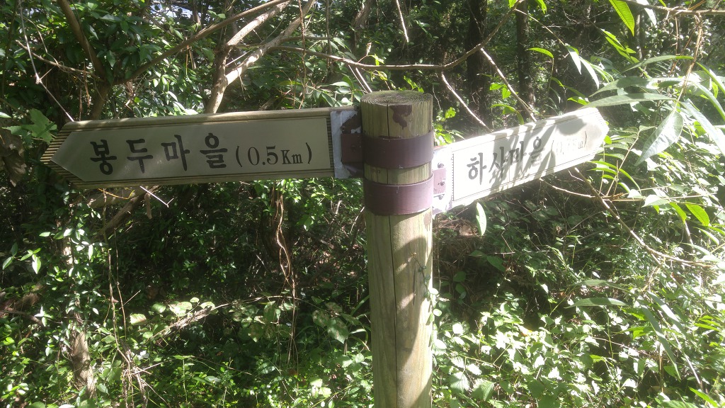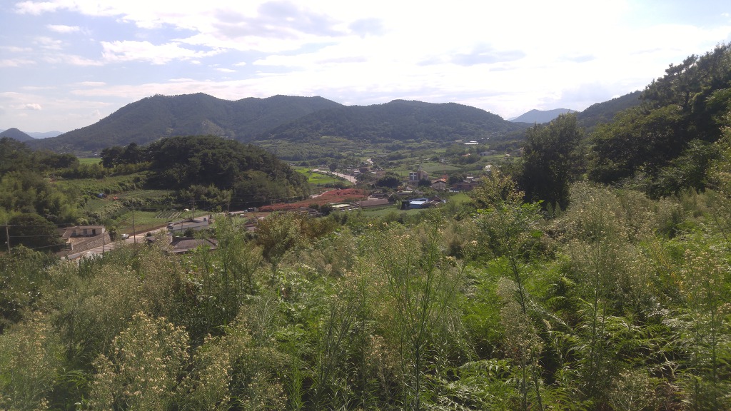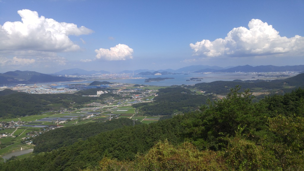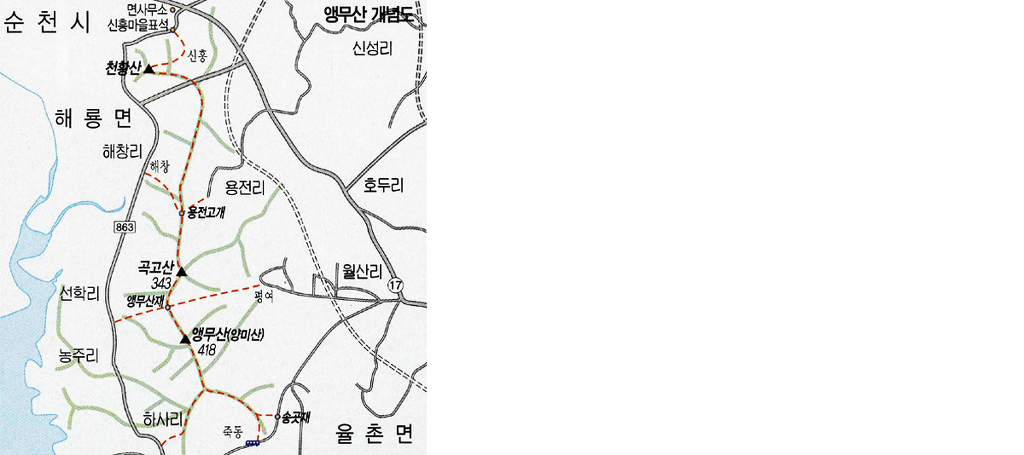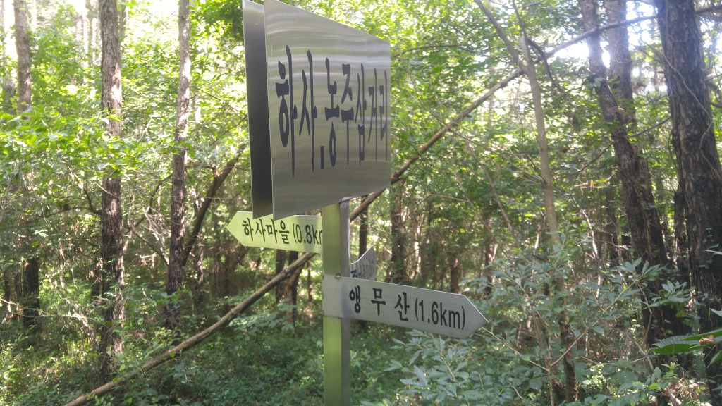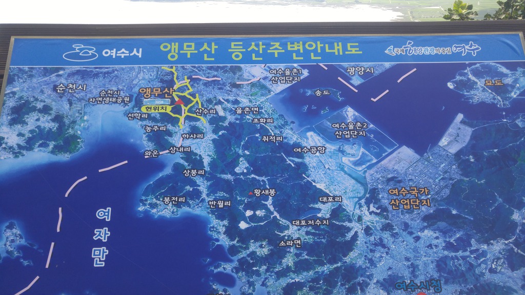 01. 산행기점 : 전남 순천시 해룡면 도룡리 신흥마을 02. 산행종점 : 전남 순천시 해룡면 하사리 죽동마을 03. 산행날씨 : 구름 약간 04. 산행일자 : 2017년 8월 9일(수요일) 05. 산행지도 <이 지도는 기점과 종점이 호산광인의 루트와 다릅니다. 참조하세요> 06. 산행코스 : 순천 해룡면 해룡초등 및 도서관 부근 신흥마을--->골짜기로 진입하여 공터 및 앵무산 안내판--->천황사 입구 좌측 이정표--->개짓는 소리 듣고 조금 오른 후 좌측 진입--->곡고산 안내판--->천황산 및 KT 중계안테나--->안테나 시설물에 바짝붙어 직진(사실 길없음)--->수풀지대~~~~--->용전고개--->도로가 나오는 용전고개에서 우측으로 진입하여야 하나 수풀로 포기하고 용전마을--->용전마을 민가끝날 때쯤 경운기 우측 그러니까 가운데길(가장 우측 담으로 붙지말고)--->등산길 이정표 보고 진입--->용전사거리--->곡고산--->앵무산--->정자 우측--->봉두방향--->능주삼거리에서 직진--->여수와 순천의 경계지대 및 당산나무--->우측방향으로 걸어와 죽동 정류장 07. 산행거리 및 시간 : 10k, 4시간 30분(중식포함) 08. 차량회수 : 산행코스가 거의 직선이어서 차량회수를 위해 원점회귀하려면 죽동 정류소에서 40분 간격으로 있는 버스를 타야합니다. 호산광인은 바빠 택시를 부르려는데 정류장에 스쿠터를 몰고 있는 50대 중반의 깍은 머리의 사나이가 태워주려하여 거절하지 않았습니다. 덕분에 1시간 이상 시간을 절약한 것같습니다. 09. 주의사항 : 여름철이라 신흥마을에서 죽전고개까지는 수풀로 길이없으니 해창에서 오르는 것이 좋을듯 합니다. 천황산 가보아야 별것 없으므로 ...굳이 고집을 피울 건 없다고 봅니다. 겨울철이면 모를까... 10. 찾아가기 : 남해고속도로 광양IC--->순천시 해룡면 사무소 앞--->농협하나로마트--->우측 해룡초등학교--->삼거리 신흥마을 표지석 좌측진입--->앵무산 안내도 및 공터주차 12. 산행일기 : 그동안 팔목고장으로 어른 산소를 들르지 못해 부담스러웠는데 오늘은 팔목시험도 할 겸 길을 나섭니다. 산소 부근의 산을 가볍게 오른 후 가기로 합니다. 앵무산!!! 들었을 때 그렇게 어감이 좋았습니다. 앵무산을 가기로 한 건 순전히 이름때문입니다. 鶯(꾀꼬리 앵)인지 鸚(앵무새 앵)인지 알 수 없고 무도 鵡(앵무새 무) 舞(춤출 무)인지 모르겠습니다. 나름대로 생각할 때 꾀꼬리가 춤추는 산인지 아니면 앵무새 산인지 궁금해 하다가 후자라고 생각했습니다. 후자가 문헌에 많이 등장하므로... 아무튼 도회지 산의 진입로는 찾기 어려운데 마음을 비우고 해룡면 초등학교지나 신흥마을 입석 옆에 안내도를 보고 진입하여 공터에 차를 세우고 직진하여 들어가니 편안합니다. 안내도와 이정표와는 달리 등로에는 사람의 흔적이 없어 수풀로 가득하고 음침하기까지 합니다. 이건 천황산 정상이기도 한 KT중계안테나가 있는 곳까지는 참을만 했습니다. 그 이후 용전고개까지는 악전고투로 나 자신을 원망했습니다. 왜 여기까지 왔냐교? 그래도 회군할 수없어 계속 거미줄과 투쟁하면서 나아가니 호화로운 무덤군이 나오고 좌측은 커테이너 박스가 있는 오름길이 곡고산인지 저멀리 삼각형으로 보이는 산인지 알 수 없어 그 고개길에서 정면으로 트럭옆에 휴식하고 있는 친절한 아저씨에게로 다가갔습니다. "곡고산이 어딥니까?"하니 정면을 가르킵니다. "그리로 가려면 진입로가 어딘가요?"하니 "도로 건너 저 기슭인데 칡넝쿨로 고생할 겁니다. 차라리 용전마을로 진입하여 오르는 것이 보다 낫습니다"한다. 조금 전 수풀을 헤친 경험이 없었다면 도로 건너편으로 들어갔을 겁니다. 용전마을로 걸어들어가 여러 차례 시행착오 끝에 [등산로]라는 이정표를 만나니 기생 올애비만난 기분이었습니다. 용전사거리에 도착하니 길이 깨끗해 앵무산은 여름철엔 해창에서 올라야 한다는 신념이 생겼습니다. 이리저리 시간을 많이 소비한 끝에 용전사거리 응달진 곳에서 식사를 하였습니다. 곡차도 한잔하는데 순천 '우리나우'쌀막걸리는 참으로 맛이 있어 한병 다 마실뻔했습니다(술엔 관한 한 자제력이 강하다). 정상석이 없는 곡고산에 서니 시야가 확 터입니다. 광양만은 말할 것 없고 순천시가지 멀리 백운산, 억불봉 그리고 고흥반도 등도 뜬구름 아래 잘 관측되니 오를 때 고생했던 기분도 사라져 버립니다. 별도의 산처럼 보이는 앵무산도 좌측으로 부드럽게 도니 금방 정상에 도착합니다. 바로 앞 여자만과 하동 금오산, 남해 망운산까지 보이니 저 산 아래에서 태어난 친구들도 머리 속에 떠오릅니다. 해룡초등학교 부근 신흥마을 삼거리에 도착하면 오늘 등산기점을 제대로 찾은 겁니다 이 마을 이정석 옆에 안내도까지 붙어있으니... 공터에 차를 세우고 진행방향 직진합니다 천황산 철탑도 보입니다 여기를 지나 견공들의 합창소리에 주인이 나오고 좌측길로 안내합니다 여름철이라 사람의 흔적이 없습니다. 더 좋은 산으로 갔겠지요 KT 철탑겸 천황산. 여기서 시간이 많이 허비되었습니다. 표시한대로 가면 길이 없으니... 없어도 밀고 직진해야 합니다 천황산 표지목을 일으켜세울 여유도 없습니다 곡고산이 보이는 것 같은데 이렇게 진행을 방해할 수