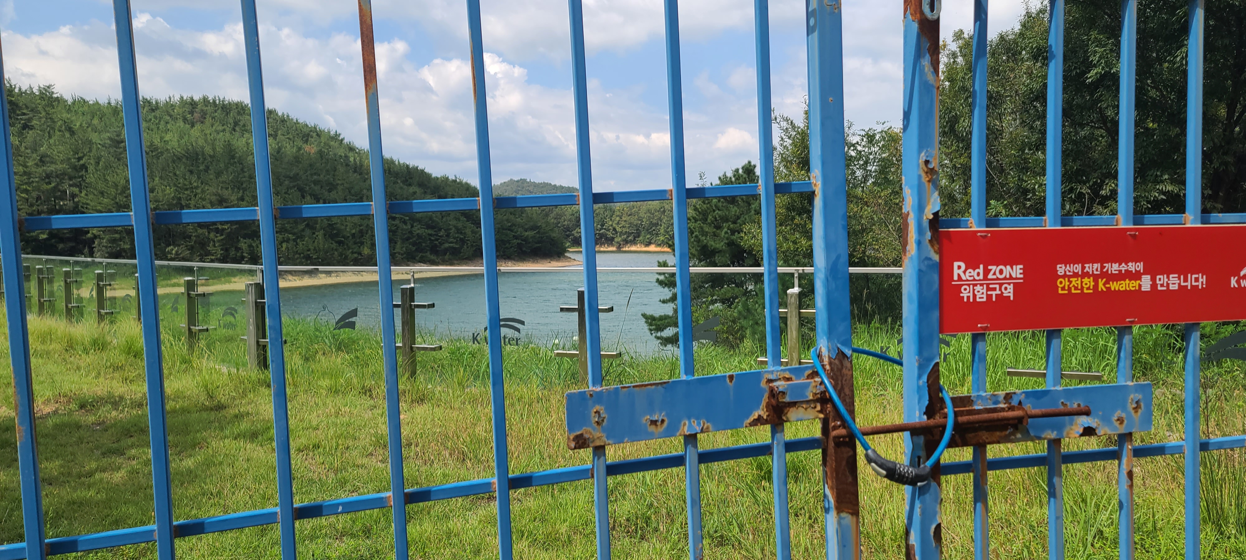 K-Water 위험구역 표지판도 보이고 안계저수지 일부도 ...
