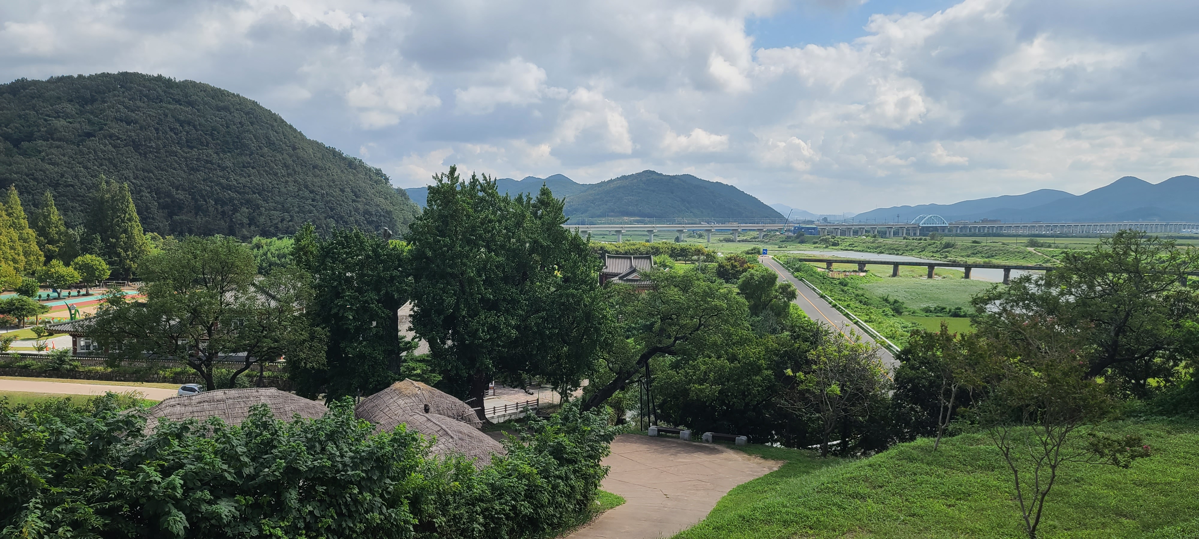 우측 안강읍이 보이고 좌측으로는 안락천이 살짝 보인다.