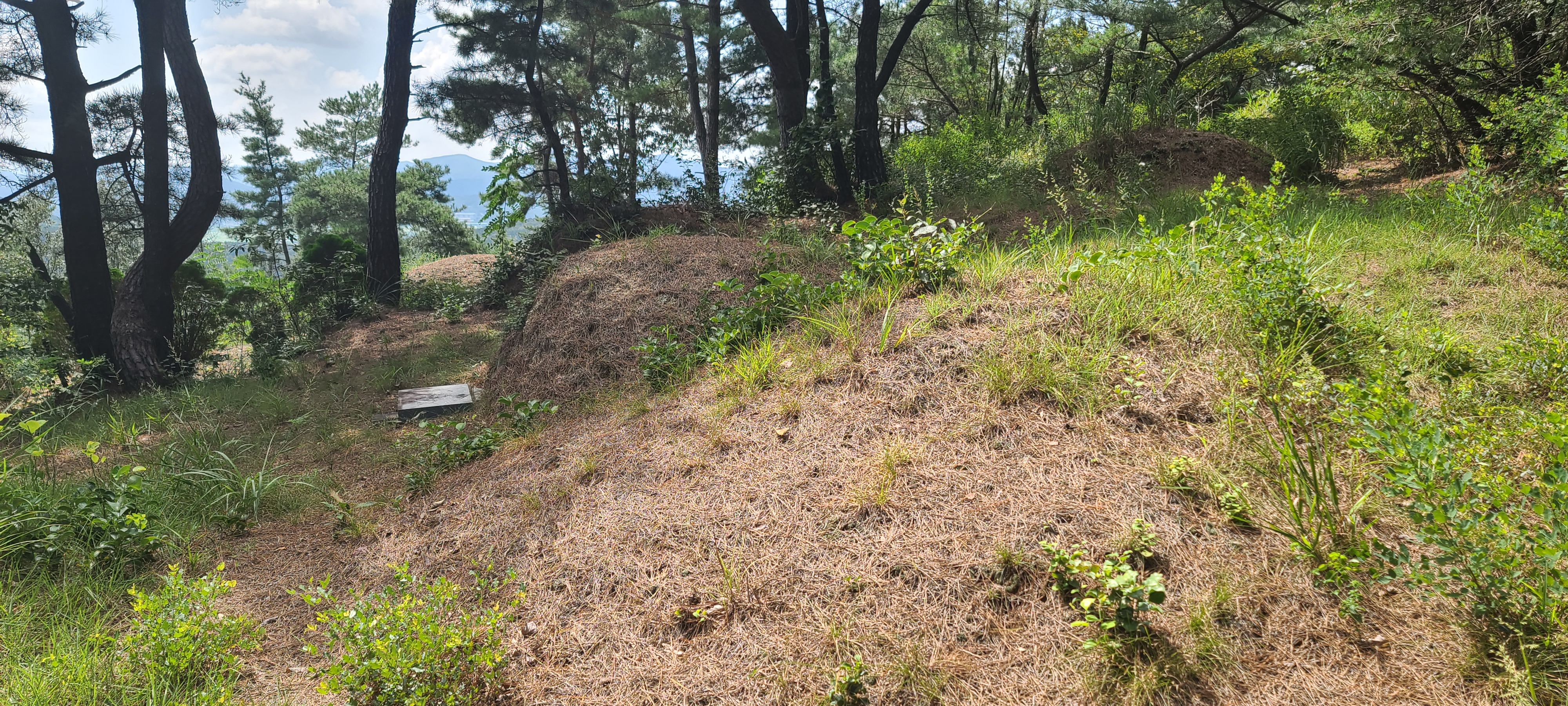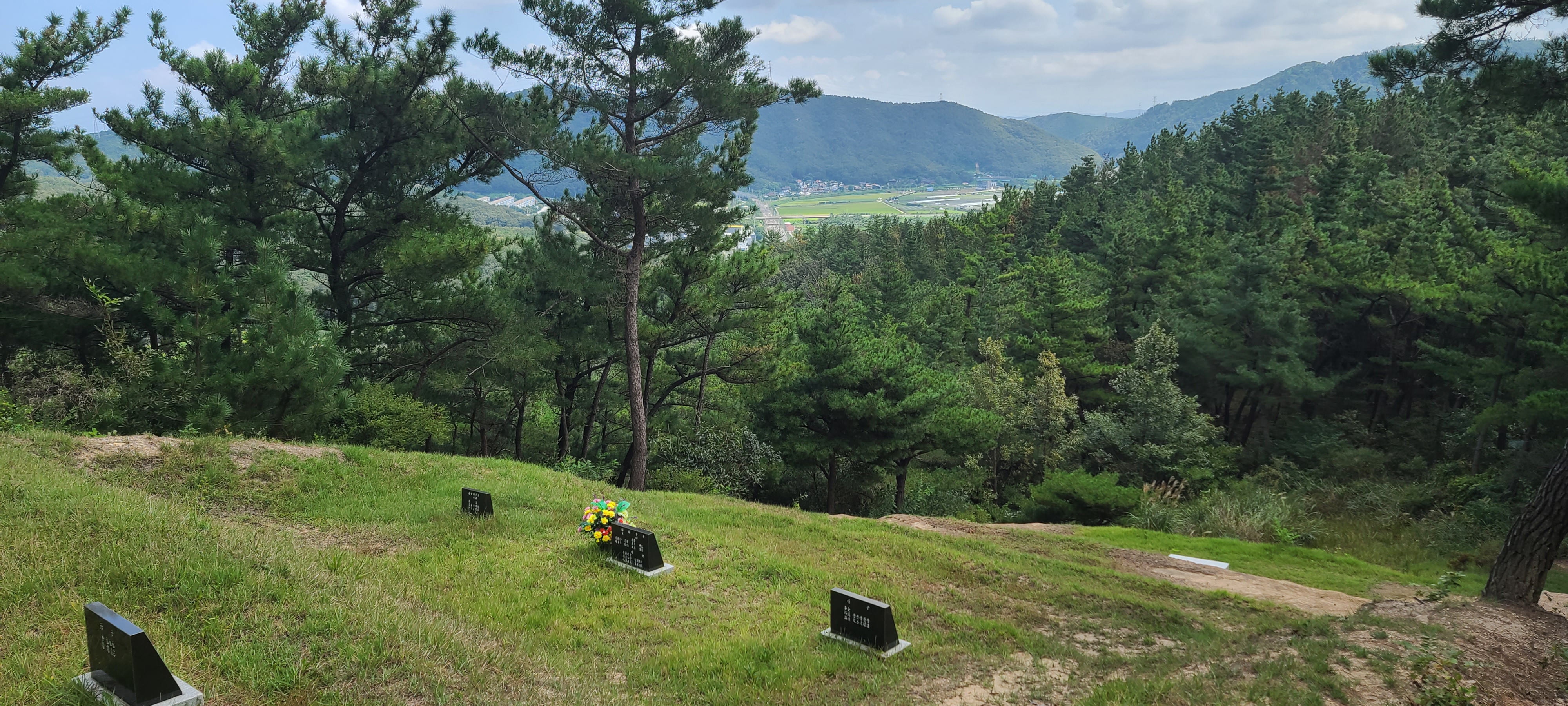 조금 더 몇 발자국만 옮기니 가족묘지도 나오고 시야가 좀 트인다. 멀리 포항이겠지.