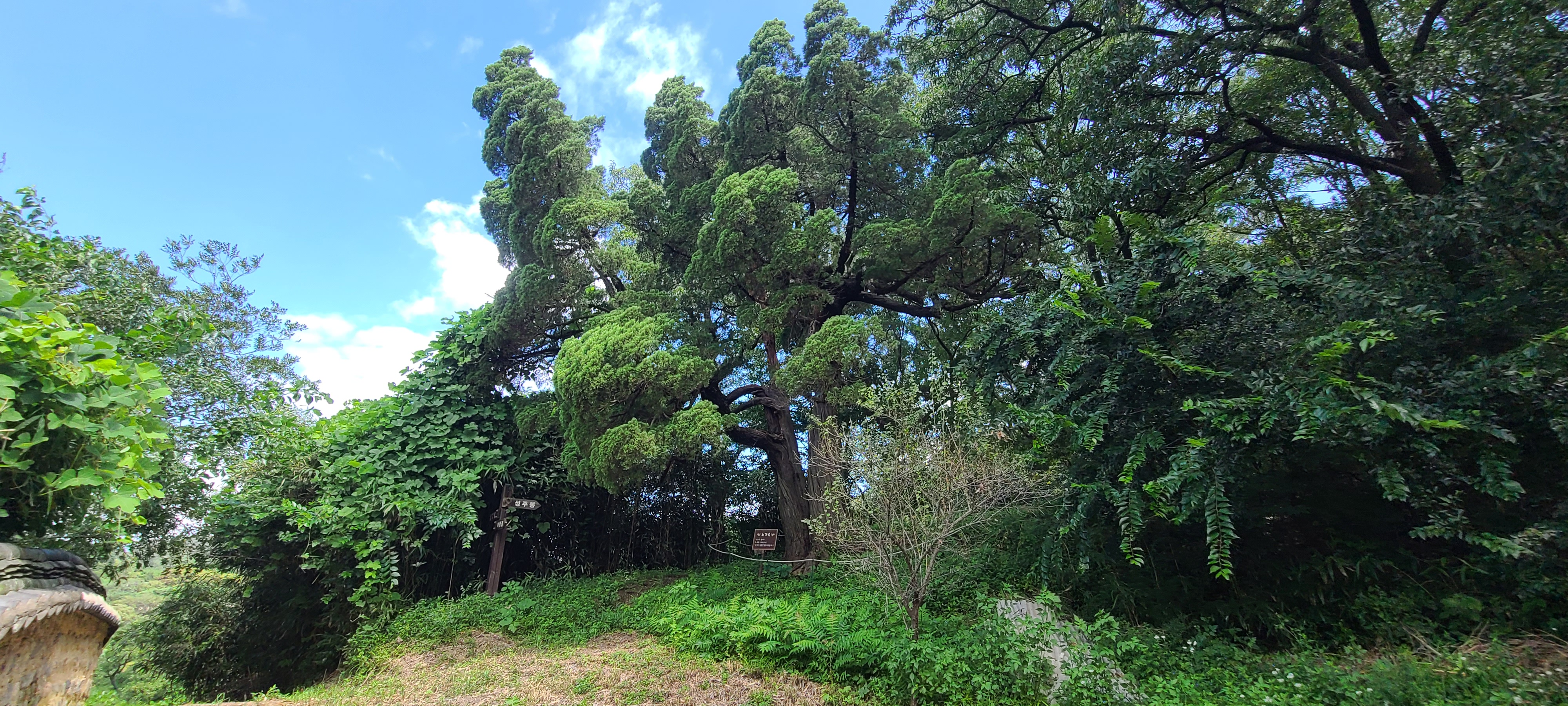 언덕을 오르니 품격있는 향나무가 보인다.