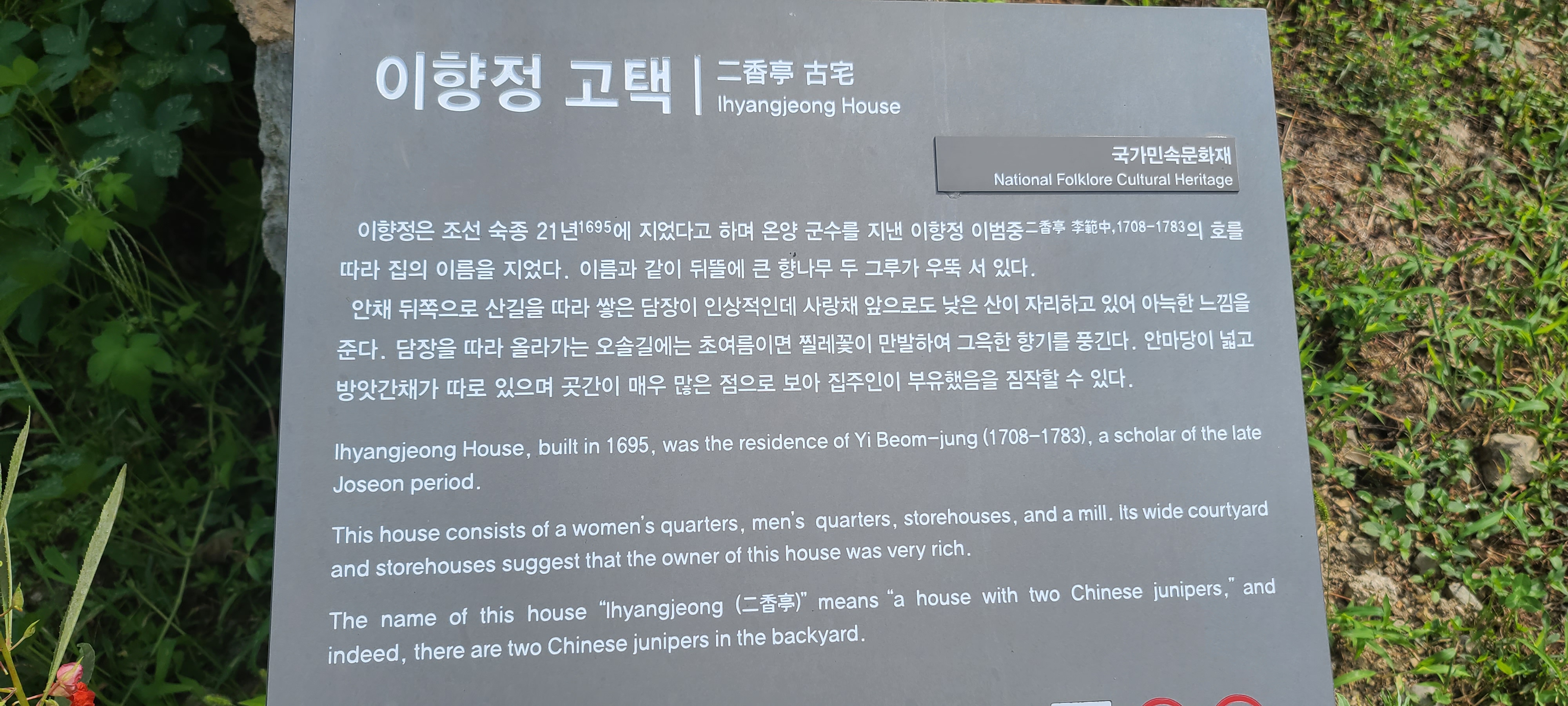 마당의 향나무가 역사를 말해준다.