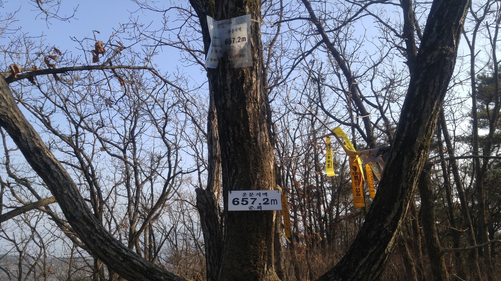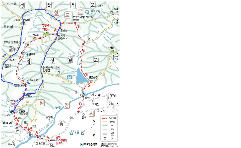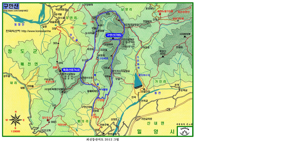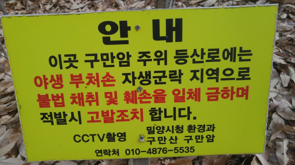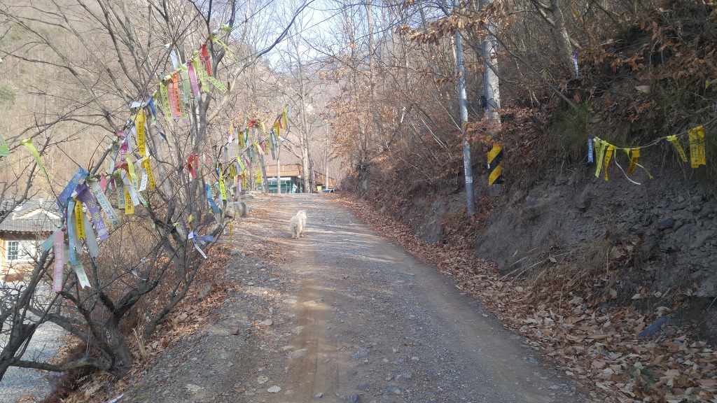 01. 산행기·종점 : 경남 밀양시 산내면 봉의리 구만폭포 입구 대형주차장 02. 산행일자 : 2018년 01월 20일(토요일) 03. 산행날씨 : 맑으나 시야협소 04. 산행지도 05. 산행코스 : 구만폭포입구 주차장--->구만암에서 우측--->본능선 합류--->봉의저수지갈림길 폐쇄--->봉의저수지갈림길--->구만산 입구 삼거리 이정표--->구만산 정상--->다시 삼거리에서 억산방향--->억산방향 삼거리에서 직진--->흰덤봉--->658봉에서 좌측--->약물탕--->구만암--->구만산장 앞--->주차장 06. 산행거리 및 시간 : 15k 내외, 6시간 07. 찾아가기 : 경부고속도로 언양IC--->국도 35호 언양방향--->언양관통후 밀양방향 국도 24호--->송백에서 우측 진입--->봉의리 양촌마을--->구만산장 입구 대형주차장 08. 산행일기 : 산에 왜 가느냐?에 명답은 영국 산악인 죠지 맬로리가 말한 "산이 거기에 있으니까"(Because it is there)입니다. 등산을 싫어하는 사람들의 물음에 입을 닫게 할 수 있는 최선의 현학적 답이지요. 호산광인에게 같은 질문을 한다면 마땅한 답변을 할 수 없습니다. 그 답을 구하러 매주 산에 오르는지도 모르겠습니다. 그동안 구만산은 몇차례 올랐지만 주변의 봉우리들이 복잡해 그걸 알고싶어 올라봅니다. 특히 청도 장연리에서 육화산을 오를 때 보았던 흰덤봉의 위세가 머리 속에 오래박혀 있어 그 봉우리에 직접 서보고 싶었습니다. 들머리를 양촌마을에서 찾아보았으나 찾을 길 없어 구만산장 입구에서 우측 사유지로 출입금지한 곳으로 오르려는 것도 포기하고 무난한 구만암에서 지그재그로 올라봅니다. 본 능선에 이르니 곳곳에 훌륭한 조망처가 있으니 진한 가스로 통쾌하고 장쾌한 시야는 아니나 운문산, 범봉, 억산, 복점산, 사자봉, 북바위봉이 관측되어 마음의 위안을 얻습니다. 구만산은 그 주위의 봉우리와 능선이 구절양장처럼 호위하고 있음을 직접 체험하고 알 수 있었습니다. 그러니까 구만산을 북극성처럼 가운데 두고 뭇 능선이 에워싸고 있어서 九萬이라 이름하였지 싶습니다. 저렇게 굽이굽이 도는 능선에 어찌 멋진 계곡이 없으며 폭포가 없어리요? 사람의 때를 타지않은 오래전의 구만계곡이야말로 인간과 호흡하는 청정한 곳이었으니 초여름 아직 휴양족의 발길을 타지않았을 때 한번 탐험한다면 실망하지 않으리라!!! 겨울철 구만산은 텅텅 비어있지요. 구만계곡입니다. 우측으로 올라 좌측으로 내려올 예정입니다. 주차요금 3천냥 이 능선은 양촌마을에서 올라야하나 들머리를 찾을 수 없어 구만암에서 올라갑니다 하산할 때에도 오른쪽 능선으로 내려오면 좋았으나 길이 희미하기에... 구만암 가기전 이 사유지로 오를 수 있다네요. 오래전의 방어태세보다 한층 발전되 모습입니다 시비가 생기지 않기 위해 구만암으로 접근합니다 4.5k 방향으로 갑니다 하산시 여기로 내려옵니다 오래 전에는 [피로사회]이더니 이젠 고발사회입니다 이 능선넘어에서 하산할 줄이야 여기서 봉의저수지로는 폐쇄되었네요 가운데 봉우리가 668봉인듯 저기에 산소까지... 우측은 운문산 가운데 멀리 범봉, 그 앞은 수리봉 좌측 뽀족한 봉우리가 사자봉 그 앞은 북바위산 정승봉 밀양시내 방향의 산들 인골과 좌측의 복점산, 가운데 사자봉 봉의저수지 멀리 희미한 천황봉 정각산이 희미하네요 우측 멀리 구만산 정상갔다가 다시 여기로 돌아옵니다 구만산 조상의 조망은 보잘 것 없습니다 억산갈림길에서 직진합니다 청도 멀리 구만산. 뭇 능선이 구만산을 호위하고 있습니다 청도의 산들도 희미합니다 곳곳에 청도로 하산하는 길이 열려있습니다 육화산 봉우리가 육화산 방향으로 갑니다 호산광인이 그렇게 그리워하던 흰덤봉인데 올라보이 평범하네요 흰덤봉 지나 무덤이 나오고 오늘 육화산은 포기하렵니다 청도 장연리 뽀족봉이 육화산 흰덤봉 지나 가야할 길을 가늠해봅니다 612봉 흰덤봉 구만계곡으로 하산길이 있으나 직진 가까워진 육화산 노루처럼 뒤돌아봅니다 육화산은 포기하고 송백방향으로 갑니다 658봉을 조금 지나 좌측 급경사로 하산합니다 계속 50미터 이상 가 하산하려하니 이런 암봉이 나오고 길도 희미해 50미터 백합니다 급경사를 낙엽으로 기다시피하면서 내려옵니다. 오전 올랐던 봉우리 이런 산소도 있고 이리로 내려오면 구만산계곡과 합류하고 우측으로 내려가면 나무계단이 나오고 여기가 약물탕인지 모르겠네요. 지도상엔 그렇게 다시 구만암에 돌아오니 王維의[맑은 샘물 바위위로 흐르고 밝은 달은 소나무 사이로 비치네]가 발길을 밝혀주네요 서산에 지는 해 나그네 발길 재촉하네 구만산장 다시 주차장에 돌아오니 고양이 녀석 격하게 반기네. 오랫동안 굶주린 모양이네 |