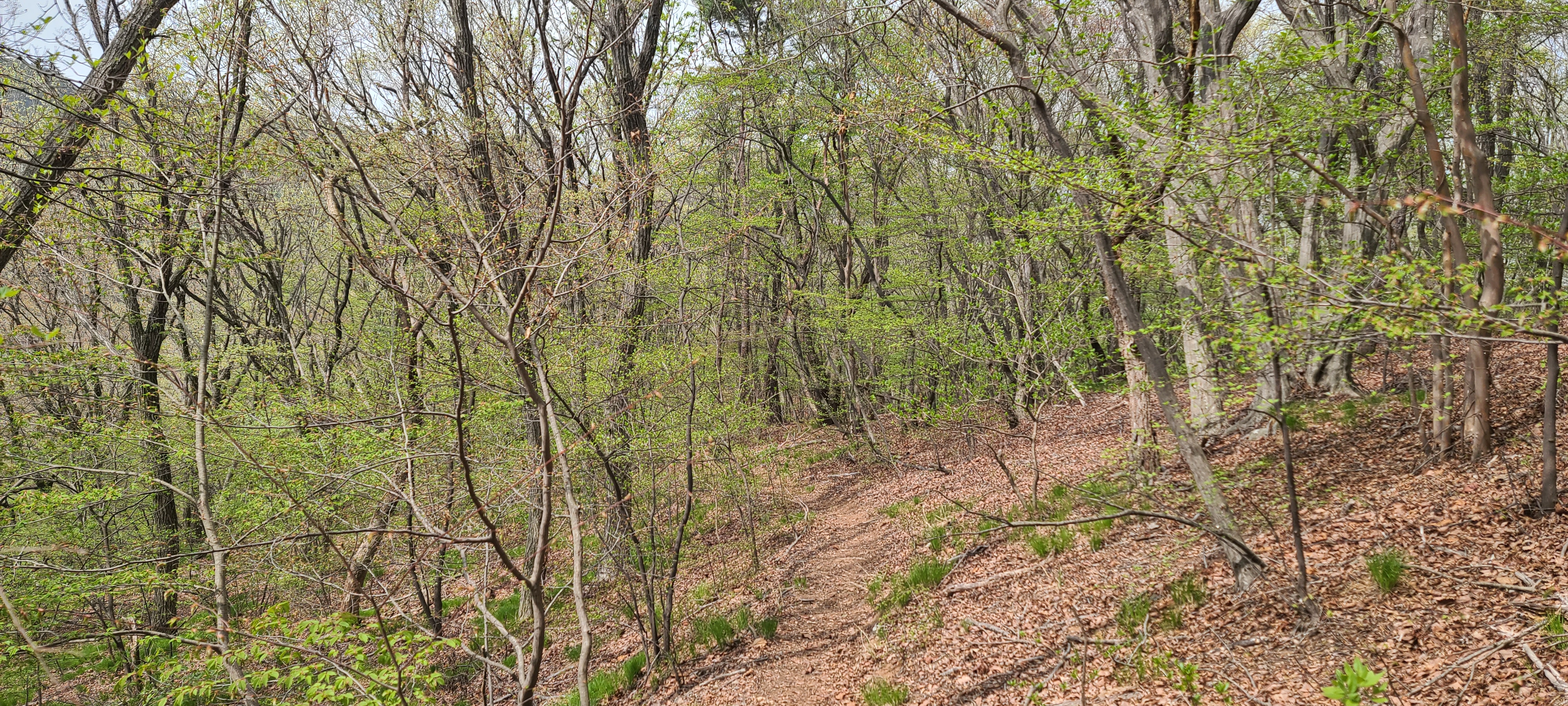 능선 따라 가다가 좌측 골짜기로 내려선다.