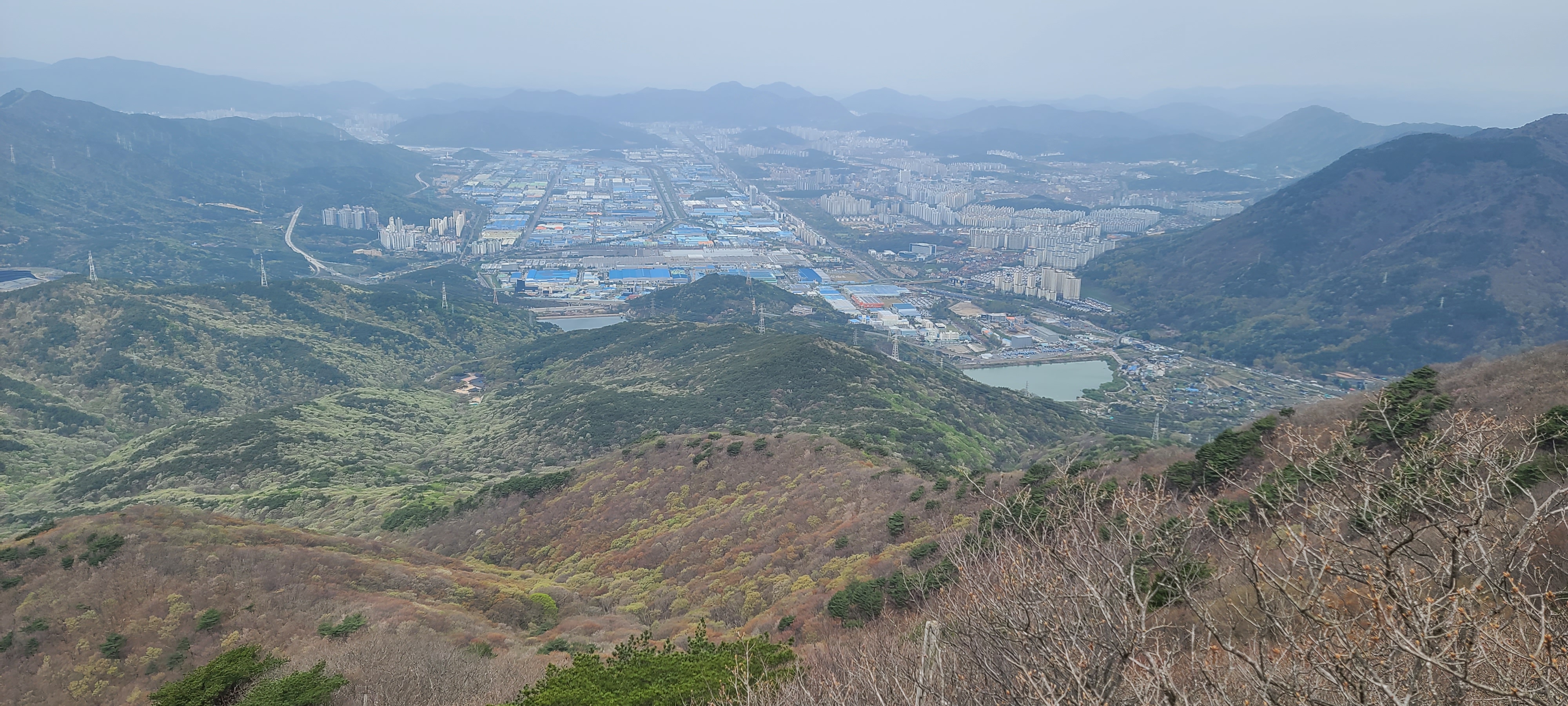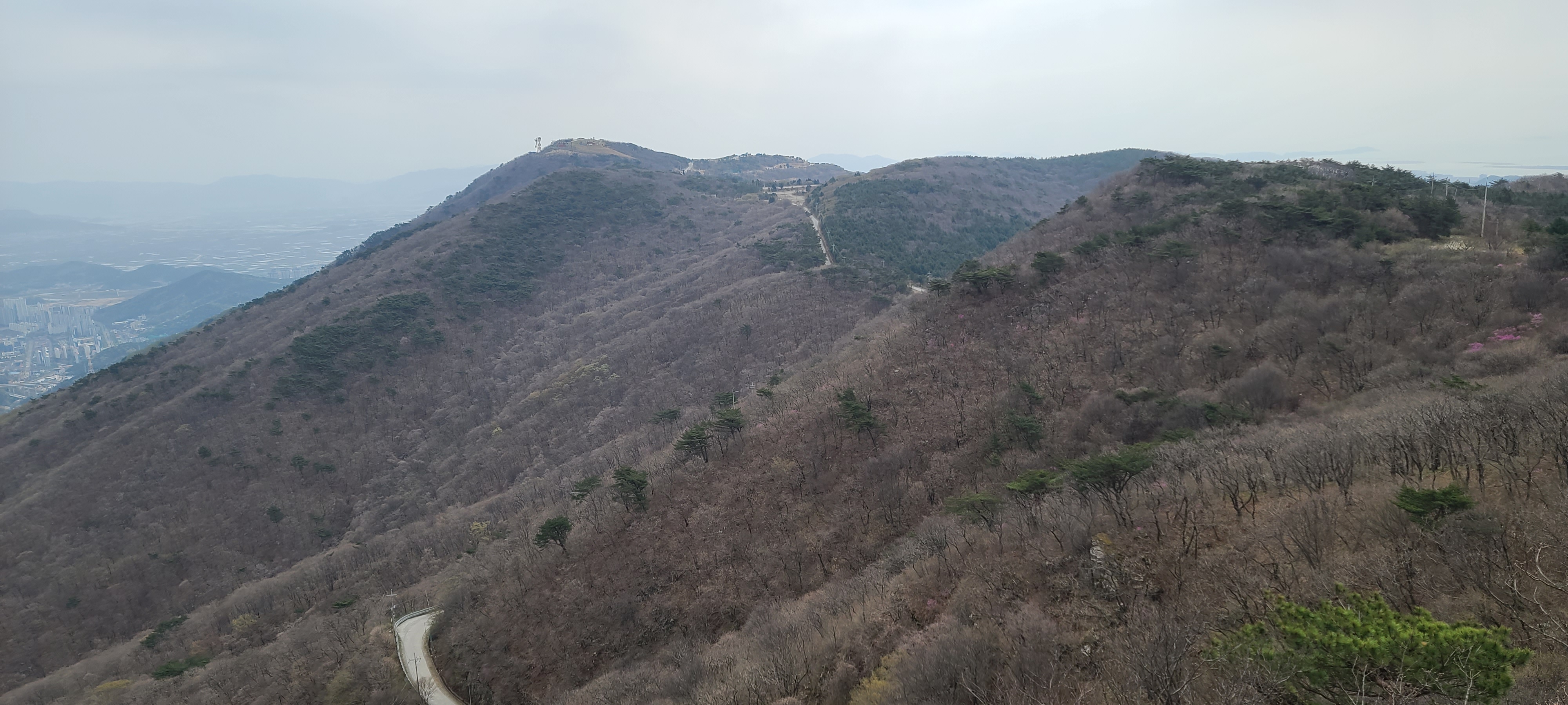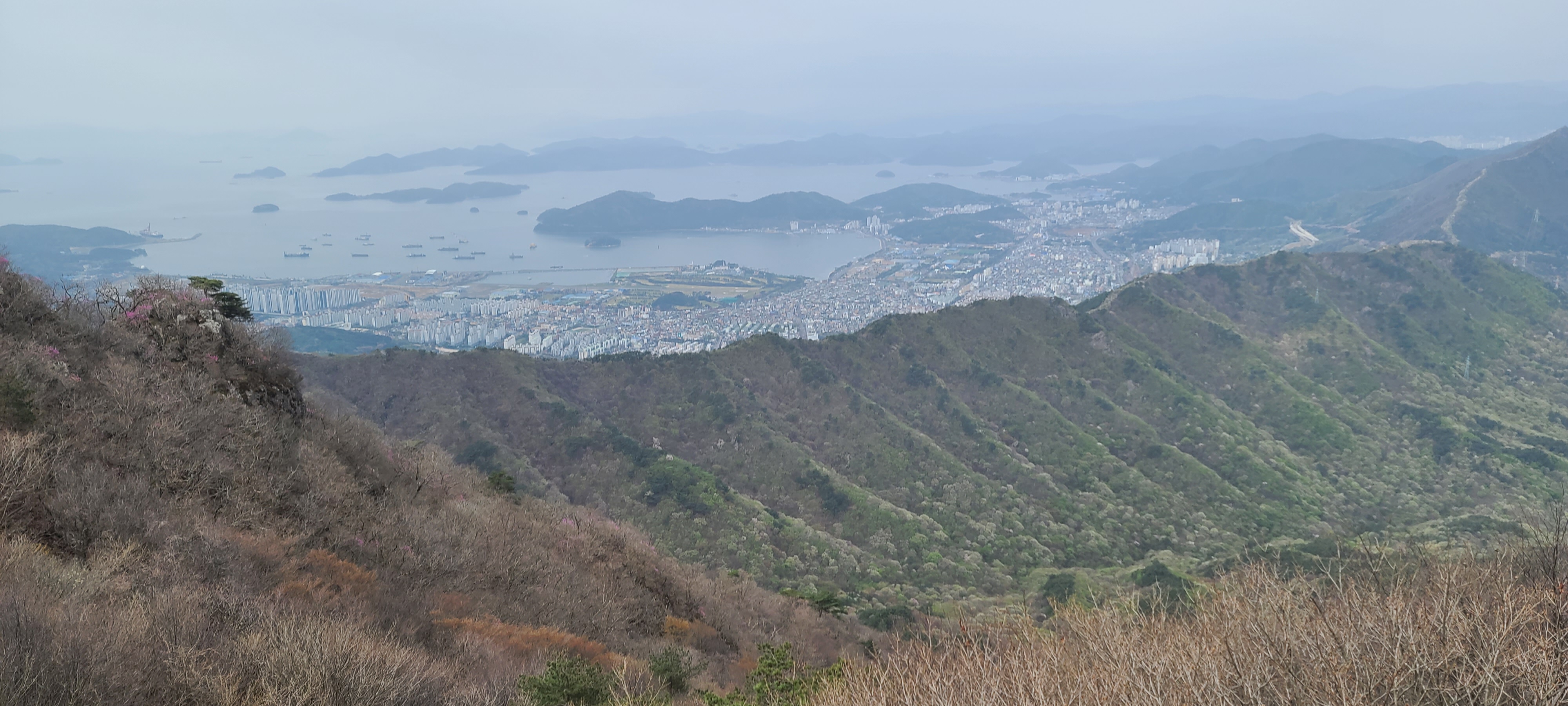 진해 시가지도 보이고 바로 앞엔 장복산 가는 능선도...