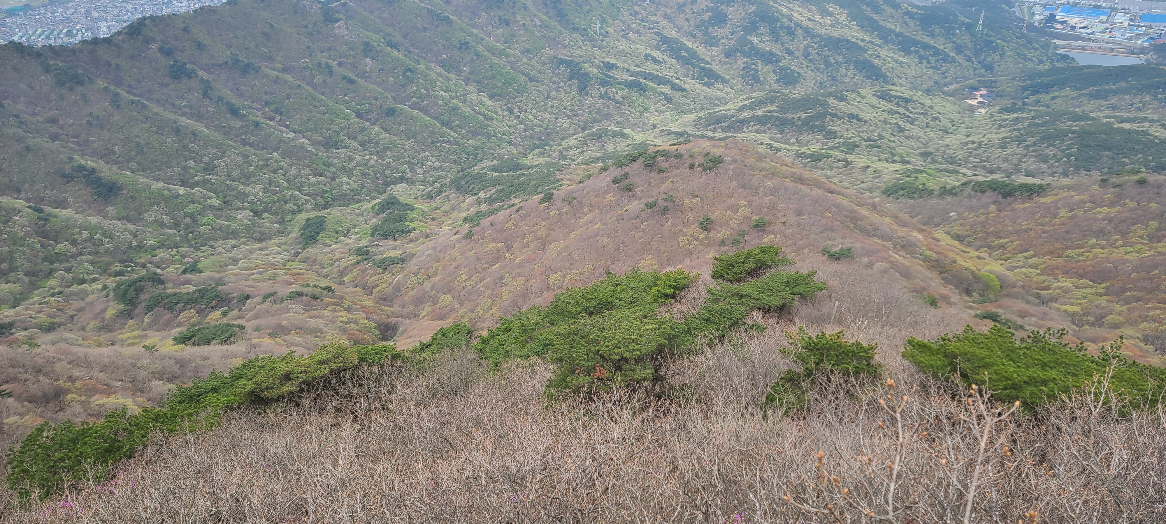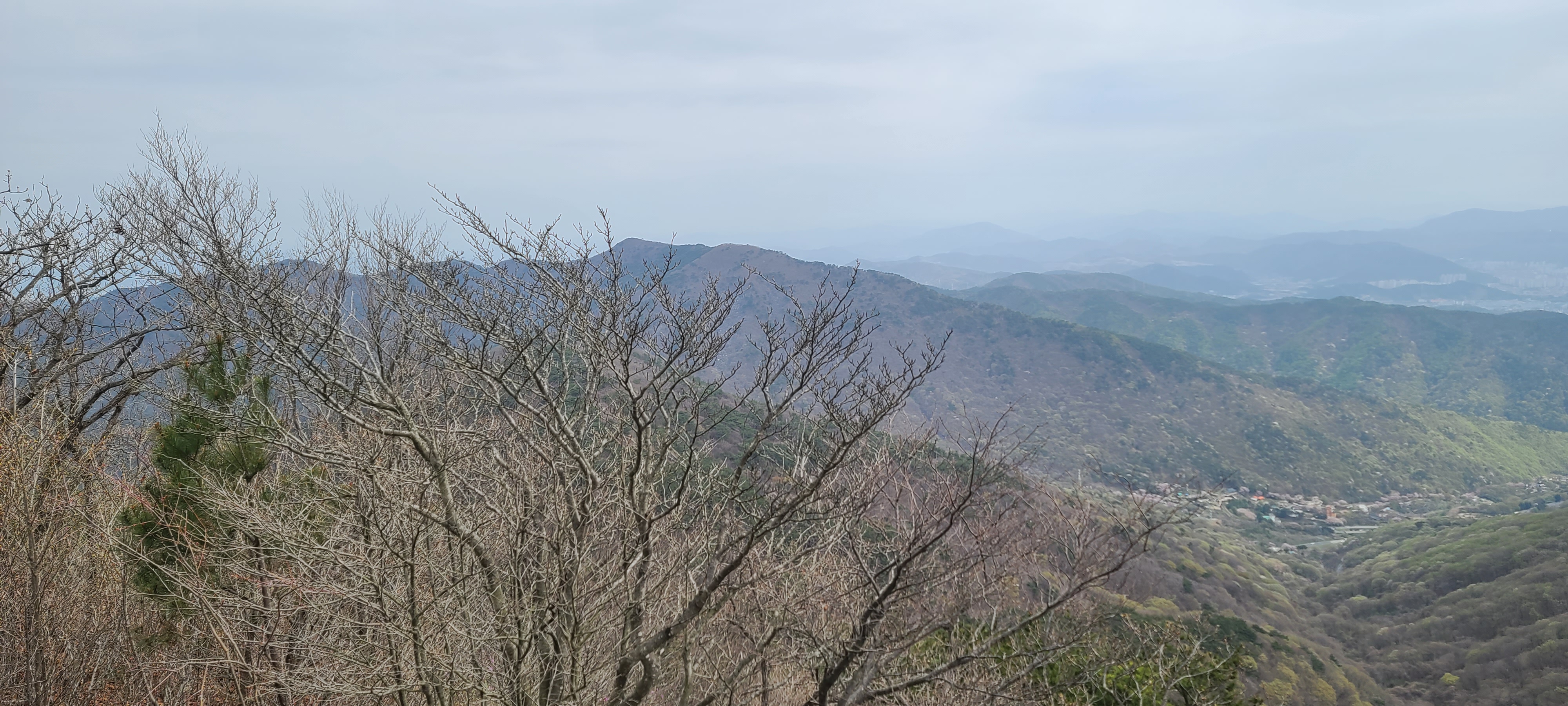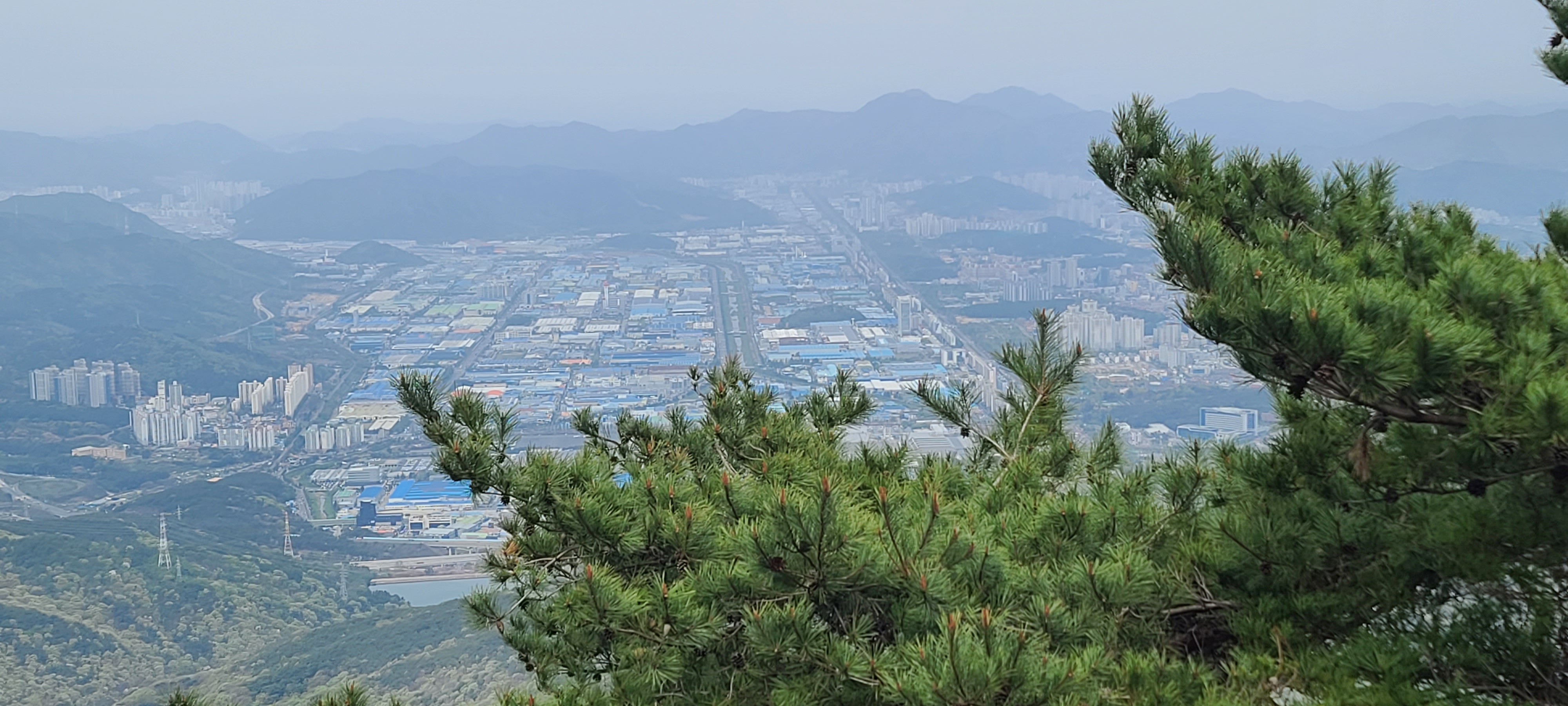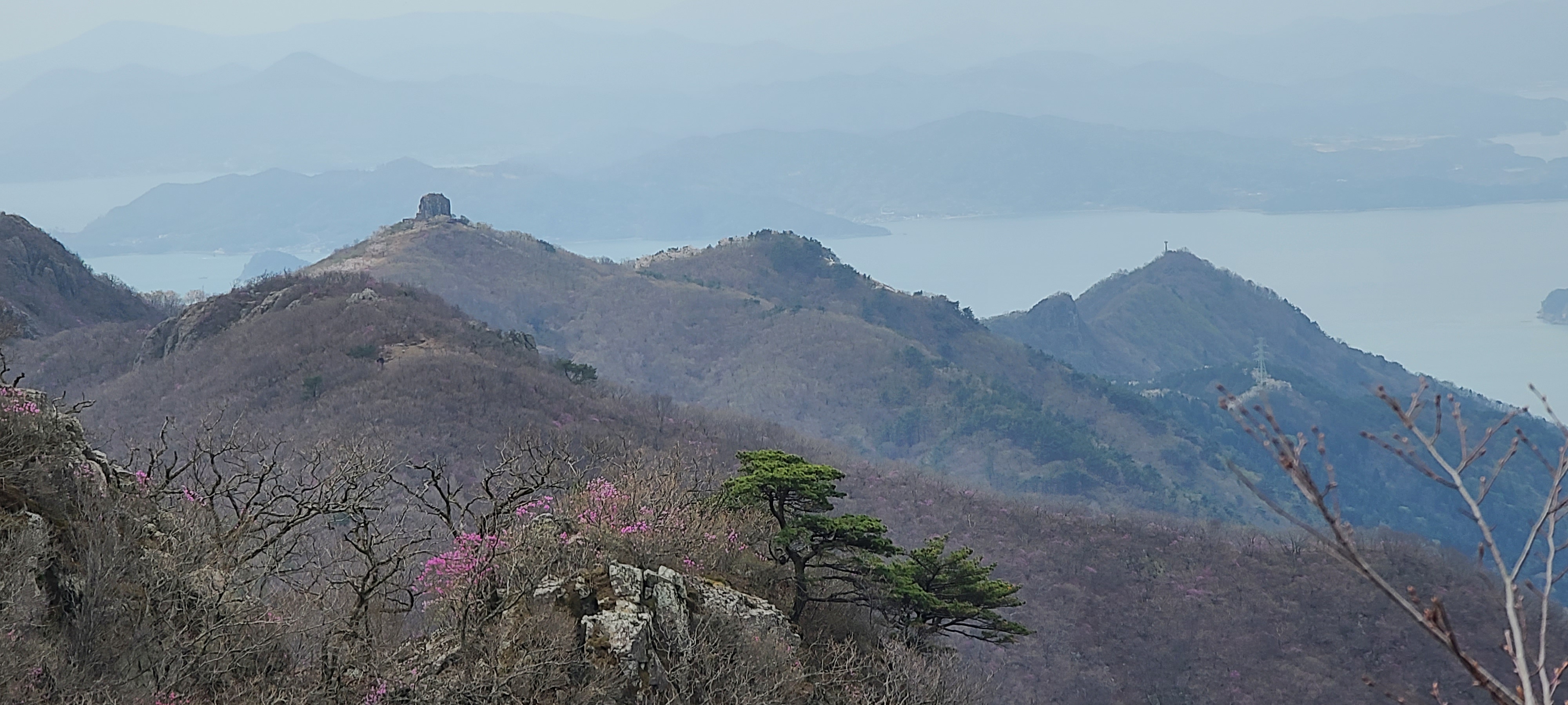 진해 시가지도 보이고 바로 앞엔 장복산 가는 능선도...