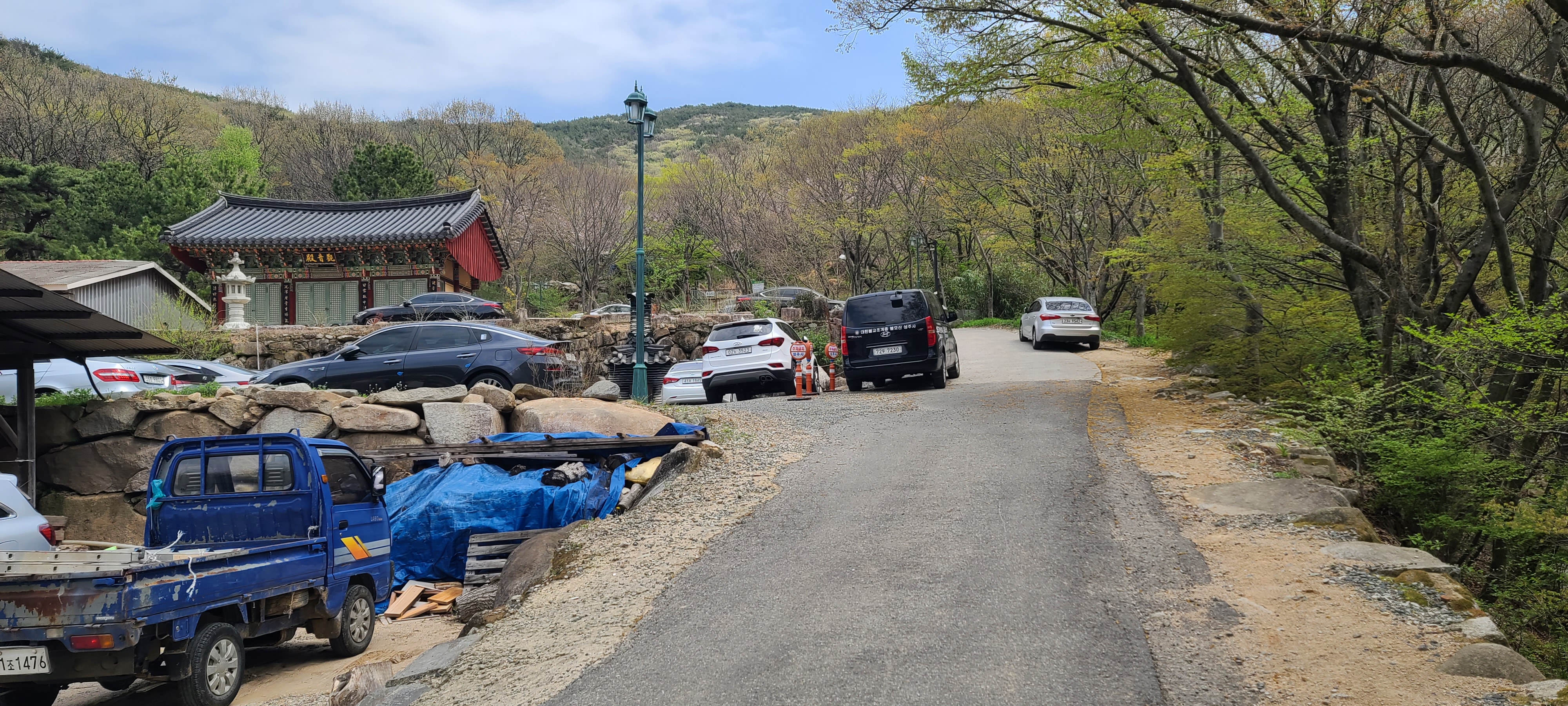 아침 8시 30분 성주사 입구 주차장이 헐겁군. 차 한대가 넓은 마당을 지키고 있군
