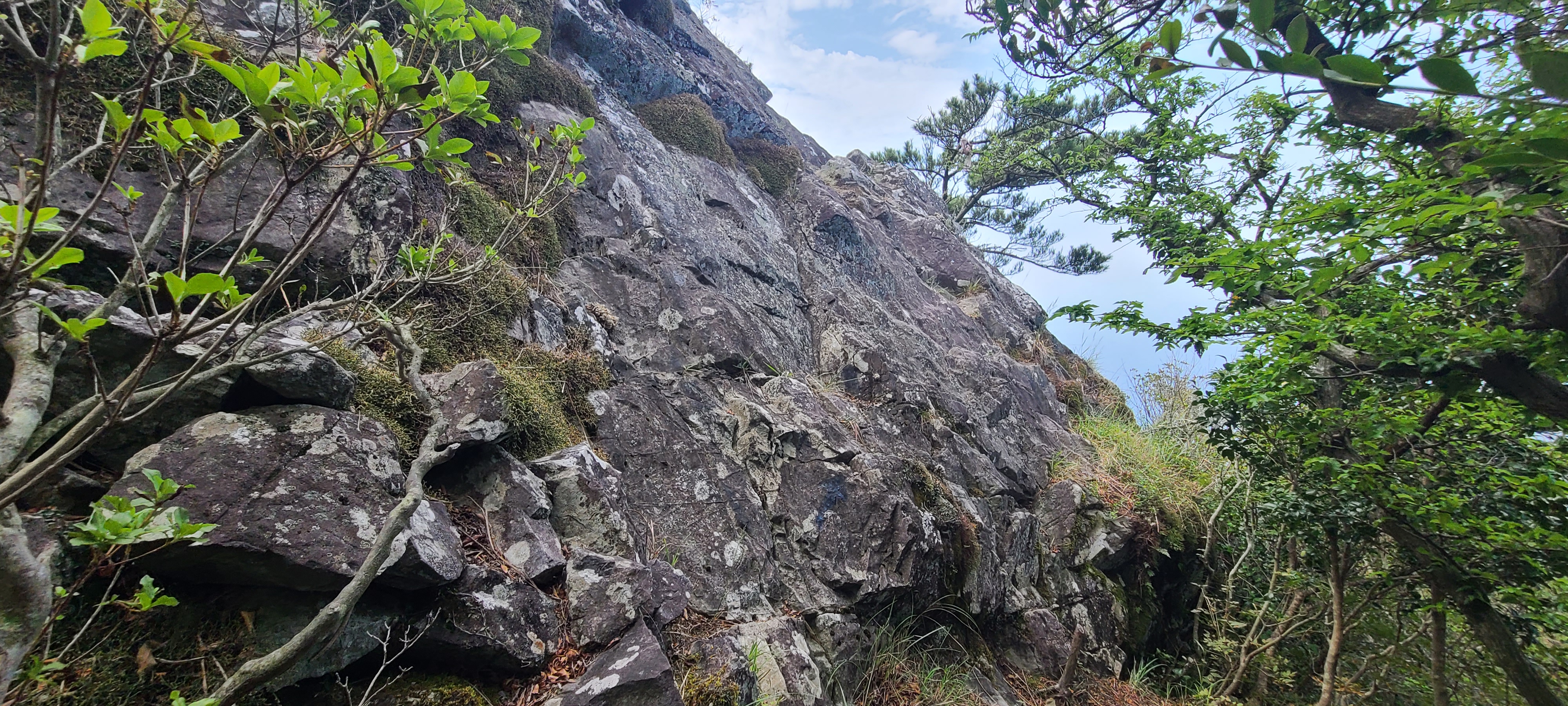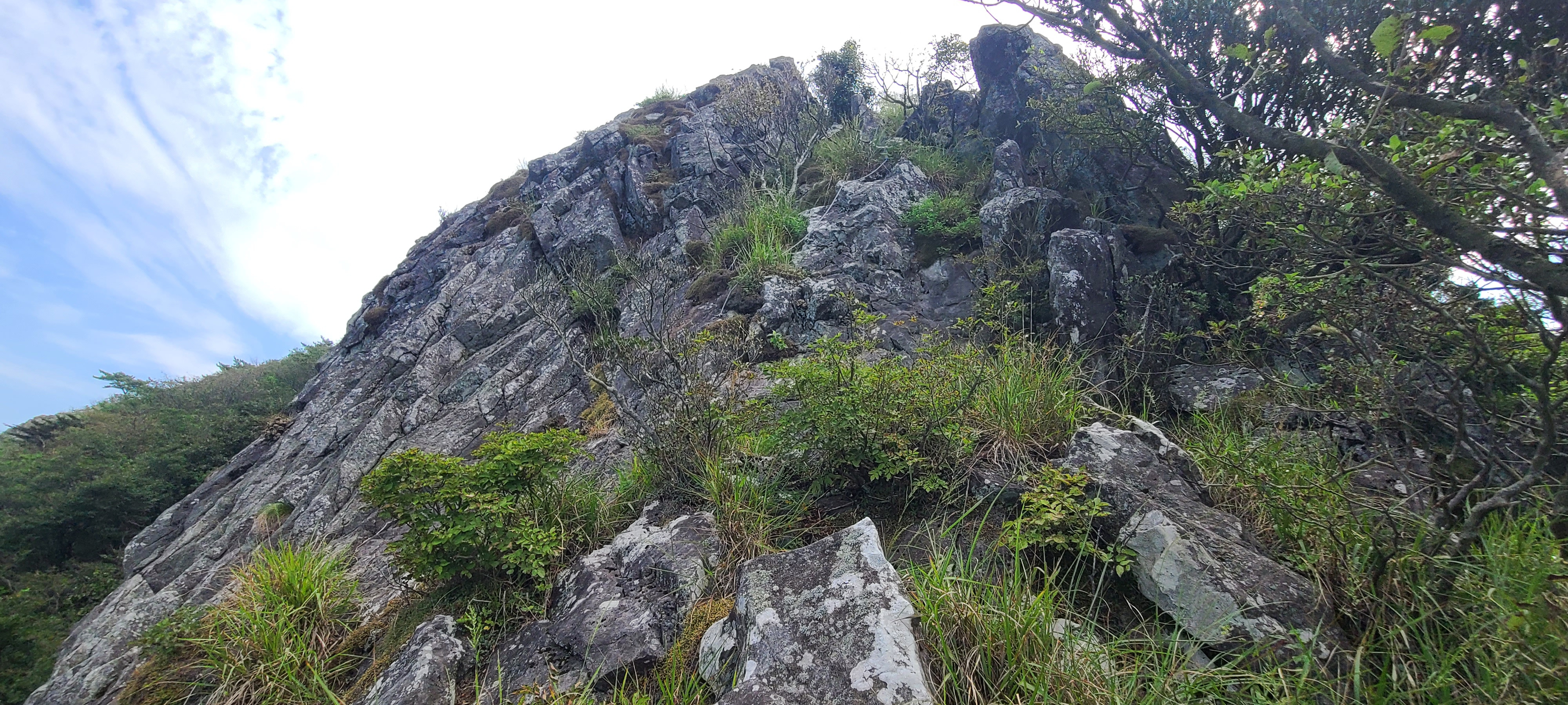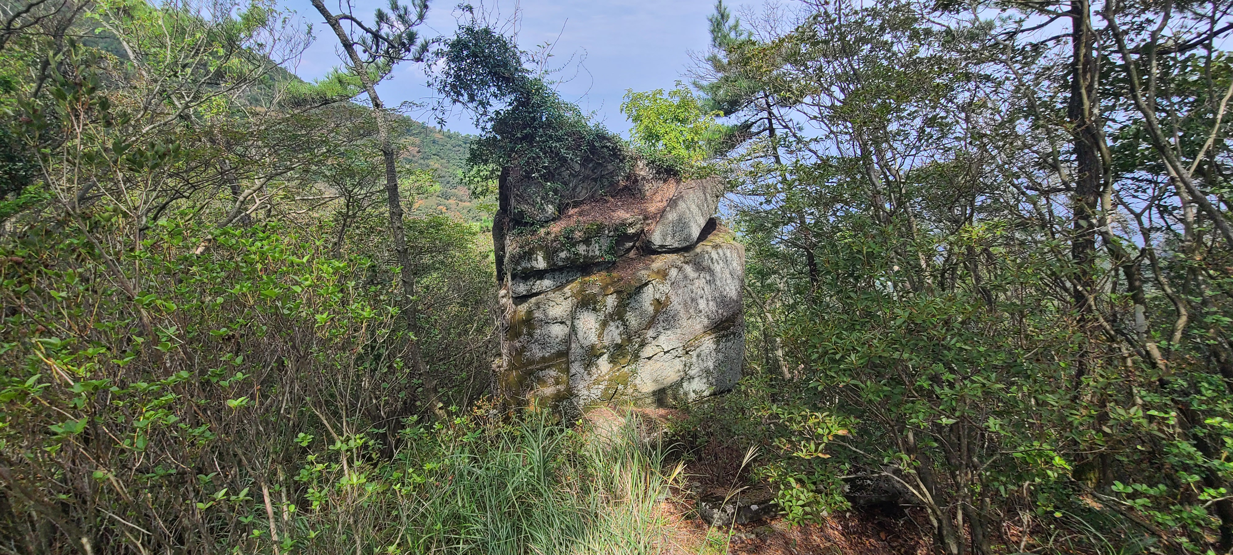 이런 바위가 버티고서있어 능선 밑을 걸을 수 밖에...