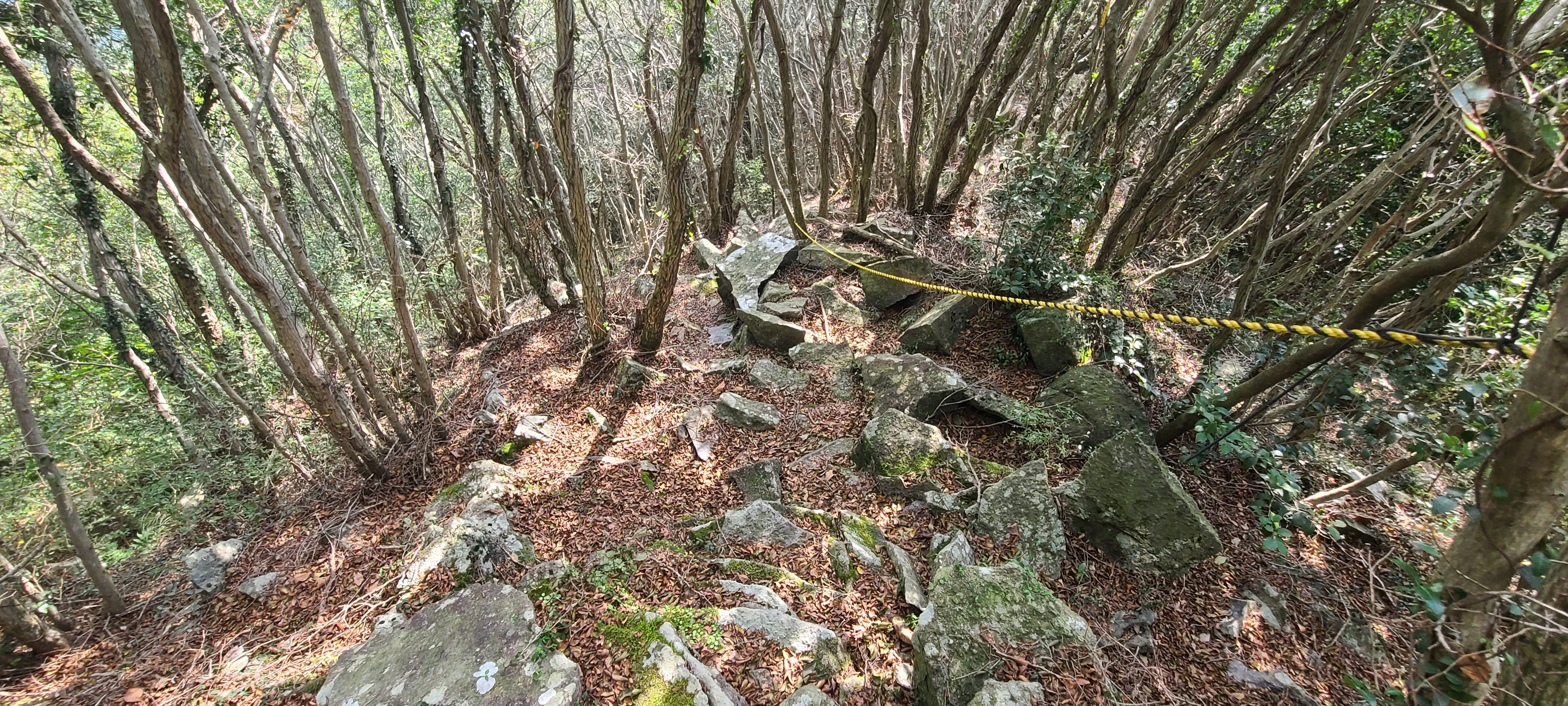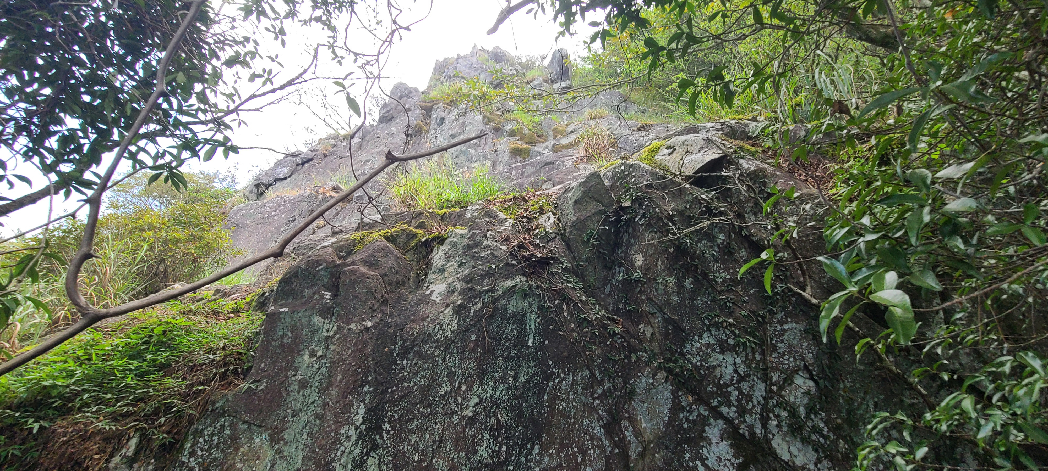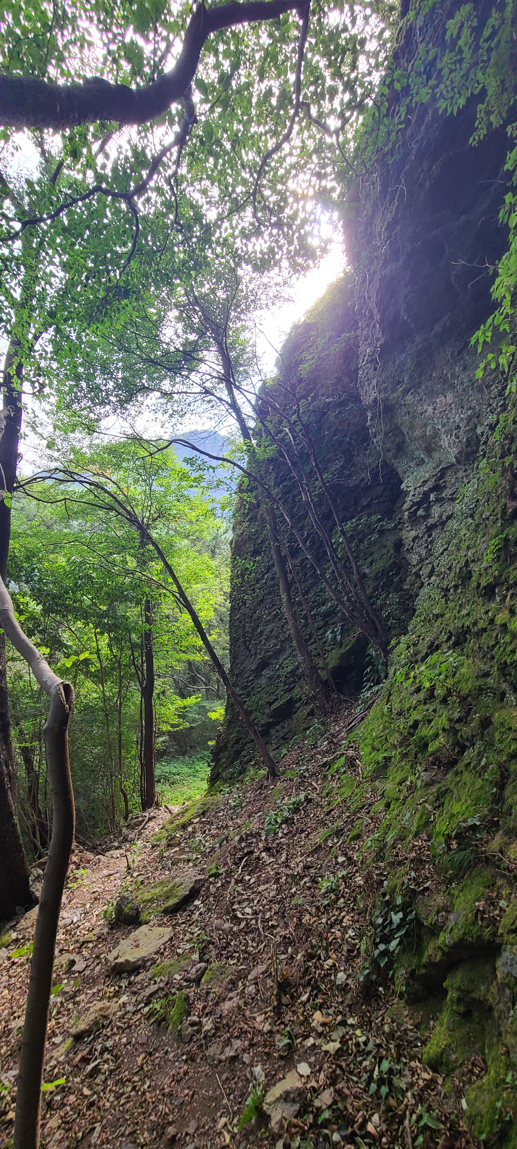 이런 바위가 버티고서있어 능선 밑을 걸을 수 밖에...