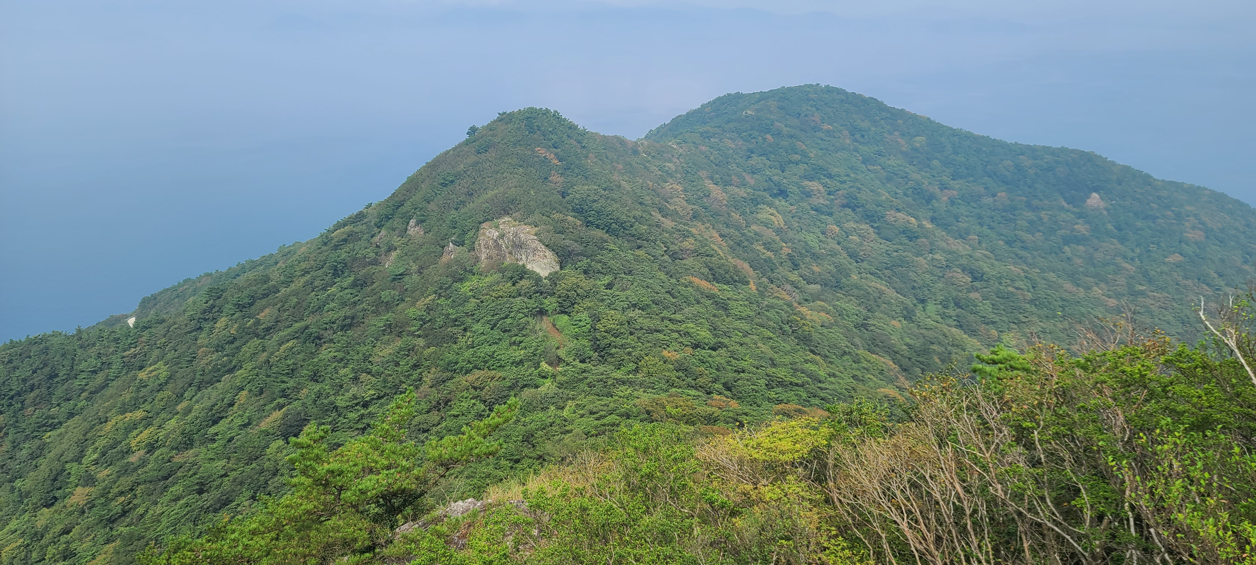 드디어 두미도 천황봉이 보인다. 생각보다 높고 참신해보인다. 욕지도 천왕봉보다 높다.