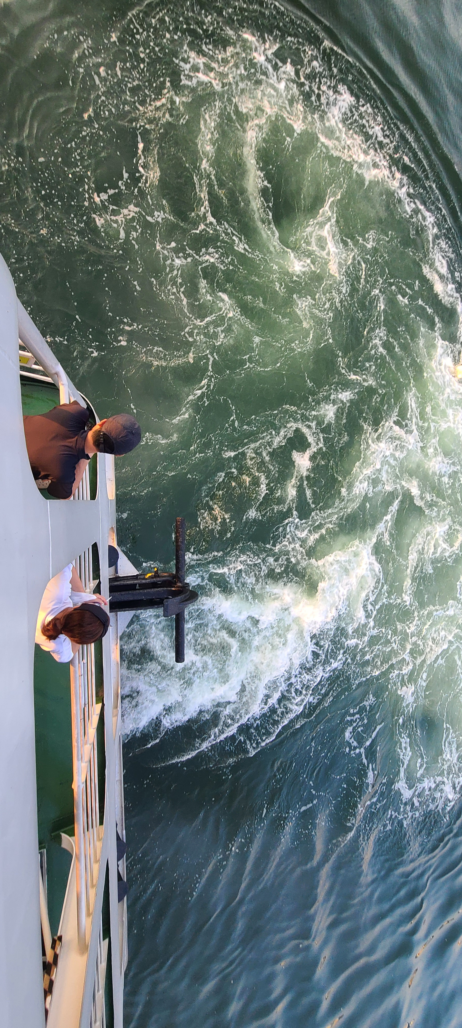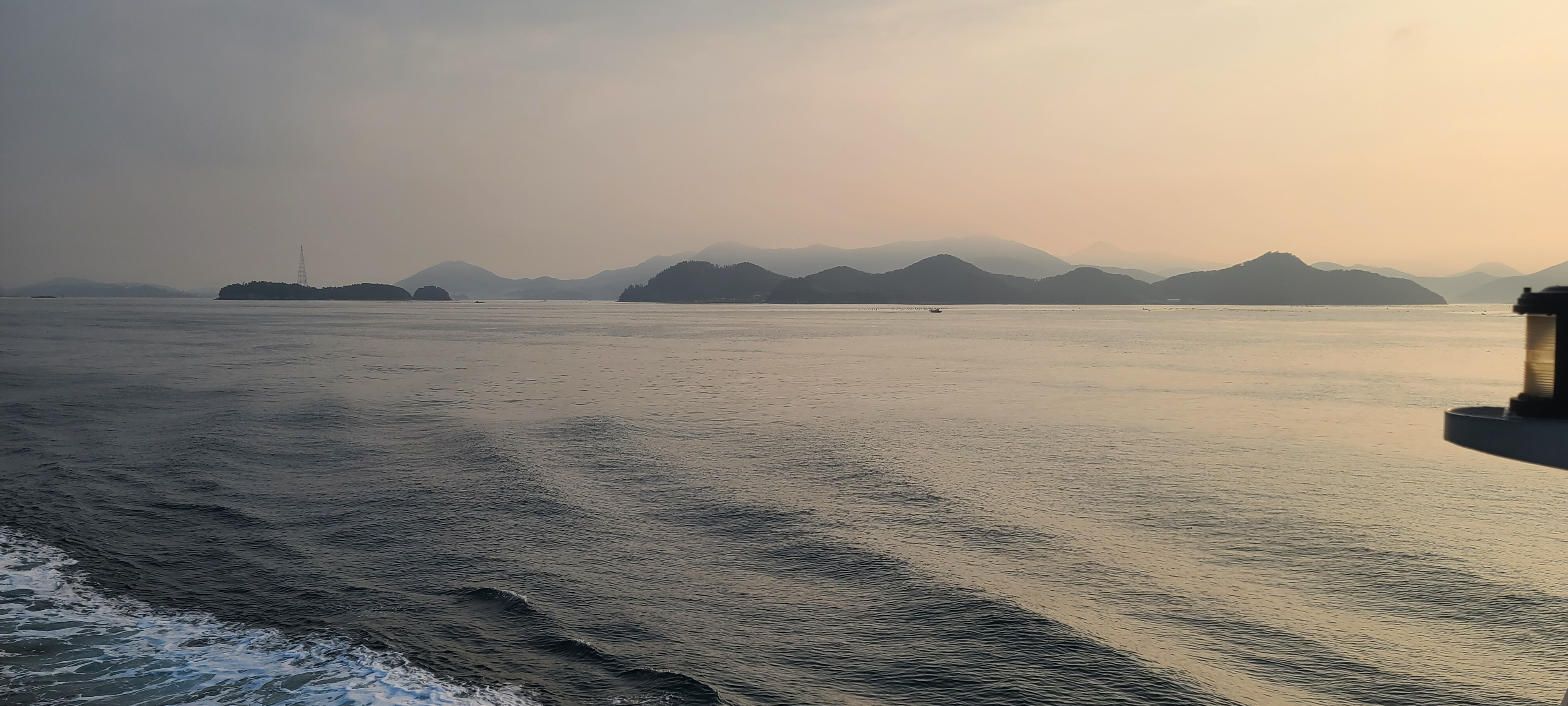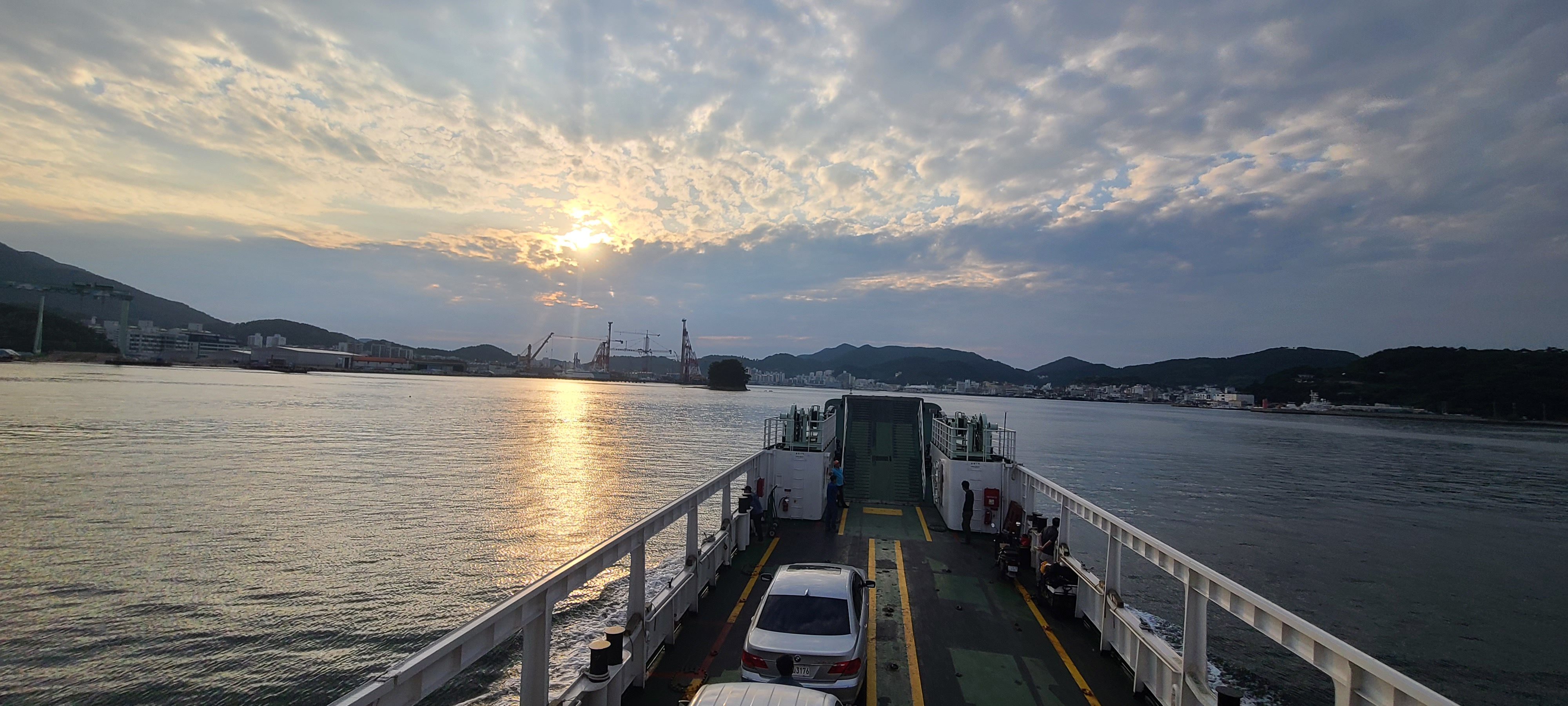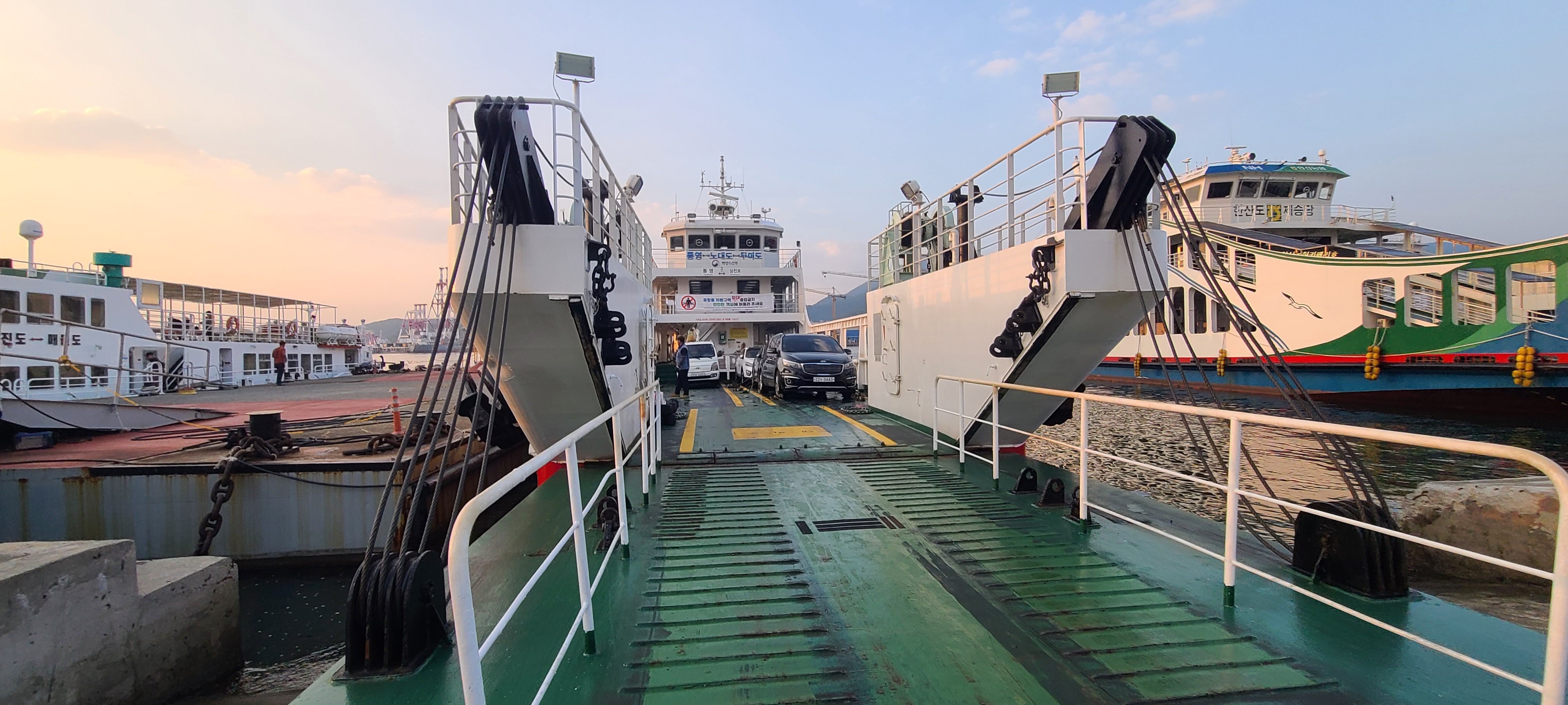 이 배를 타고 갑판에 올라 1시간 20분 정도 바다구경을 하면 두미도 북구선착장에 도착한다.