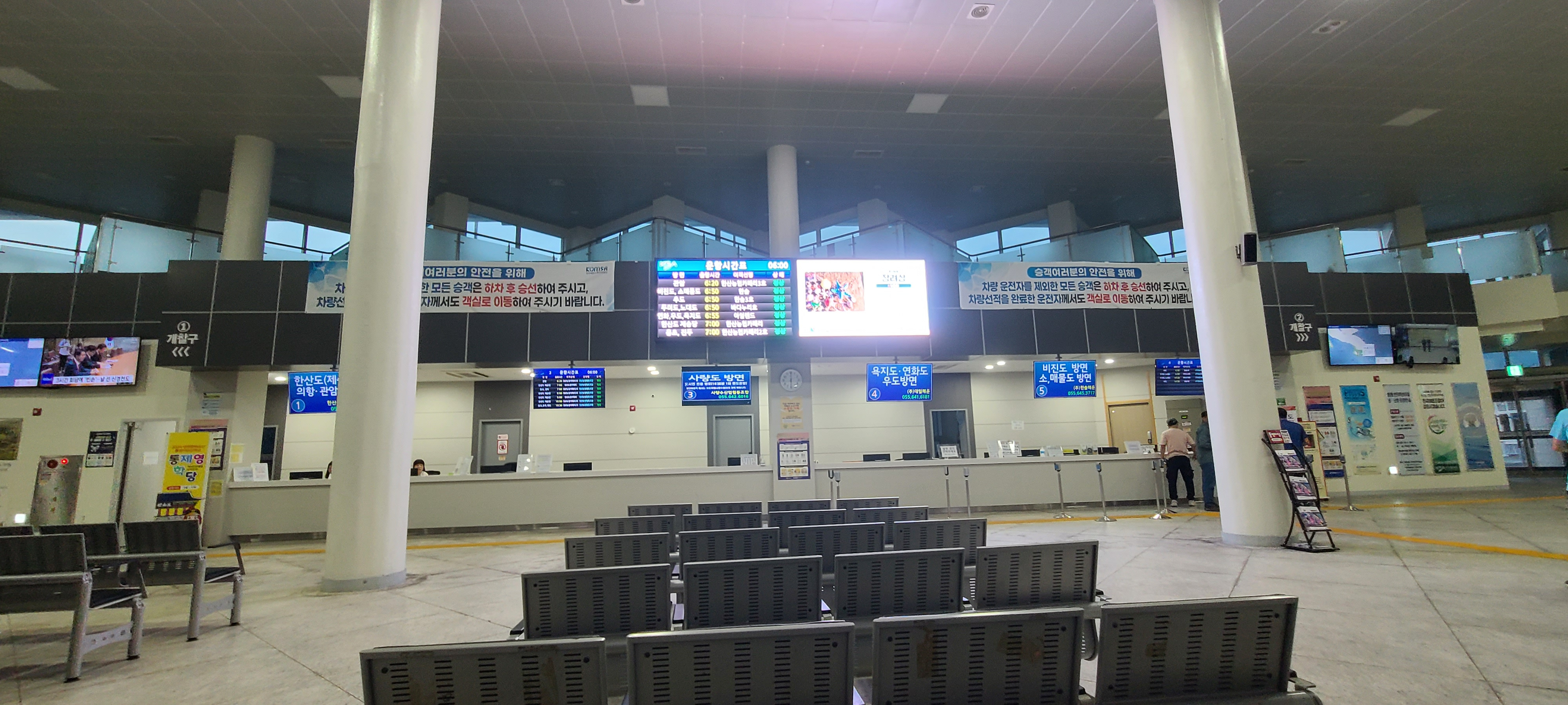10년전에도 두미도 가는 배는 아침 6시 51분에 있었기에 새벽에 일어나는 일이 힘들어 천황봉 산행을 접어두고 있었다. 10년 지나면 좋은 시간대에 배가 출항하기를 기다렸으나 요지부동이다. 새벽 3시에 일어나 짐을 챙겨 통영여객선터미널에 도착한다. 나오는 배는 오후 4시 37분(월목)있고 요금은 편도 7천원이 안된다.