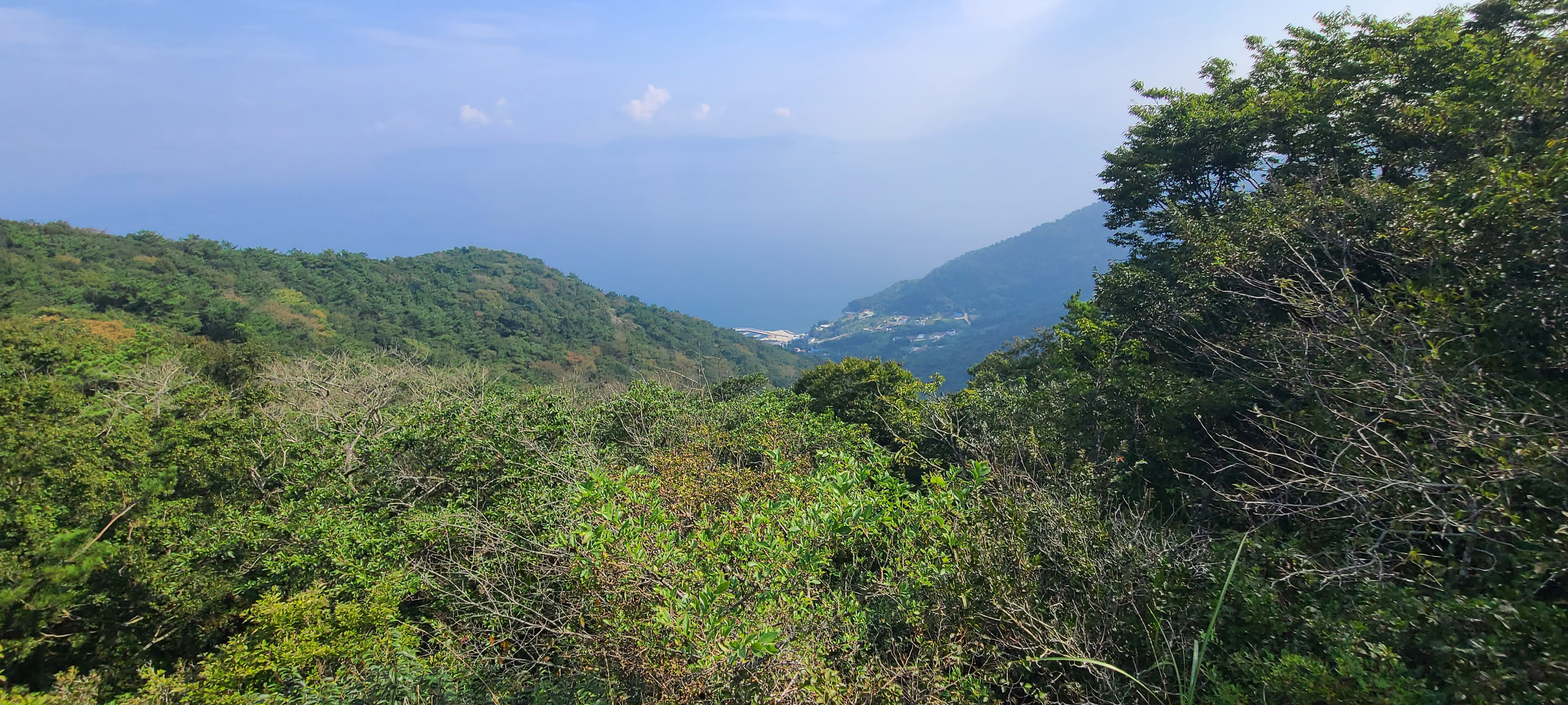 전망대에서 본 모습. 좌측 밑은 남부선착장이고 악어 몸집도 보인다. 저 방향으로 하산한다. 시야가 좀 더 좋았으면...