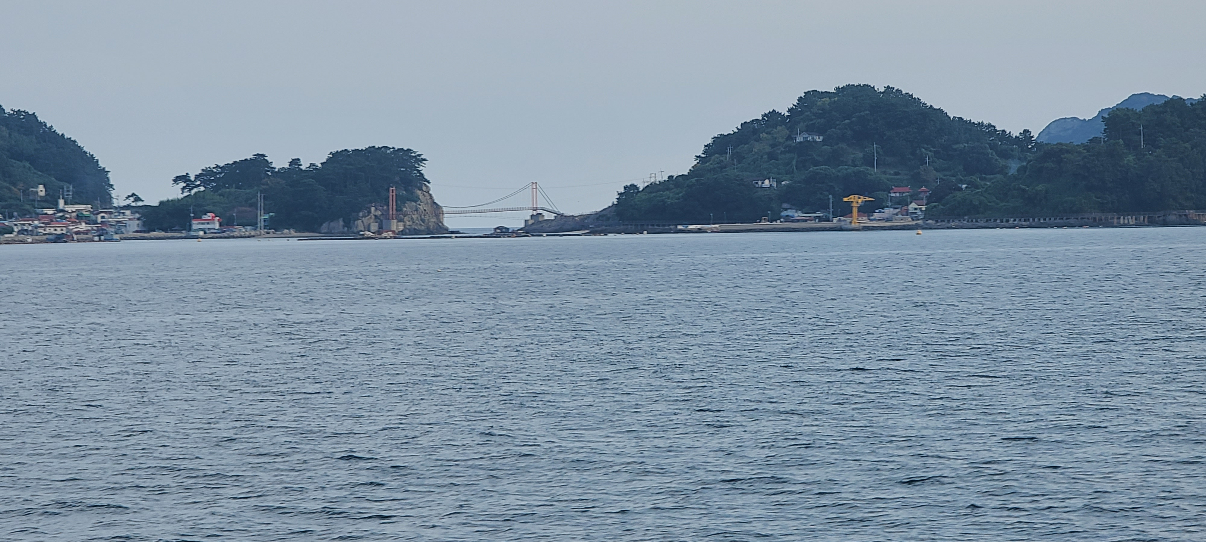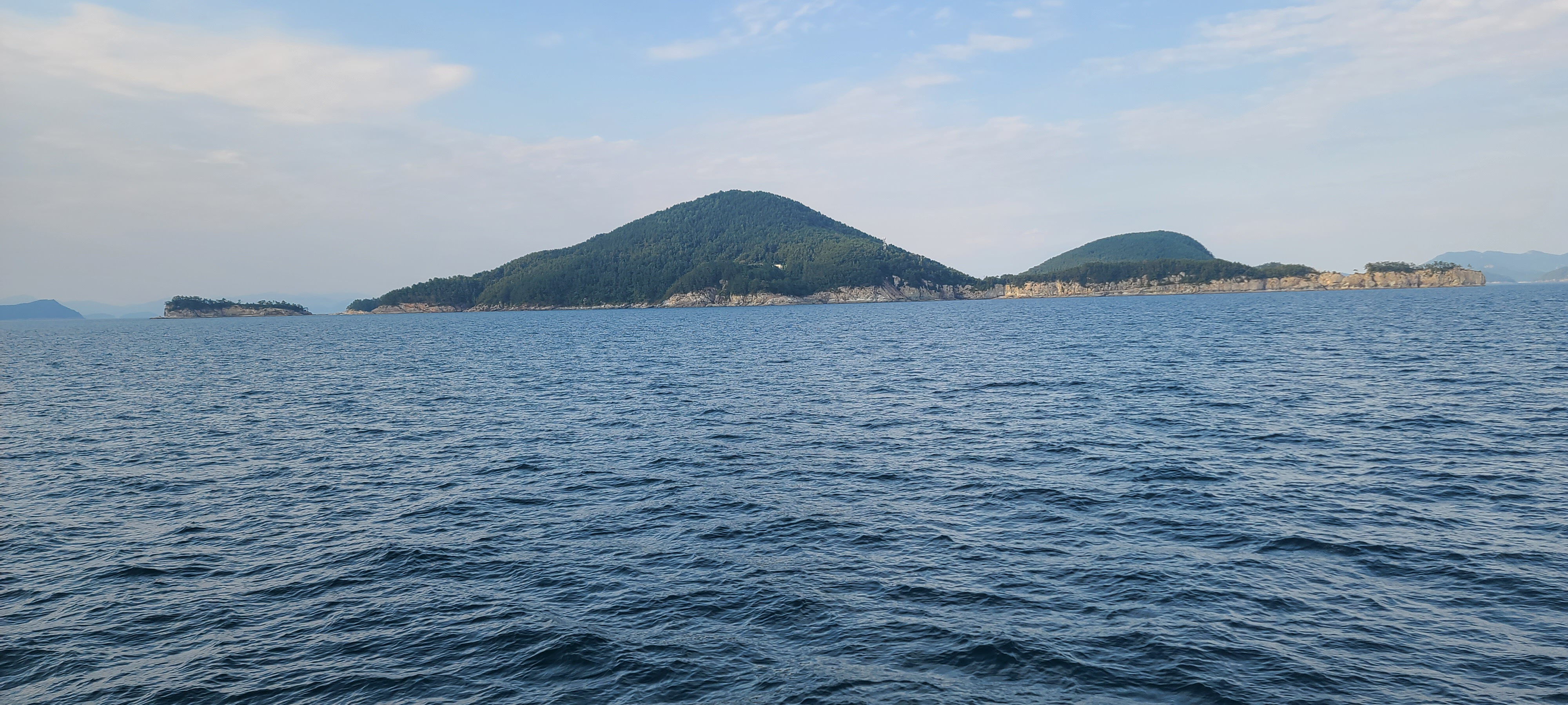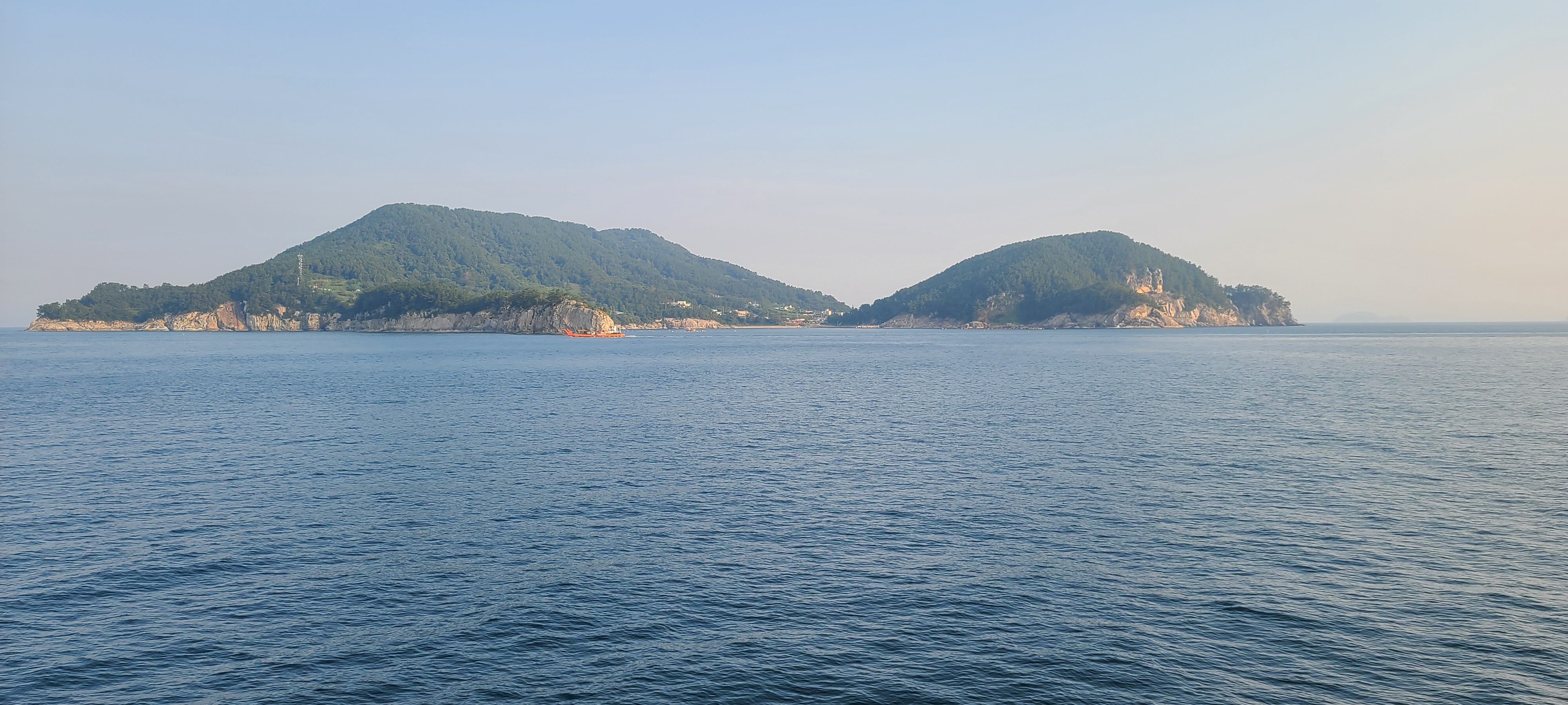 뒤로 욕지도가 희미하다. 앞은 노대도이군