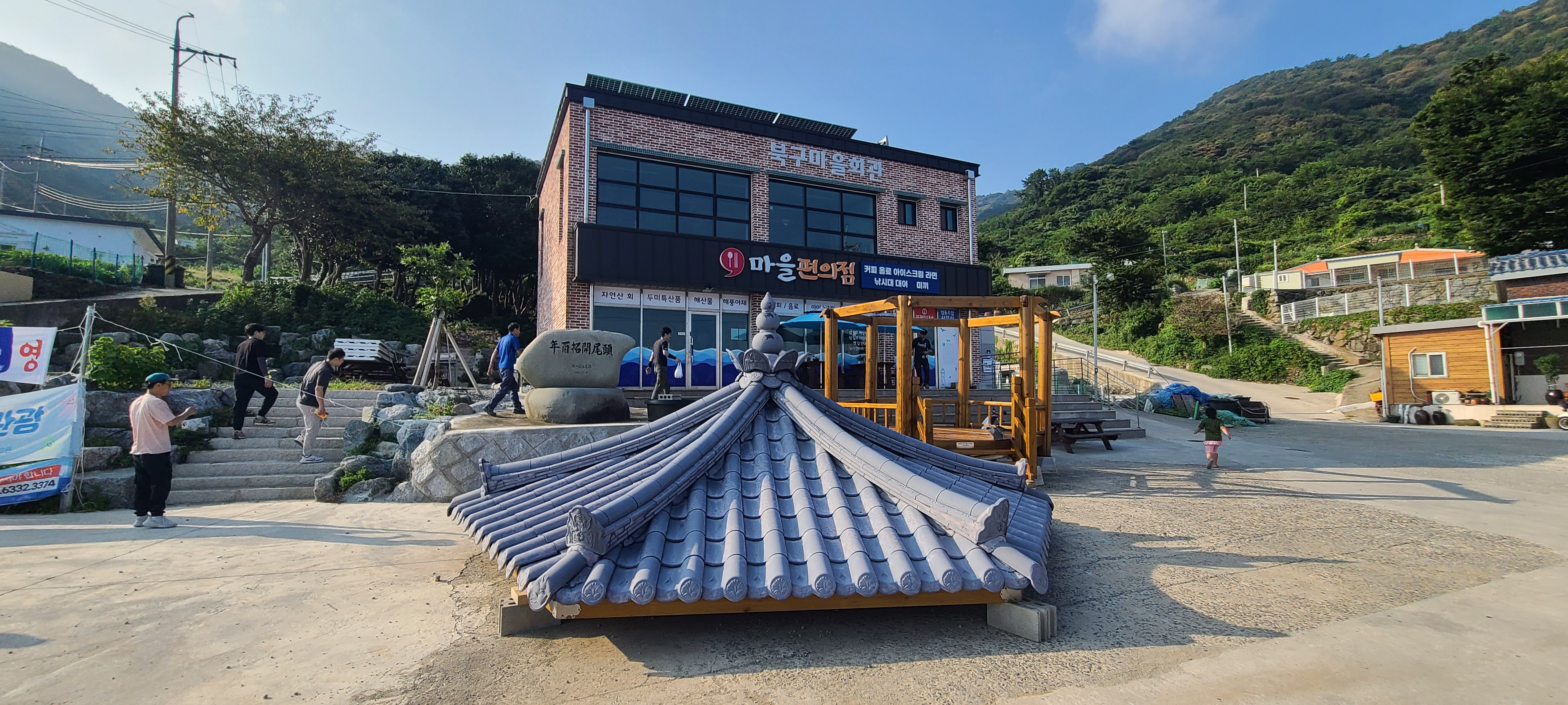 마을편의점 앞 팔각지붕이 특이하군. 오후 3시간 이상을 저기 편의점에서 진을 칠 줄이야!. 우측으로 간다.
