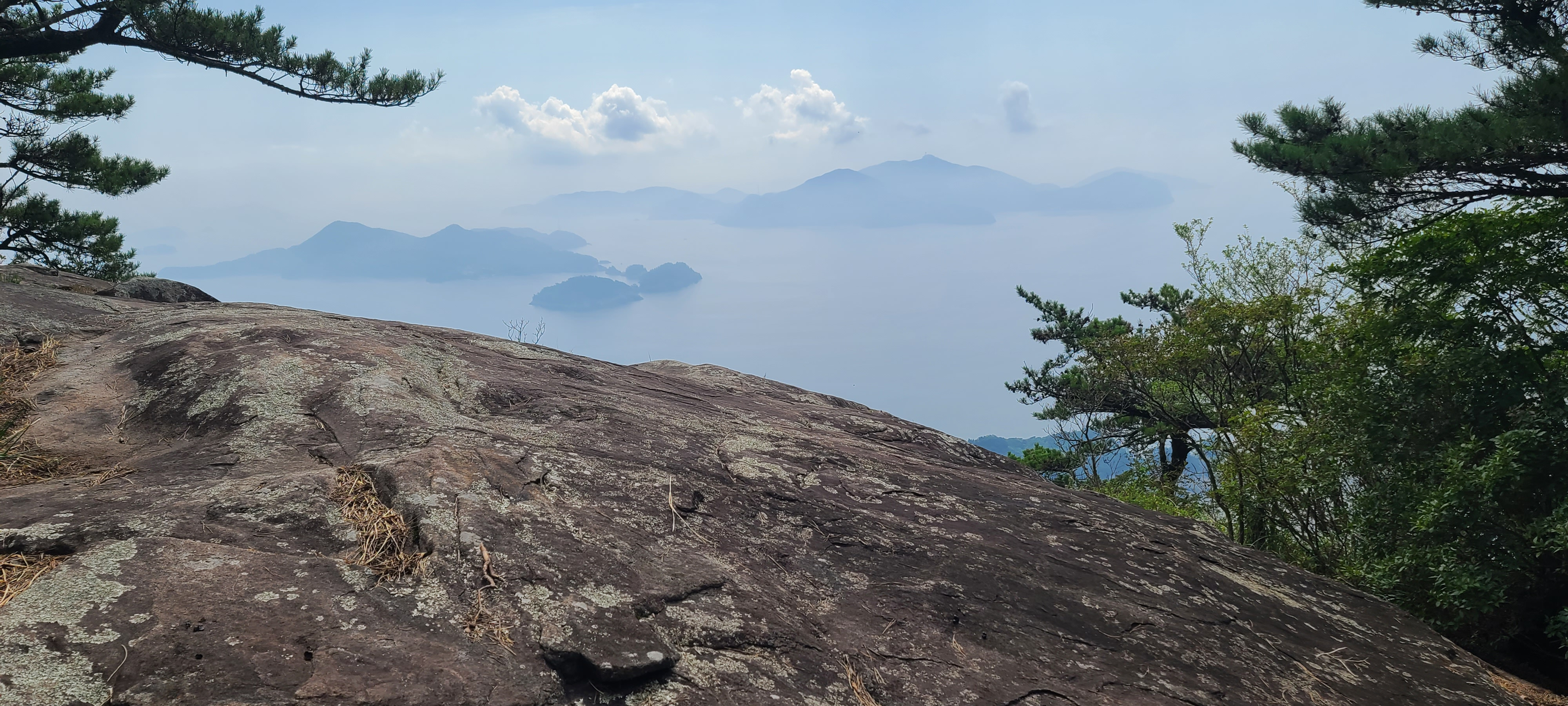 좌측 봉우리는 한산도 망산이고 우측으로 거제 가라산과 거제망산도 보인다.
