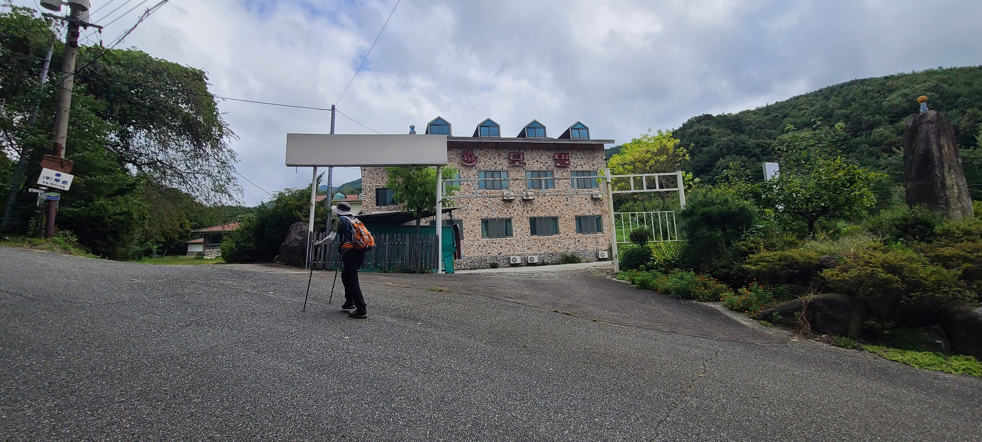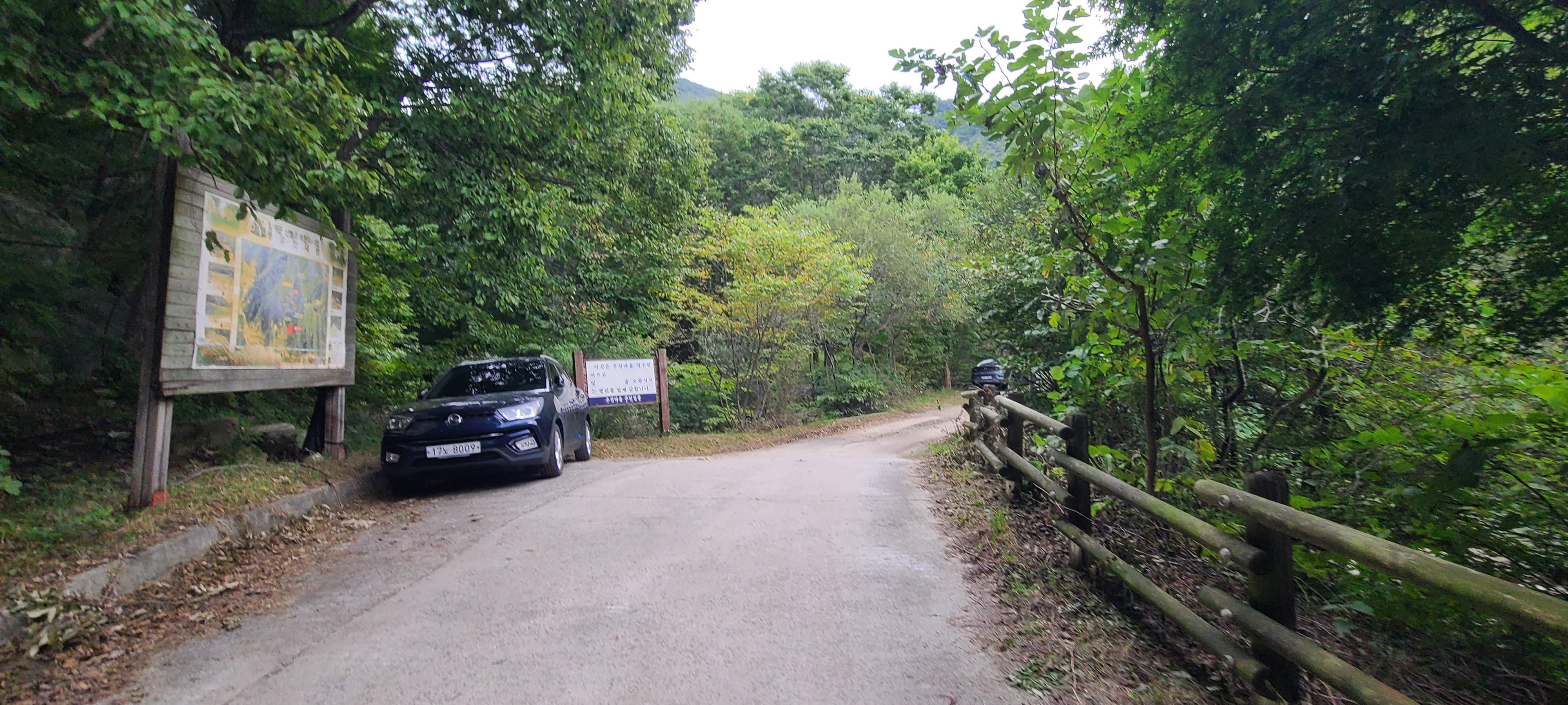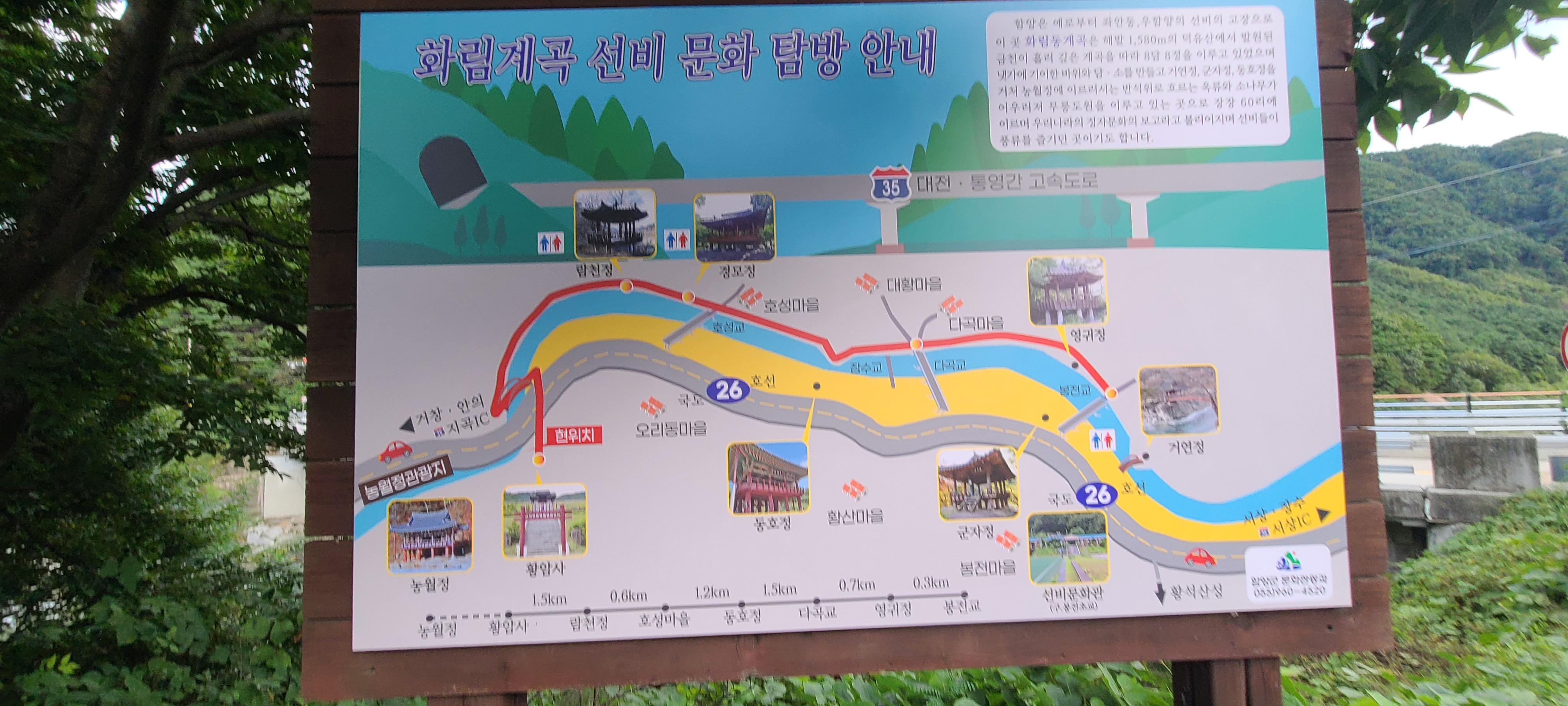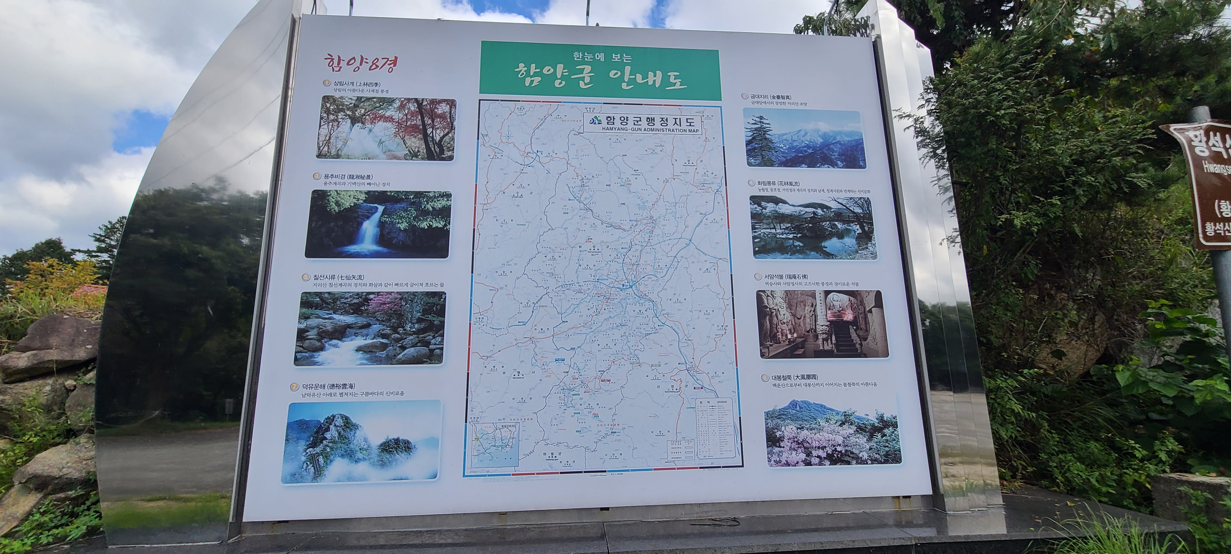 공터에 세워놓은 안내도를 보고 여기 황암사에서 거연정휴게소까지 찻길로는 4.3k. 버스는 하루 두 차례 다니는데 마냥 기다릴 수 없어 걷기로 하였다.