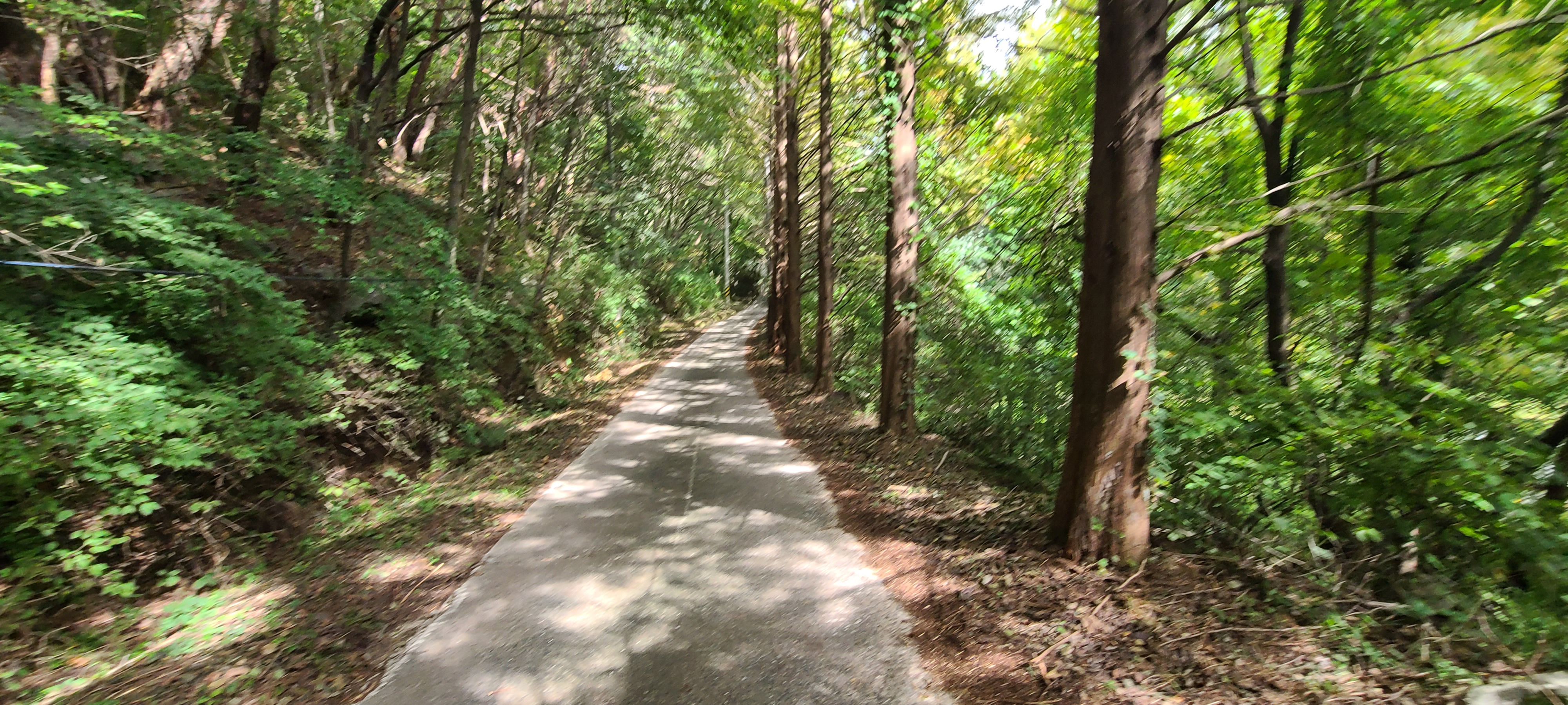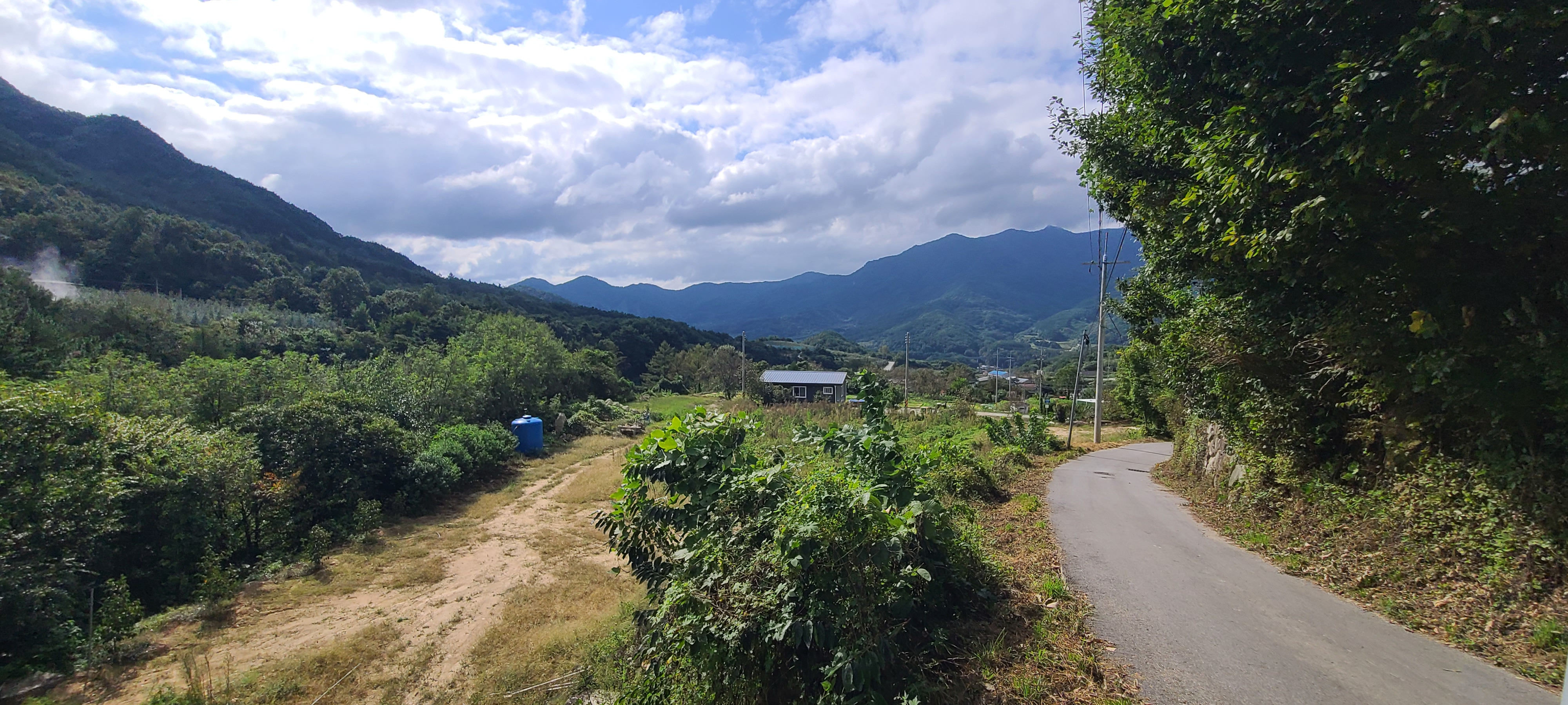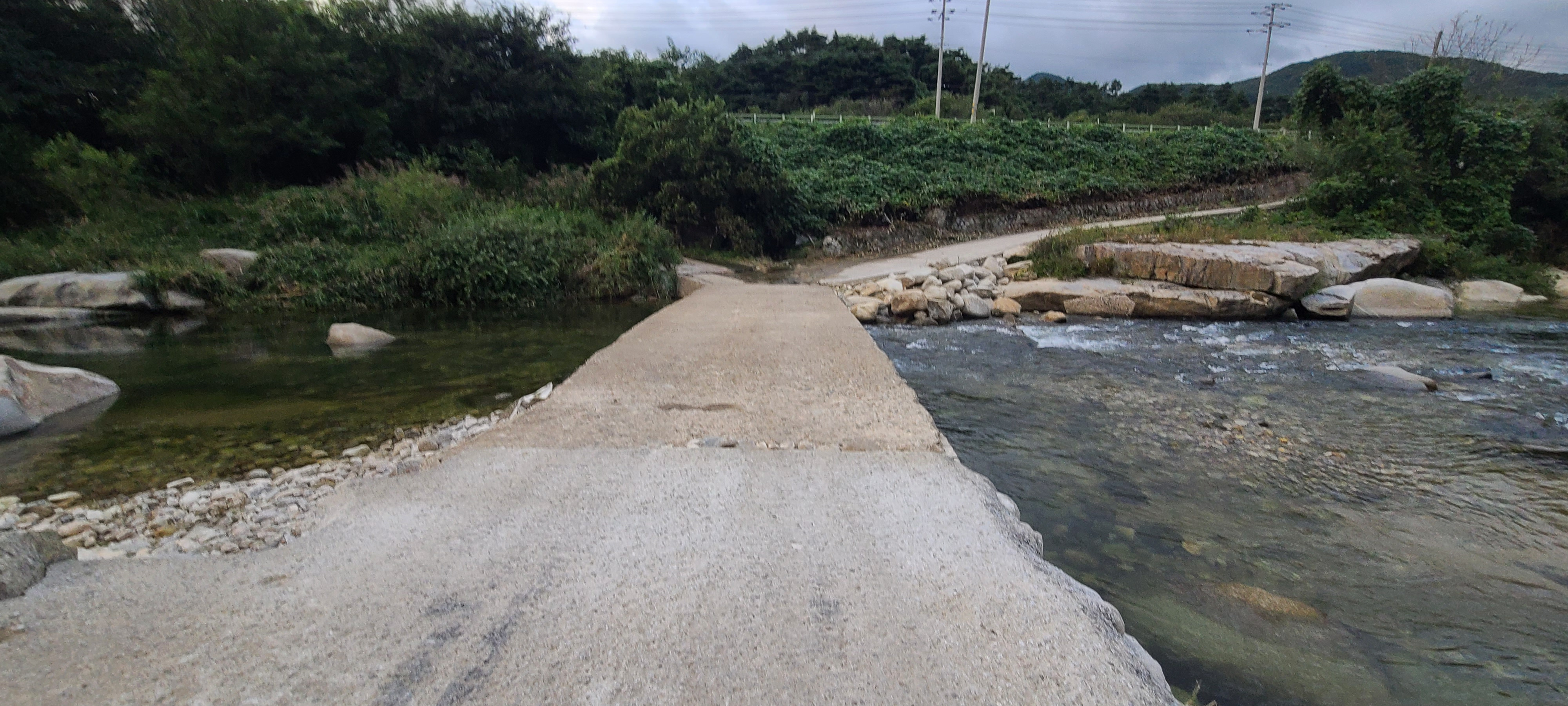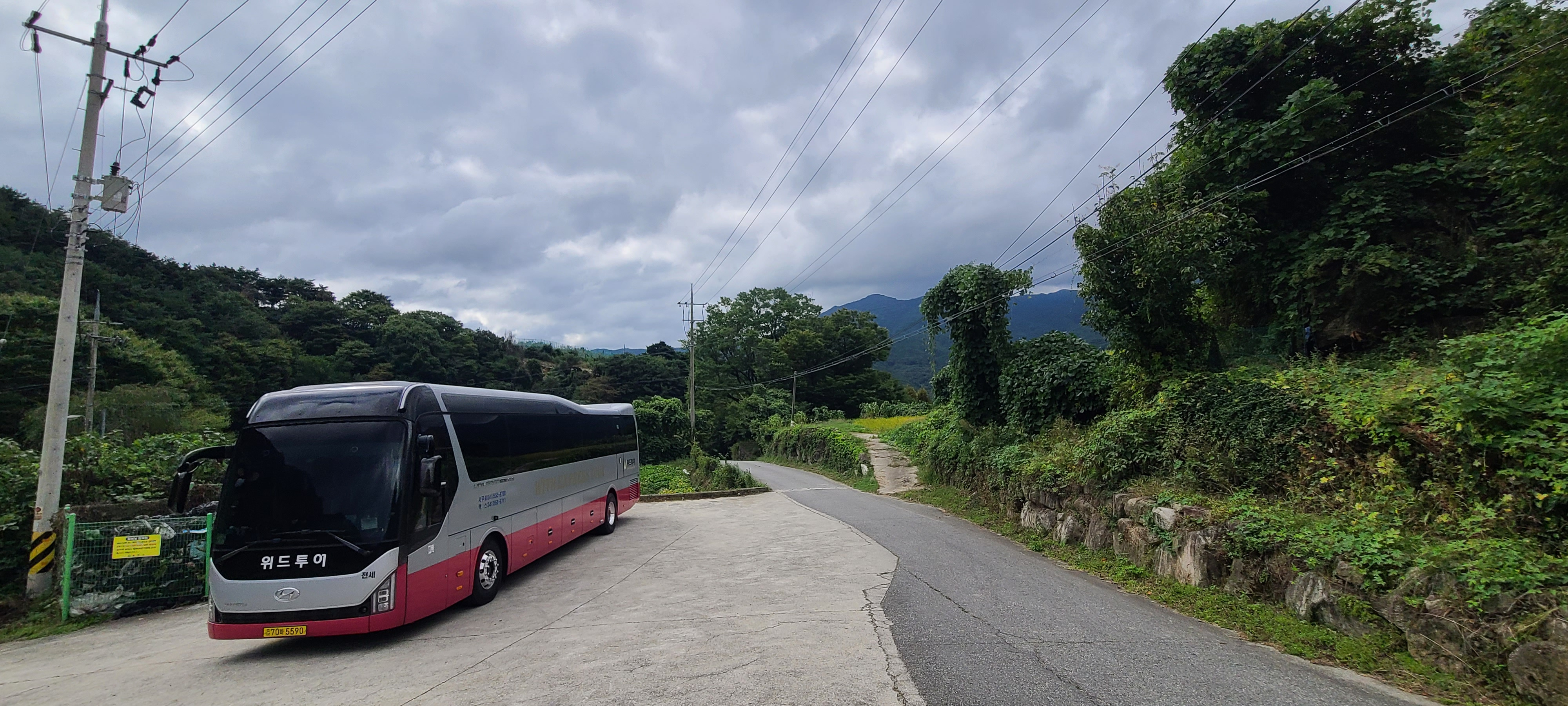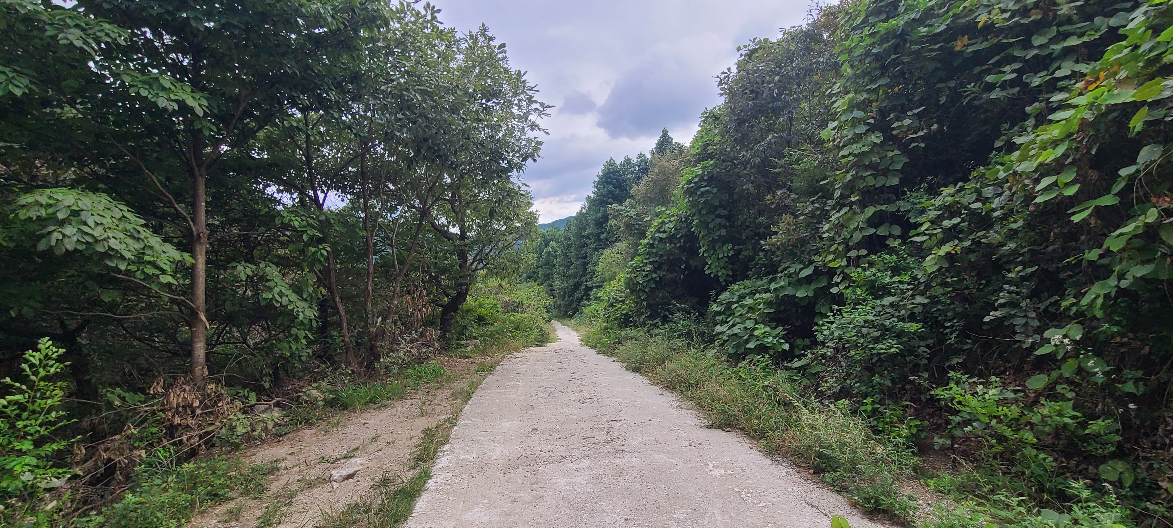 공터에 세워놓은 안내도를 보고 여기 황암사에서 거연정휴게소까지 찻길로는 4.3k. 버스는 하루 두 차례 다니는데 마냥 기다릴 수 없어 걷기로 하였다.