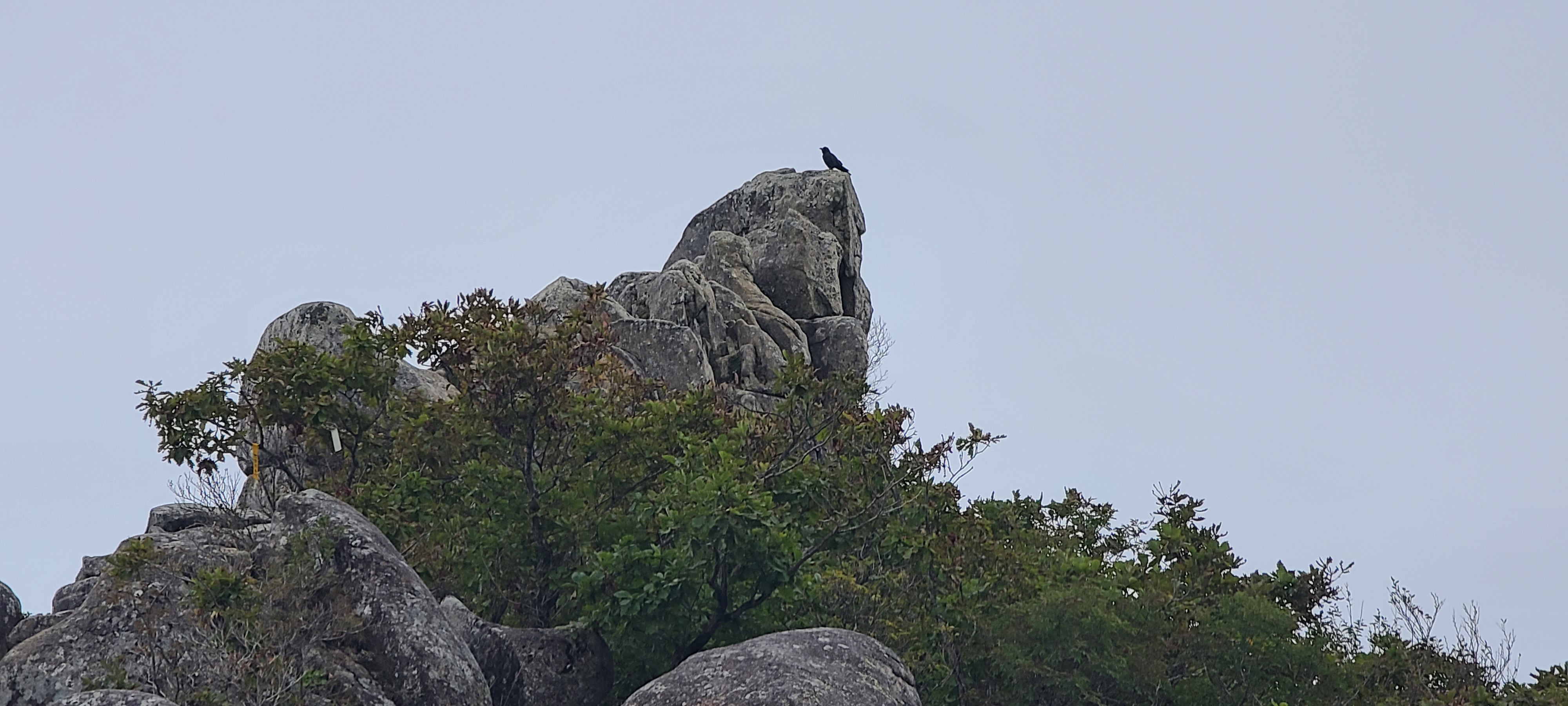 남릉 암봉에 까마귀 한마리 주위를 살핀다.